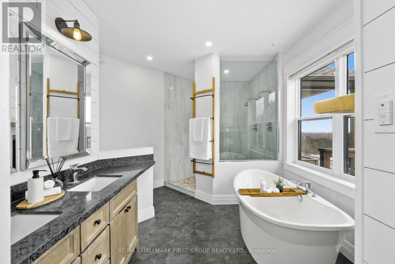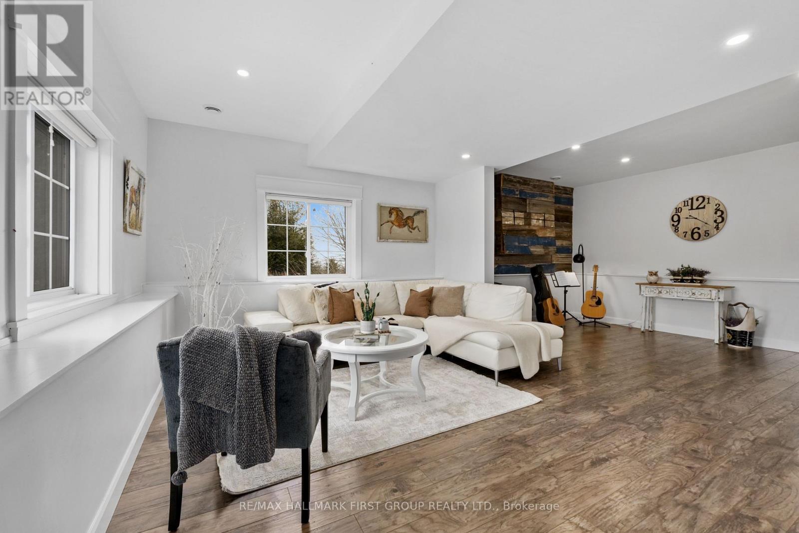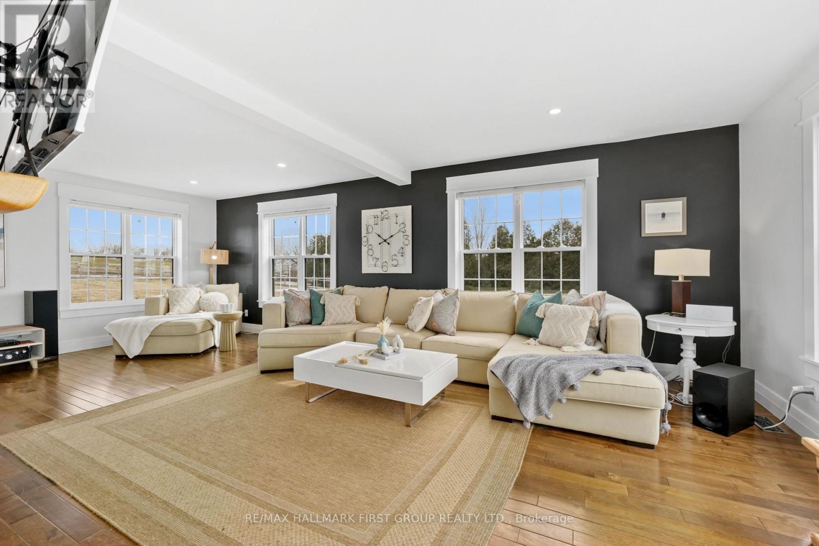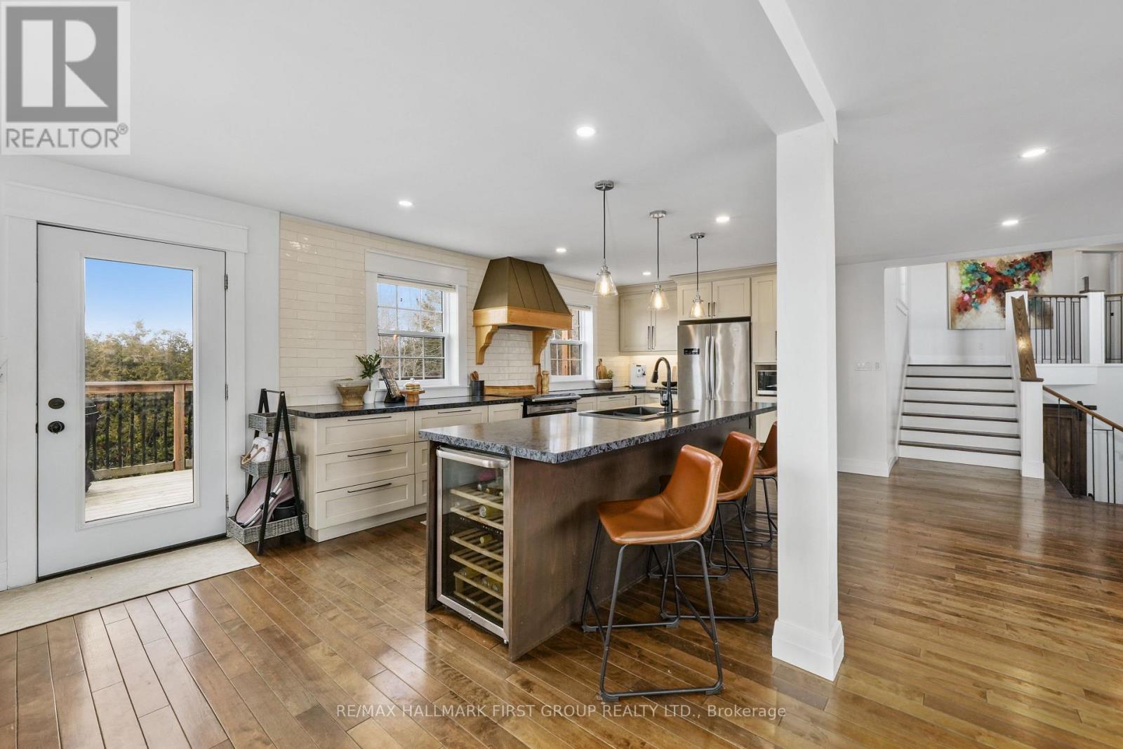 Set high on a scenic hilltop and surrounded by around 1.5 acres of Northumberland's rolling countryside, this impressive home offers space, privacy and breathtaking views in every direction. Thoughtfully designed to blend comfort with craftsmanship, the home welcomes you with an impressive foyer and soaring 19-foot ceilings that set the tone for the elegant yet relaxed living spaces beyond. At the heart of the home is a stunning open-concept kitchen, dining and living area-perfect for gathering, entertaining and everyday family life. The living room is anchored by a beautiful two-sided fireplace that creates warmth and atmosphere throughout the main living spaces. Large windows frame sweeping countryside and lake views while walk-outs from both the living room and the primary bedroom lead to the multi-level decks, seamlessly extending your living space outdoors. With five spacious bedrooms and four well-appointed bathrooms, this home offers room for growing families or multigenerational living. The private primary suite feels like a retreat of its own, complete with deck access and a luxurious spa-inspired ensuite featuring a freestanding soaker tub and its own two-sided fireplace-perfect for quiet evenings and slow mornings. The finished lower level adds even more flexibility with bright walk-out access to the patio, office, recreational area, additional bedroom and a further bathroom creating an ideal space for recreation, guests or a home gym. Surrounded by nature yet designed for modern living, this exceptional hilltop property captures the very best of rural Northumberland-space to breathe, views to savour and a home that feels refined yet warm and welcoming. (id:64974)