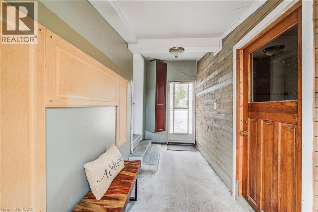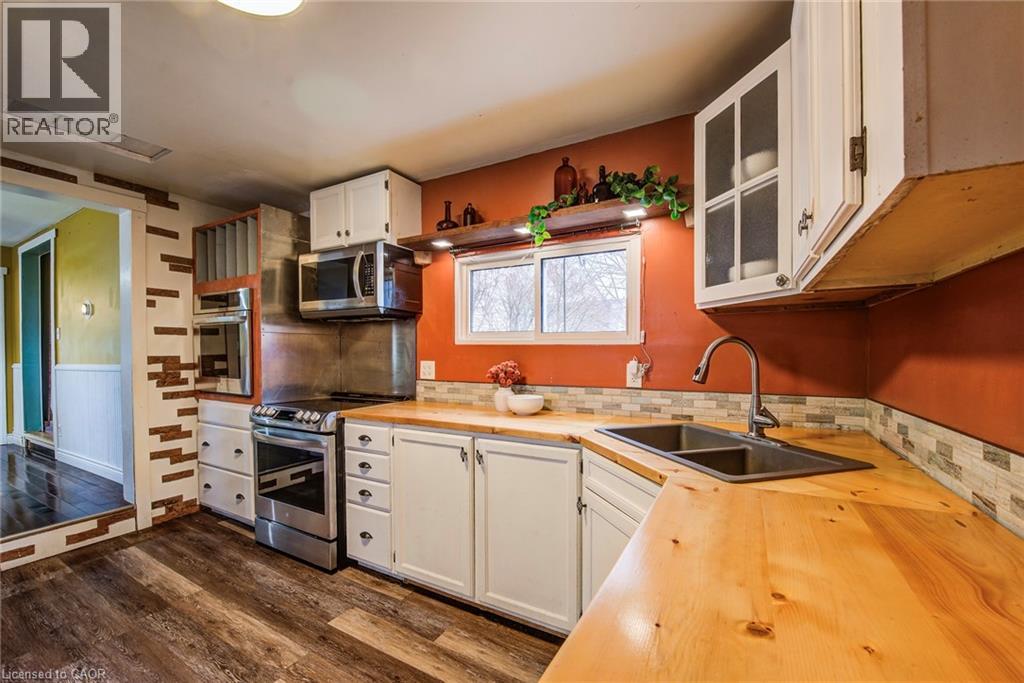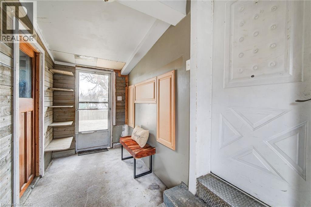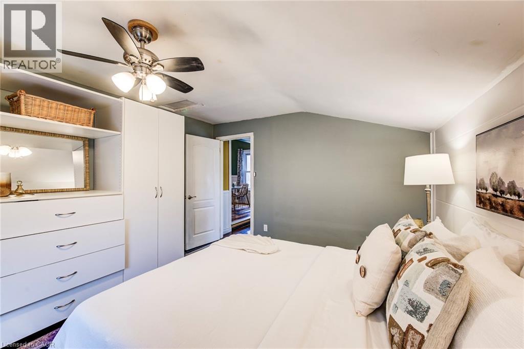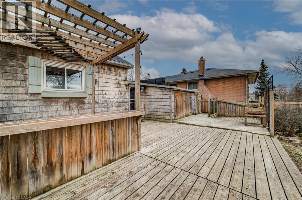 Step into the charm of yesteryear with this inviting bungalow, originally built in 1850 and thoughtfully updated over time to blend character with everyday comfort. Offering approximately 1,035 sq. ft. (approximately), this single-family home is ideal for first-time buyers, downsizers, or those seeking a manageable property in a convenient commuter-friendly location. The home features 3 bedrooms, including a spacious primary, with two additional bedrooms in the original portion—perfect for kids, guests, or even the option to combine into one larger space. The bright living room offers a cozy atmosphere with high ceilings while the adjoining dinette provides a charming spot for meals with views to the outdoors. The updated 3-piece bathroom (renovated in 2019) showcases a modern walk-in shower and was fully redone. The kitchen is tucked just off the enclosed breezeway/mudroom that connects the home to the oversized single detached garage—an ideal setup for everyday convenience. Enjoy outdoor living with expansive multi-level decking, complete with a pergola, perfect for entertaining or relaxing. A 10x12 elevated shed provides additional storage for tools and equipment, while the double-wide asphalt driveway accommodates up to 4 vehicles. Key updates include a newer asphalt shingle roof (2022), mostly updated vinyl windows, and a new forced air gas furnace with efficient heat pump system (installed October 2024). The home is serviced by municipal water and sewer and features a 100 amp breaker panel (updated in 2013) with copper wiring. The basement offers additional storage, laundry space, and a walk-up to the backyard. Located in a great commuter area with easy access to major highways (401/403) and nearby amenities, this property offers a unique opportunity to own a piece of history with modern touches and plenty of potential. Don’t miss your chance to make this charming home your own! (id:64974)