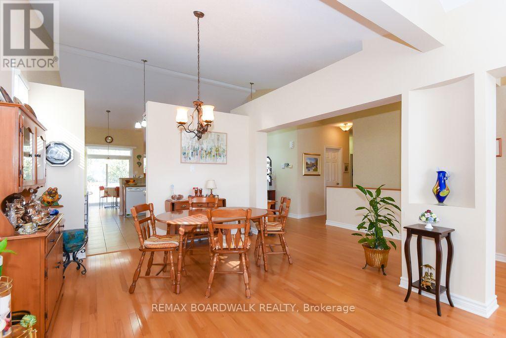 Looking for lots of space on the main floor? Built by Richcraft, the modified Havenstone model will definitely impress you with it's cathedral ceilings, openness throughout the main living space and the natural lighting. Approximately 2,000 square feet on main level. 3 good size bedrooms with lots of closet space on the main floor. The gourmet kitchen offers lots of granite counter space, generous amounts of cupboards and includes the refrigerator, the stove and the dishwasher. Large breakfast area with patio doors to the private back yard with interlocking patio. The Great room offers an impressive mantle with gas burning fireplace, windows and lots of space. The main floor laundry area has access to the garage and closet. The living and dining rooms will definitely impress the most discriminating of all guests. Gleaming hardwood flooring throughout the main floor + staircase to the unspoiled lower level. Tile flooring in bathrooms, kitchen, foyer area + entrance to garage. This home truly shows pride of ownership throughout. Curb appeal with it's front covered front porch and beautiful interlocking driveway. Quiet street. Parks nearby. View photos for details. As per form 244: 24 hours irrevocable on all offers submitted (no exceptions). PVC fencing. 50 feet wide lot makes a beautiful sized back yard. Covered back porch. *Lawn maintenance service included for 2026 season (weekly care/fertilizing). Roof shingles will be replaced before closing date with 25 years shingles. Furnace will be replaced and will be new by closing date. (id:64974)