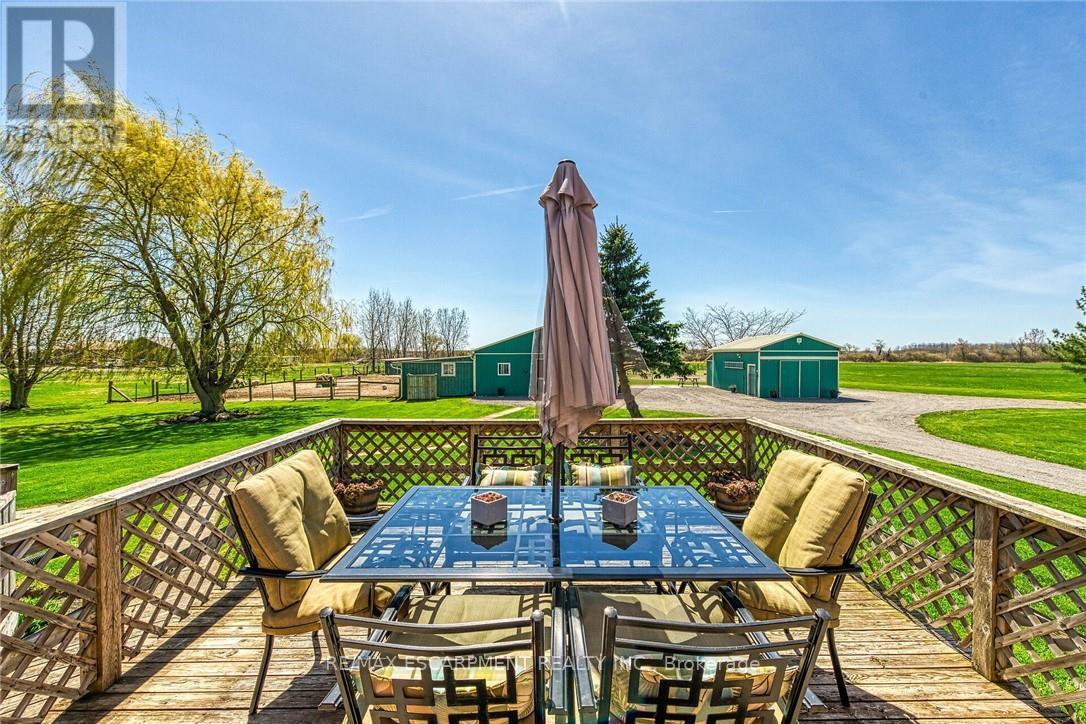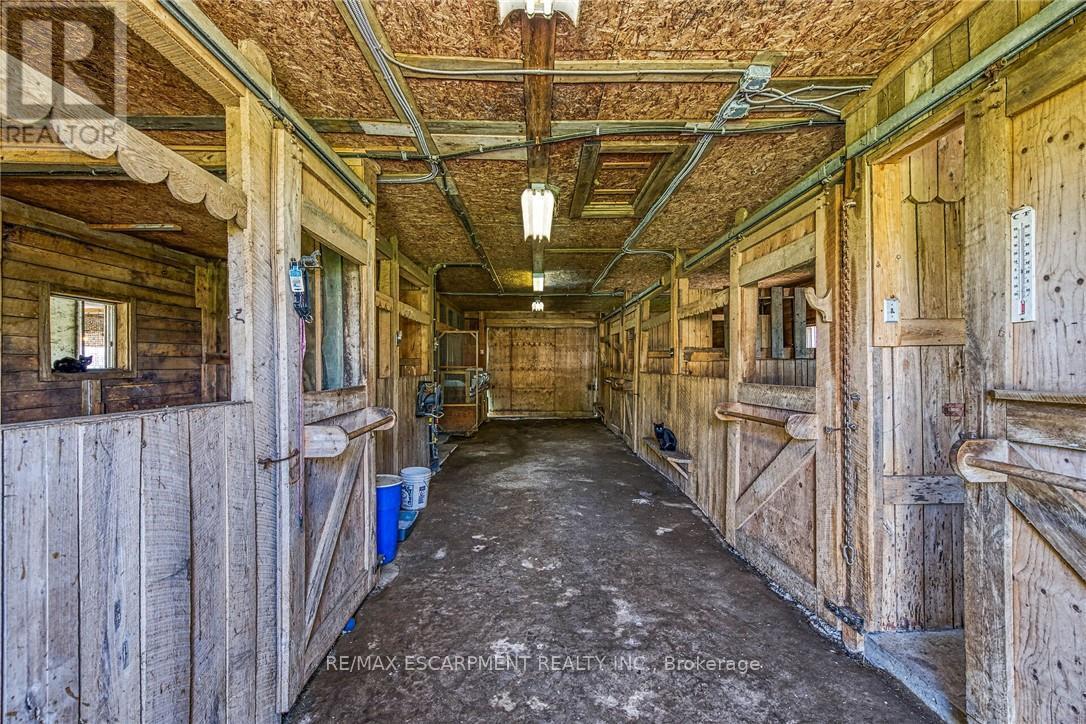 Immaculate 14.34ac hobby farm located on eastern outskirts of Norfolk Cnty near Haldimand County border central to Hagersville & Waterford. Incredible package begins at extensively renovated brick/stone/sided bungalow introducing over 2000sf of flawless living area (both levels), 680sf htd/ins. attached garage w/10ft ceilings, new stamped conc floor, 2 new ins. doors & p/g heater - complimented w/over 800sf of recently poured conc. front/side patio + 360sf tiered rear deck. Livestock lovers will appreciate metal clad 30x42 barn (bit in 2000) incs 5 hardwood box stalls, hydro, water & 16x42 lean-to w/separate road entrance. Additional buildings inc metal clad 24x16 garage (bit in 2000), versatile 3 bay open-end building att. to 22x40 sea-container, 20x14 dog kennel on conc. slab & multiple paddocks - majority of land is workable capable of supplying self sufficient feed livestock needs. Pristine home ftrs grand foyer incs 2 closets, rear & garage entry - leads to stylish kitchen'22 sporting dark cabinetry, tile back-splash, SS p/g stove, comm. style side/side SS fridge/freezer topped off w/granite counters - segues to dinette boasting garden door deck WO. Gorgeous travertine tile flooring compliment these rooms w/upscale flair. Continues to luxurious living room augmented w/hardwood flooring & picture window - on to primary bedroom ftrs WI closet & en-suite privilege to chicly appointed remodeled bath in 2022 - completed w/guest bedroom. Custom wood staircase descends to lower level family room - perfect for large family gatherings or simply to relax - additional rooms inc 2 bedrooms, modern 4pc bath, office/den or poss. 5th bedroom (no window), laundry room & utility room. Extras -metal roof, new ceilings, 200 hydro, vinyl windows, recent facia/soffit/eaves/siding, 4 ext. doors'23, int. doors/hardware/trim/baseboards'13, ex. well w/purification system, p/gas aqua-therm furnace-2025, AC, C/VAC & more. Experience rural living - rooted in sustainability & satisfaction. (id:64974)