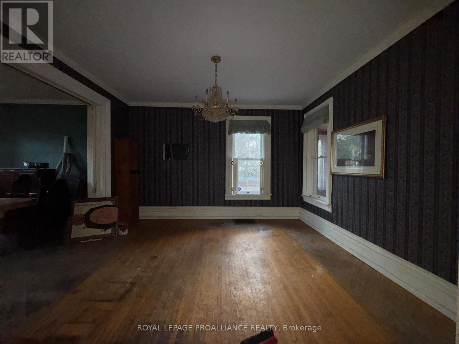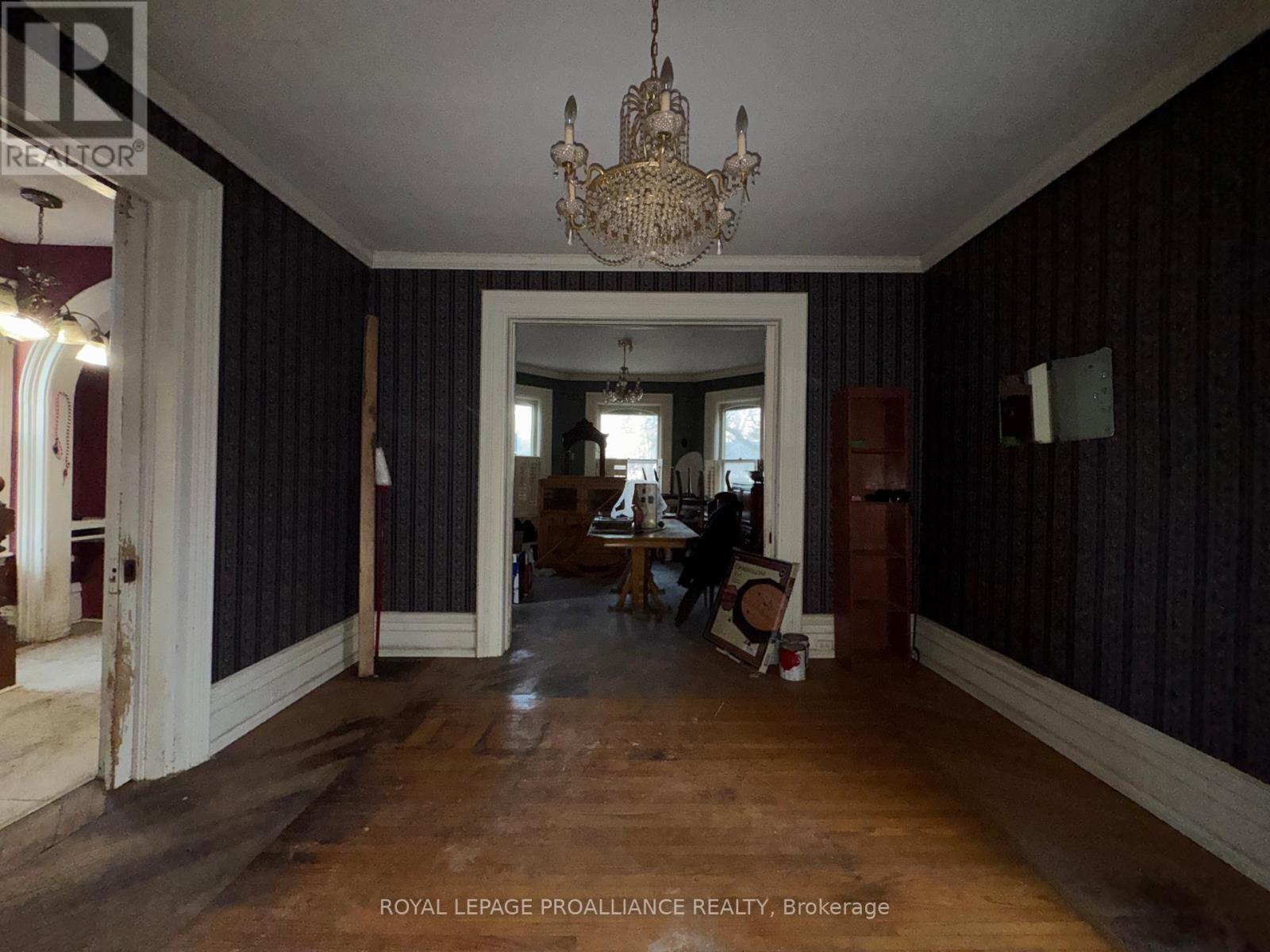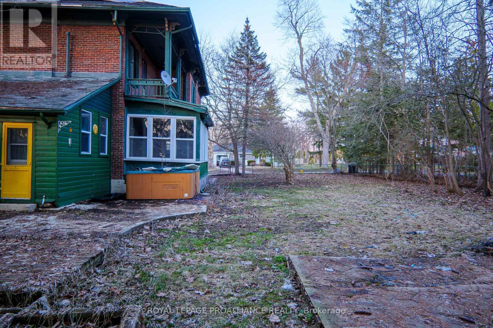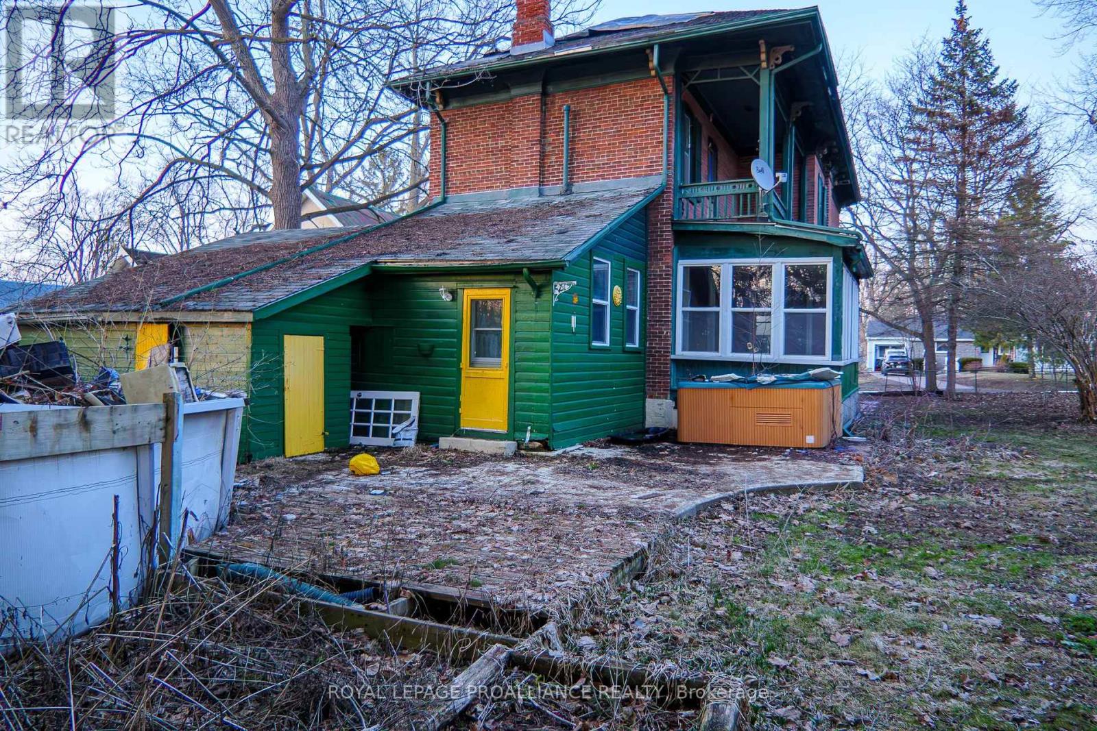 Historic mainstay in Deseronto. This stately landmark has a long history dating back 1897 & was once a crown jewel of town. Restore it to its former glory & heritage, now offered at an affordable price & incredible value. Situated on a large dbl lot measuring 81.5ft wide by 127ft deep, conveniently positioned close to school, park & downtown. Enter through the front door & you will be greeted by ornate woodworking, large mouldings/trim, archway & crown moulding. Diagonal hdwd flooring in the front parlour/living room separated by 2 sets pocket doors in the formal dining room. Located in the centre of the house is a family room & 4 season sunroom with pine tongue & groove ceiling, overlooking the side yard. A small but functional kitchen leads to a versatile rear summer kitchen or bonus room. The area is perfect for expansion to a larger, open concept kitchen space. Rounding out the main level is a 2pc. bathroom, storage closet & stairs leading to the full height, unfinished basement. Upstairs is home to 3 large bdrms, 2 full baths & an upper laundry area. Primary bdrm has side door access to a private balcony, dedicated ensuite bath with clawfoot tub & laundry hookups. Down the hall are 2 more bedrooms, one with a large bay-style window. Lastly there is a 4pc. main bath that has another door to a front private balcony. Outside is parking for 3+ cars, attached single+ garage, partially fenced yard & mature trees. Home is being sold as-is, where-is with no representation or warranties. The home appears solid but is in need of significant repairs & renovation. Great potential to own a piece of history in Deseronto. Condition of pool, hottub, HVAC systems, etc. is unknown. (id:64974)