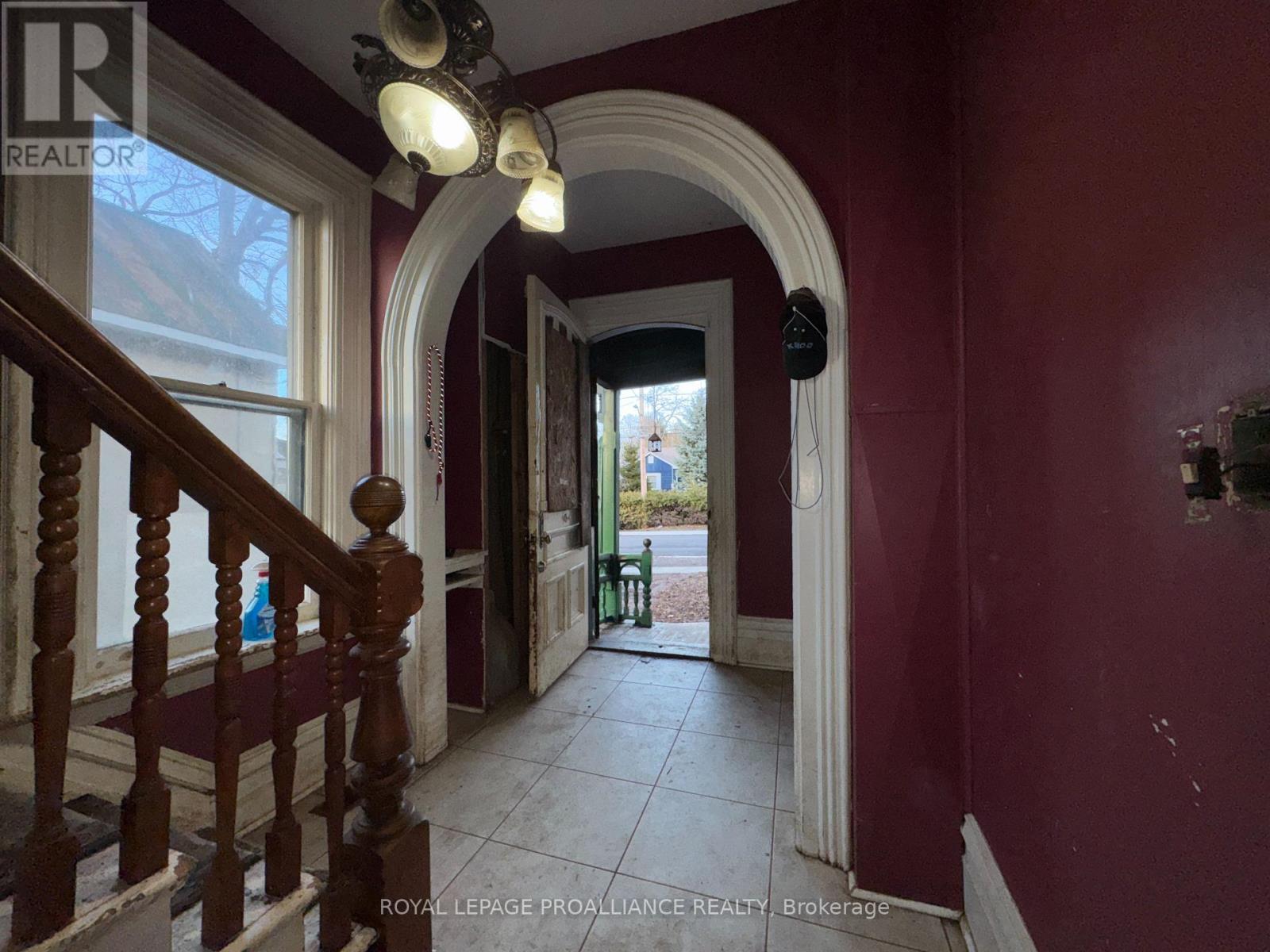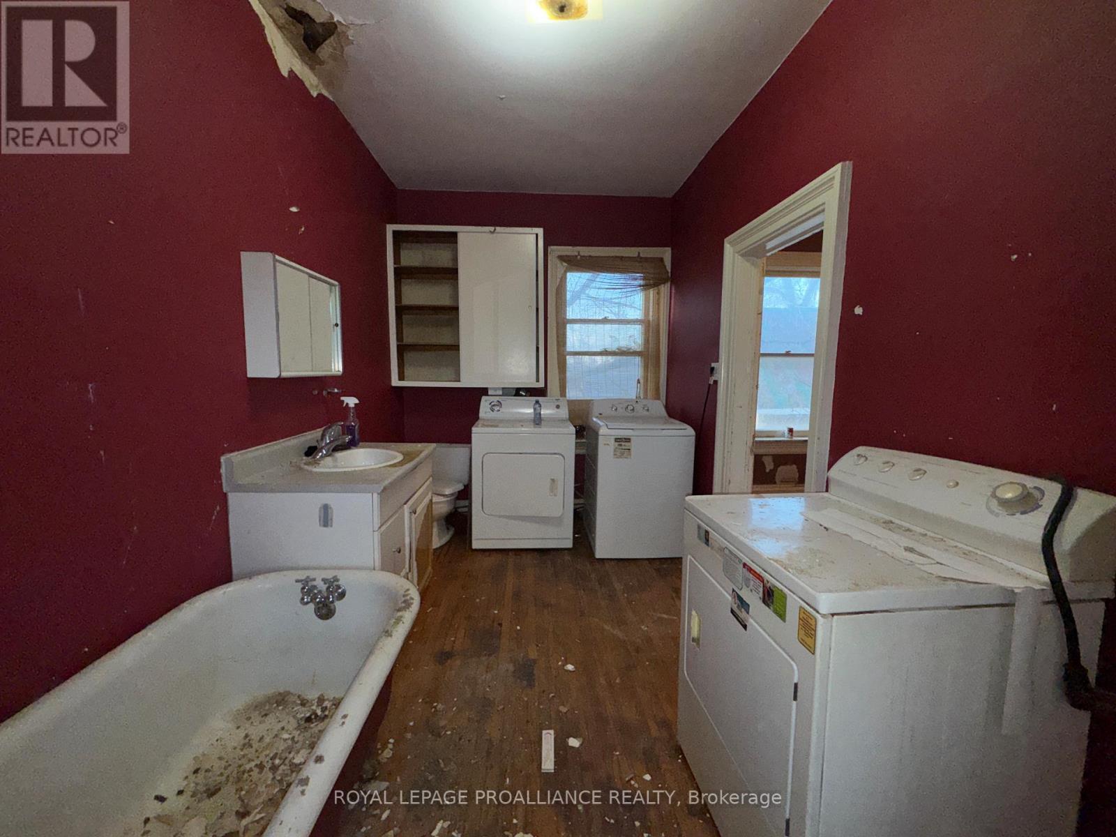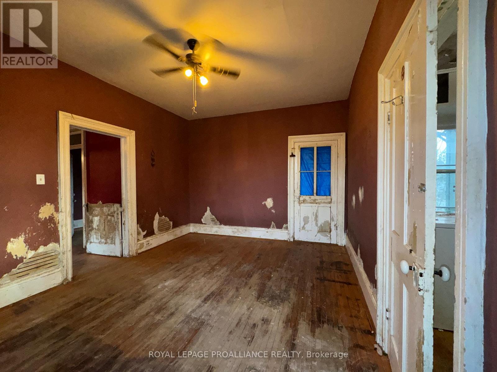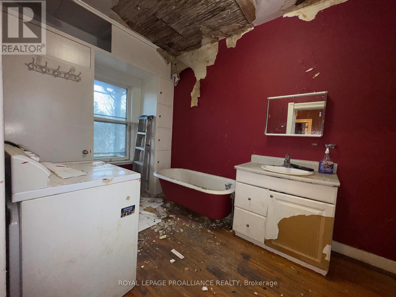 Historic mainstay in Deseronto. This stately landmark has a long history dating back 1897 & was once a crown jewel of town. Restore it to its former glory & heritage, now offered at an affordable price & incredible value. Situated on a large dbl lot measuring 81.5ft wide by 127ft deep, conveniently positioned close to school, park & downtown. Enter through the front door & you will be greeted by ornate woodworking, large mouldings/trim, archway & crown moulding. Diagonal hdwd flooring in the front parlour/living room separated by 2 sets pocket doors in the formal dining room. Located in the centre of the house is a family room & 4 season sunroom with pine tongue & groove ceiling, overlooking the side yard. A small but functional kitchen leads to a versatile rear summer kitchen or bonus room. The area is perfect for expansion to a larger, open concept kitchen space. Rounding out the main level is a 2pc. bathroom, storage closet & stairs leading to the full height, unfinished basement. Upstairs is home to 3 large bdrms, 2 full baths & an upper laundry area. Primary bdrm has side door access to a private balcony, dedicated ensuite bath with clawfoot tub & laundry hookups. Down the hall are 2 more bedrooms, one with a large bay-style window. Lastly there is a 4pc. main bath that has another door to a front private balcony. Outside is parking for 3+ cars, attached single+ garage, partially fenced yard & mature trees. Home is being sold as-is, where-is with no representation or warranties. The home appears solid but is in need of significant repairs & renovation. Great potential to own a piece of history in Deseronto. Condition of pool, hottub, HVAC systems, etc. is unknown. (id:64974)