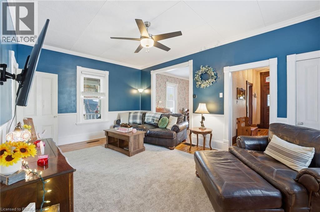 Welcome to 187 Sydenham Street — a warm and character-filled family home in Brantford’s sought-after Terrace Hill neighbourhood. Built 146 years ago, this beautifully preserved residence offers 1,871 sq ft of living space where historic charm meets everyday family comfort — all just minutes from highway access, Brantford General Hospital, schools, transit, parks and shopping. With 4 bedrooms and 2 full bathrooms, the layout offers flexibility for growing families, multi-generational living, or dedicated work-from-home space. A main-floor primary bedroom with private ensuite provides added convenience and privacy — a rare and practical feature in a home of this era. Set on a generous lot, the property stands out with two separate driveways and a detached garage, including additional garage access from Huff Avenue — perfect for busy households with multiple vehicles, teens, guests, or recreational storage. Timeless architectural details bring warmth and personality throughout the home, while important recent upgrades — including a new furnace and central air system (2024) and new water softener (2025) — provide modern comfort and peace of mind. If you’ve been searching for a home with history, space, and heart — one that supports real family living — 187 Sydenham Street is a rare opportunity in a well-established neighbourhood. (id:64974)
