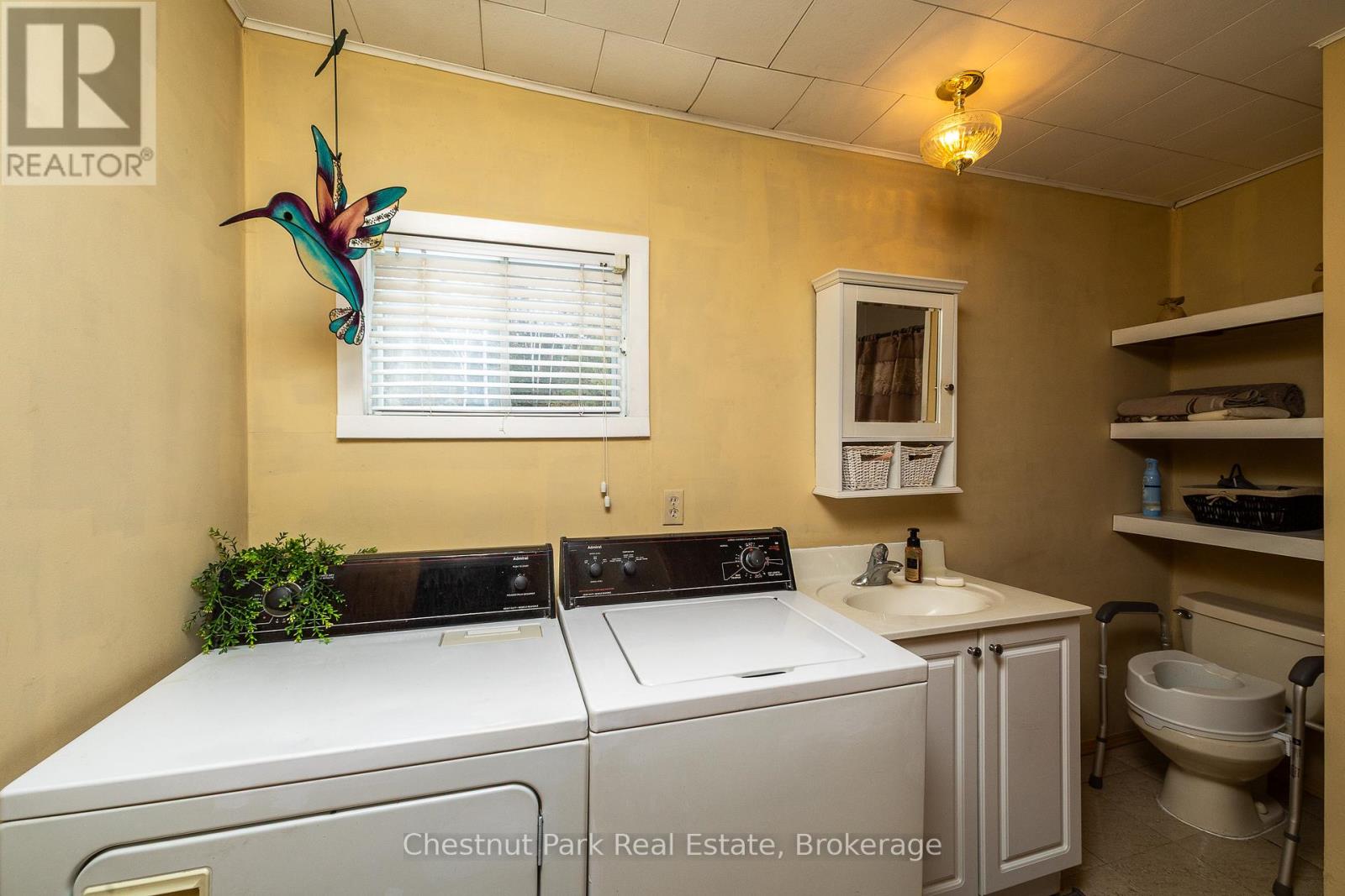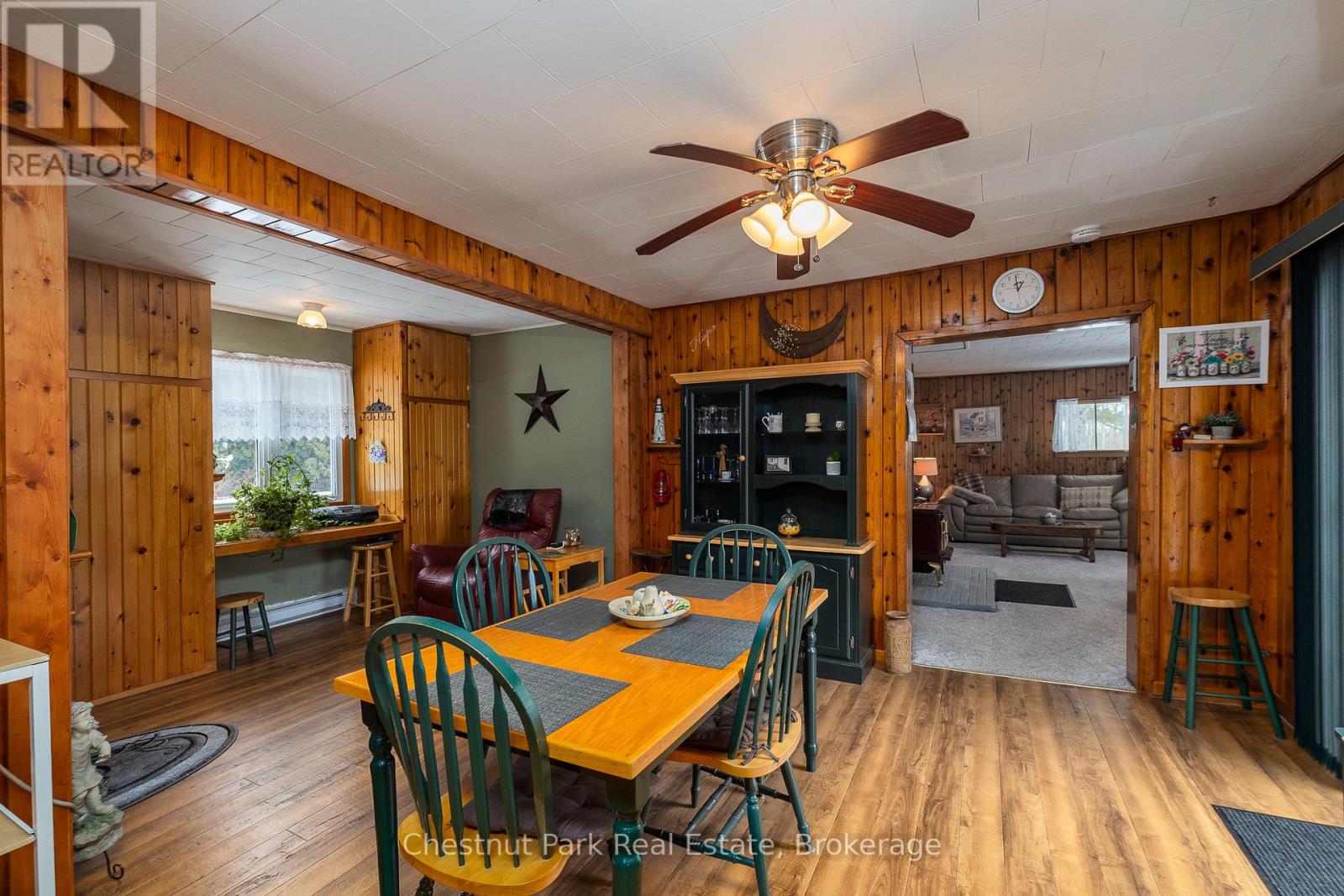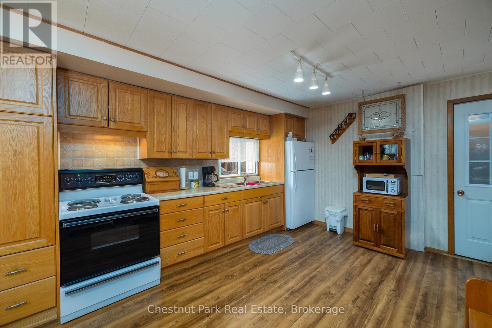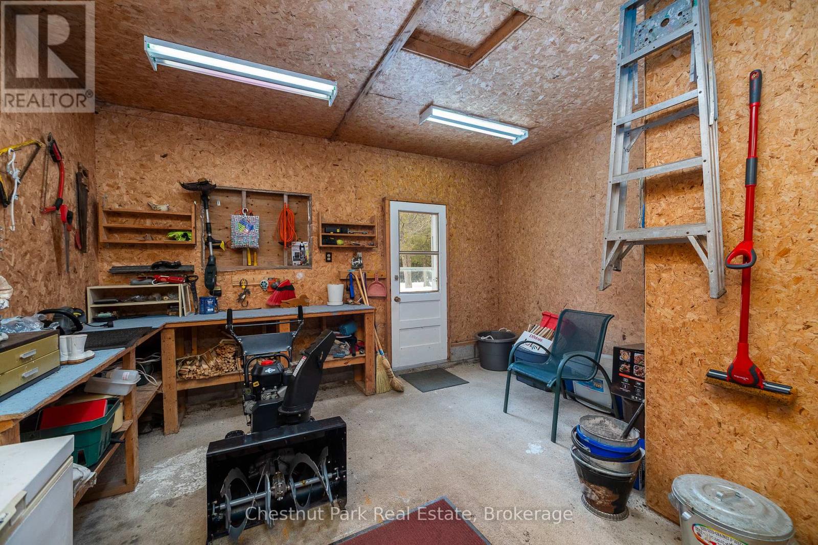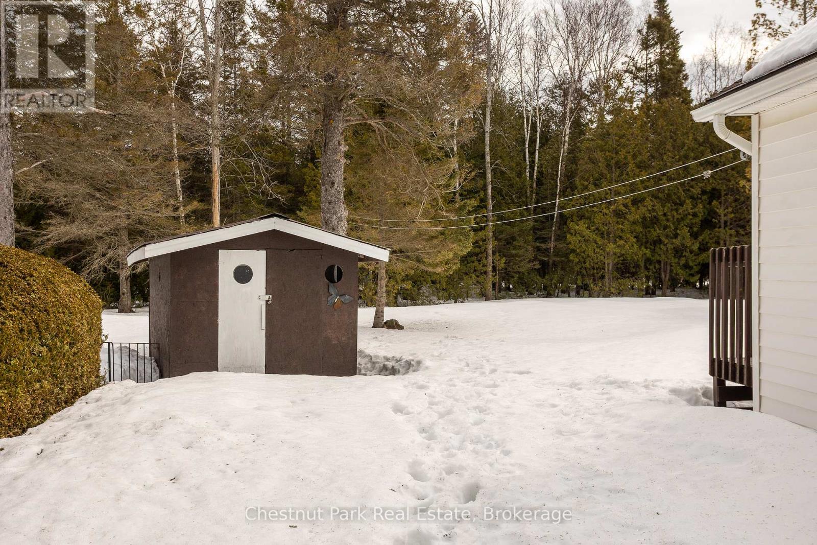 Nestled on a beautifully treed 3.3-acre lot just a short drive from Tobermory, this meticulously maintained home offers a rare combination of comfort, convenience, and potential. With a level, straight driveway leading to an expansive front deck, the property presents a welcoming one-level plan ideal for those seeking minimal stairs-perfect as a starter home, retirement retreat, or investment opportunity. Inside, a cozy wood stove warms the open living spaces, while the well-designed layout flows effortlessly to the manicured lawns and gardens that surround the home. Additional features include a workshop and garden sheds, providing ample space for hobbies, storage, or projects. The tranquil backyard area offers privacy and serenity, while the property's size and configuration lend potential for severance, adding extra value. Enjoy easy access to Tobermory's amenities and attractions, as well as nearby area highlights for boating, hiking, and nature exploration. Lovingly cared for and maintained by the current owner for many years, this versatile property offers both a peaceful lifestyle and exceptional long-term potential. Whether you're looking for a starter home, a retirement haven, or an investor opportunity with potential severance, this property delivers on all fronts. (id:64974)