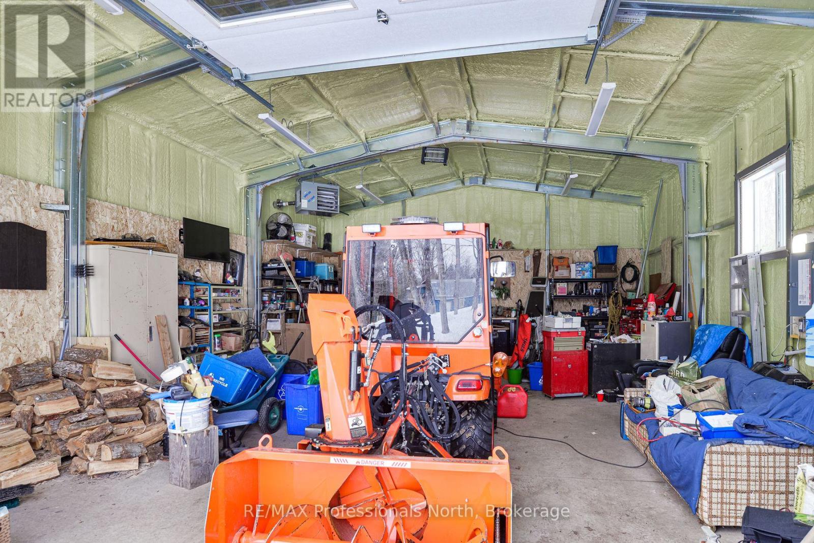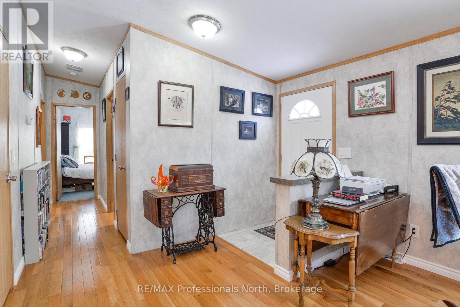 Enjoy one floor living in this efficient 2 bedroom, 2 bathroom home. Situated within 15 minutes of town, this 3.78 acre lot offers wooded trails and space to roam. This is an ideal property for outdoor enthusiasts. For all your hobby and storage needs, the property is complimented by two outbuildings; one of which is 27.5' x 13.5' and features a garage door (6'x7') and hydro while the other is a newly built (2023) 28' x 22' fully insulated detached garage/shop complete with hydro, propane heat and a wood stove (WETT inspected). As a bonus, an expansive rear deck which includes a plumbed in fire table was just completed to enjoy the serenity of country living. This property offers a lot at this price point! Come take a look at this one today! (id:64974)