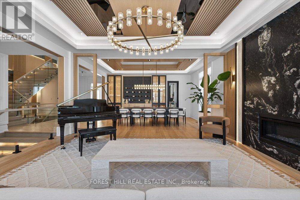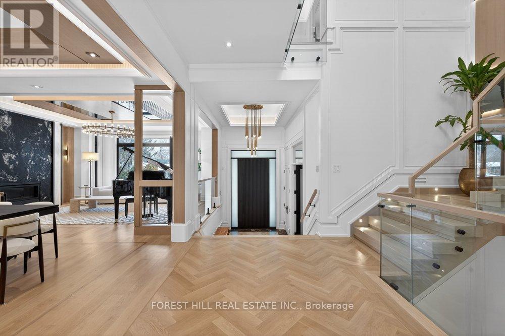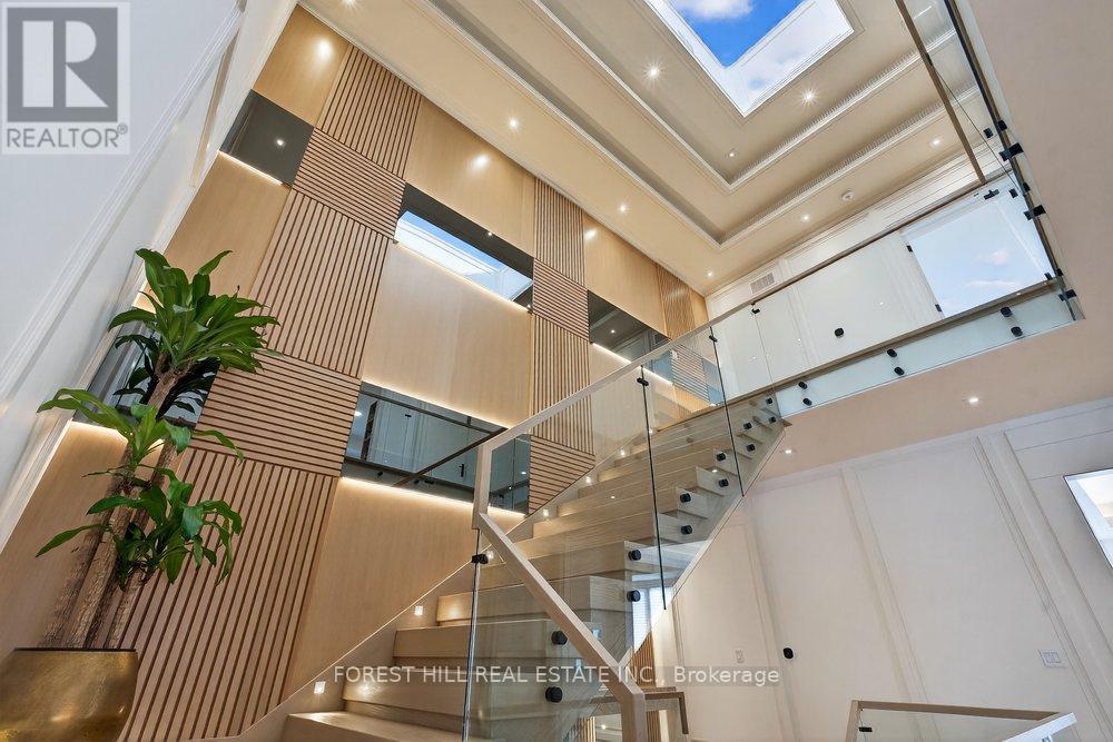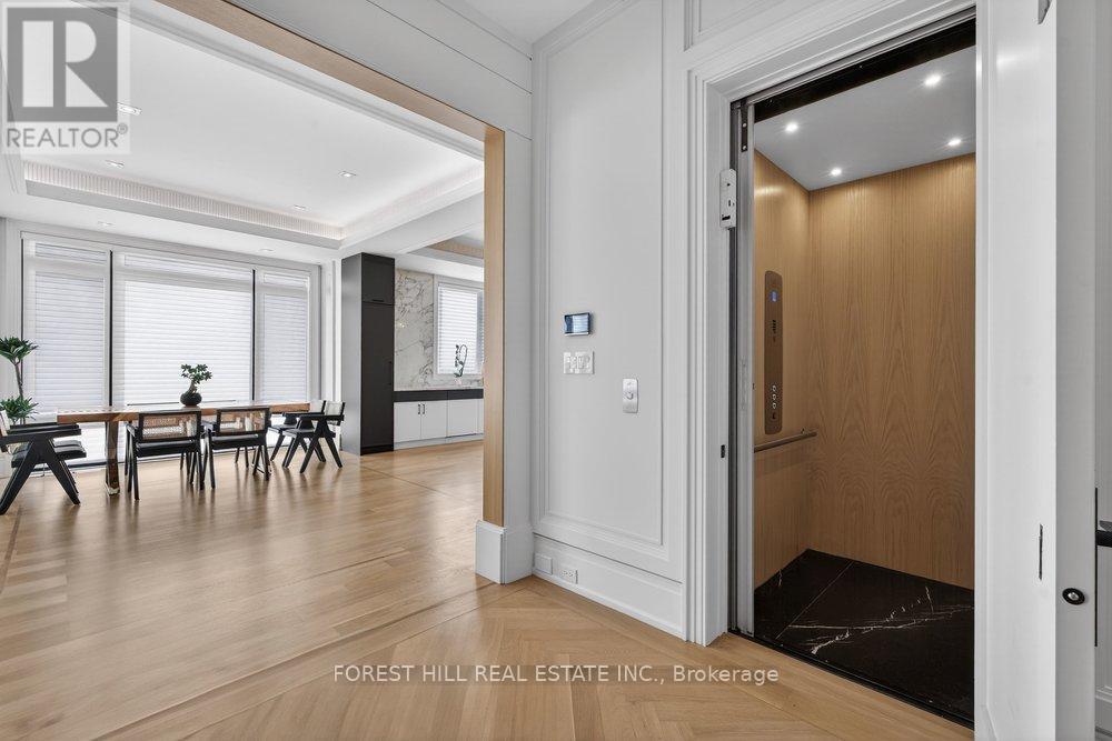 **Truly Spectacular**Architectural-Masterpiece**Step Into A Realm Of Contemporary Opulence Where LUXURY Seamlessly Meets Functionality(Blending Lavish Materials & Sumptuous Interiors That Epitomize In Luxurious Modern Living For Your Family----Ultimate Comfort & Impeccably Detailed Stylish/Remarkable Home-----Every details has been meticuopusly curated)**This Beauty Is Majestically Poised, and Spacious Living of 4,831 Sq.Ft(1st/2nd Flrs) + Prof. Finished W/O Basement(Appox 7,000 Sq. The Main Floor Offers Spaciously-Designed, Herringbone floor in hallway& Office, Solid brass inlay in the floor, Open Concept Living & Dining Rooms, this home's elegant-posture & airy atmosphere. Extra wide Custom Staircase The Dream Gourmet Kitchen Provides 2 Kitchens for a Chef's Kitchen + a Wok Kitchen, Perfect For Hosting of Guests and Daily Cooking for your family. Seamlessly flowing, the family room, with a gas fireplace and Walk out balcony, West facing welcomes endless natural sunlight. 3Level-Elevator . Upstairs A Serene Retreat-Prim Bedrm W/2W-In Closets & All Bedrm Has Own Ensuite(HEATED FLR) & Generous/Lavish W/I Closets. The Gracious Bedrooms Have Own Ensuites for Privacy and Functionality. The Impressive Lower Level Offers Endless Possibilities, Including a Large Rec Room, a Home Movie Theatre and an Additional Bedroom***TOO MANY Opulent FEATURES--A PRIVATE ELEVATOR--HEATED FLOOR BASEMENT--HEATED FLR(ALL WASHROOMS)--HEATED FLR(FOYER)--Perfect For Cozy MOVIE Night THEATRE W/ EUROPEAN CARPET,2FURNACES/2CACS---European Plumbing fixtures(Kitchens,Bar, Washrooms)---Intensive All---Expansive Entertainment Area Rec Rm W/HEATED FLR & Luxury Wet Bar & Movie-Theatre & Nanny's Rm W/3Pcs Ensuite & 2nd Laundry Rm & Extensive use of Natural Stone & Home automation system(Lights fixture/ Thermostat/Security Camera/B/I Speakers )In ground sprinklers***Top-Ranked School-- Earl Haig SS***Pls See*****3% Commission to Cooperating Brokerage(FIRM SOLD By April 15, 2026**** (id:64974)
