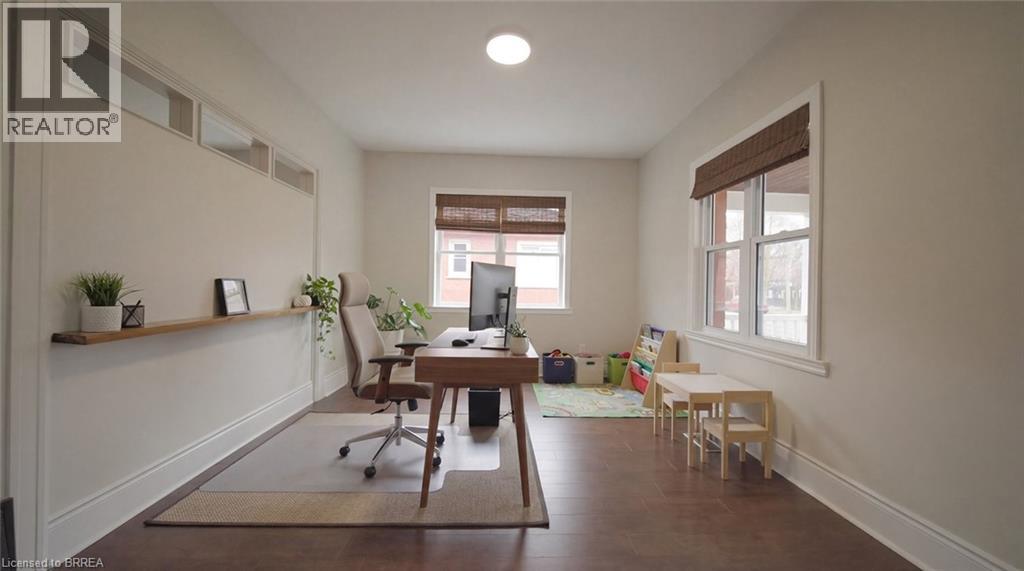 Step into timeless charm and modern comfort in this beautifully maintained century home, perfectly located near the Grand River and scenic walking and biking trails. Full of character, warmth, and space, this impressive 2-storey home offers over 1,700 sq ft of living space, featuring 3 bedrooms (with an easy 4th) and 2 full bathrooms. The spacious main floor is ideal for both everyday family living and effortless entertaining. The large, inviting living room is perfect for gatherings or unwinding at the end of the day, while the bright and airy den—complete with double French doors—offers incredible flexibility as a home office, playroom, or potential fourth bedroom. The heart of the home is the striking kitchen, thoughtfully positioned to overlook the backyard and featuring patio doors that lead to a lovely outdoor seating area—perfect for outdoor dining and hosting summer BBQs. A tastefully updated 4-piece bathroom and conveniently located laundry closet complete this level. Upstairs, you’ll find three well-sized bedrooms, each offering ample closet space, along with a 4-piece bathroom that serves the upper level with ease. The unfinished basement provides excellent storage and future potential. Outside, the charming front porch creates a warm welcome and offers a restful place to enjoy your morning coffee or unwind in the evening. Set in one of Brantford’s most desirable, family-friendly historic neighbourhoods and just steps from the Grand River and SC Johnson Trails (part of the Trans Canada Trail), this location is ideal for outdoor enthusiasts. Enjoy easy access to parks, schools, shopping, and everyday amenities, with convenient Hwy 403 access nearby. A wonderful opportunity to own a spacious, character-filled home in an unbeatable location—welcome HOME. (id:64974)
