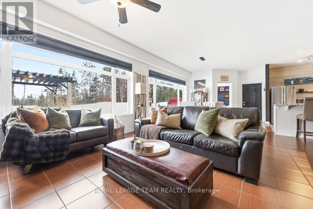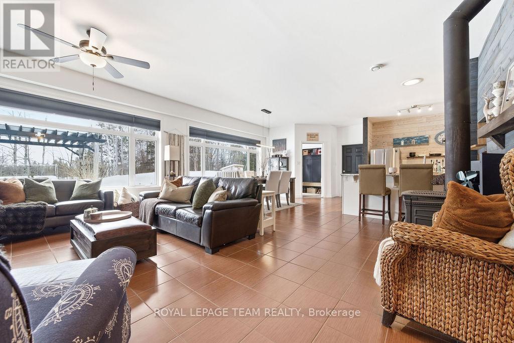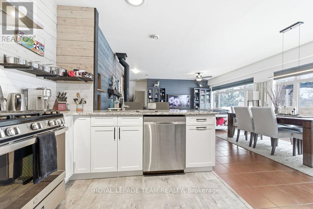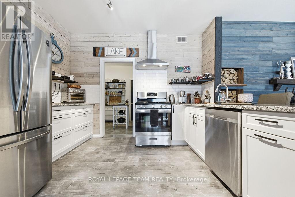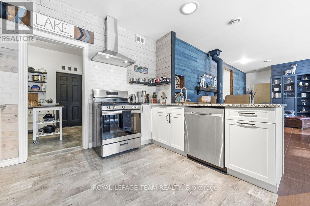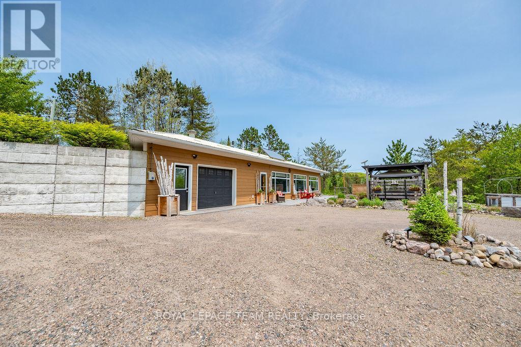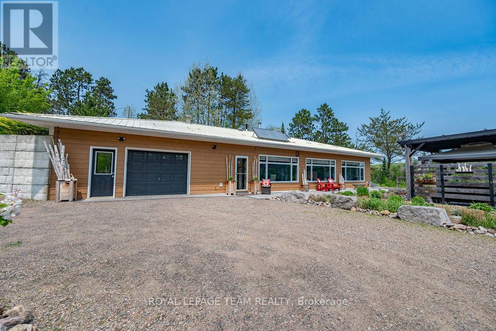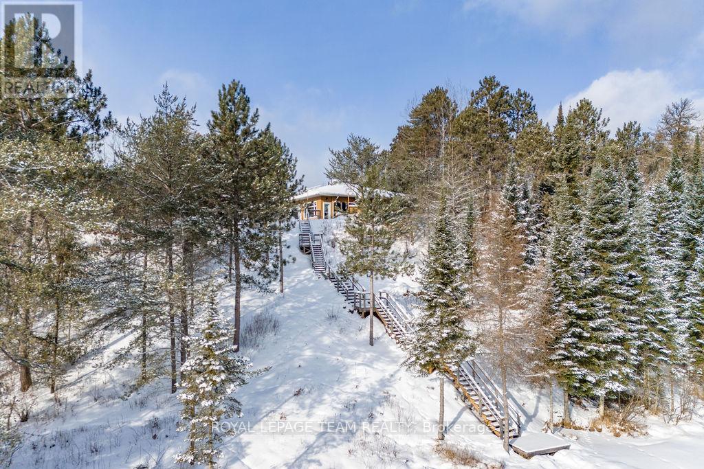 Elegant and beautifully designed ONE LEVEL 3 bedroom, 2 bath home situated on private 3.5 acres (approximate) lot, with over 500 feet of frontage on exclusive Drohan Lake! Conveniently located within walking distance to all Barry's Bay has to offer, including shopping, Kamaniskeg Lake & launch, hospital! Featuring sun tunnels & large south-facing windows for an abundance of sunlight, the home boasts many upgrades including a new kitchen, complete with gleaming granite countertops, stainless steel appliances (2021); servery/pantry (2022) which leads to a cold room; renovated main bathroom (2022); renovated ensuite (2023). The home also features a dedicated laundry room, spacious primary bedroom w/ ensuite, 2 additional bedrooms, & an open concept kitchen/family room with cozy wood stove. Outside, the elevated landscaped grounds feature gardens, a12x12 pergola (2021), 8x10 wooden shed (2022), and a 24x8 private side deck (2024) that overlooks the landscape & water. There are stairs to the lake, and a plethora of woodland creatures will visit! The attached one car garage features a spacious workshop. This home is perfectly situated within close proximity to all the Valley offers including Renfrew County VTAC, world class hunting & fishing, ATVing, cross country skiing, ice fishing, skidooing, water sports, only 35 mins from Algonquin Park's East Gate, & much more. This home is ideal for retirees looking for main floor living, or a family looking for room to grow! ****EXTRAS**** Great property for staging all your motorized fun, such as skidoo/ATVing for trails down the street. Earth sheltered on 2 sides means cooler summers and reduced winter heating bills. This property was originally fitted for solar. On-Command hot water, and solar water heater on the metal roof. The home uses approximately 6 face cords of wood during the winter. Standby Generator ensures that power outages mean no interruptions! (id:64974)