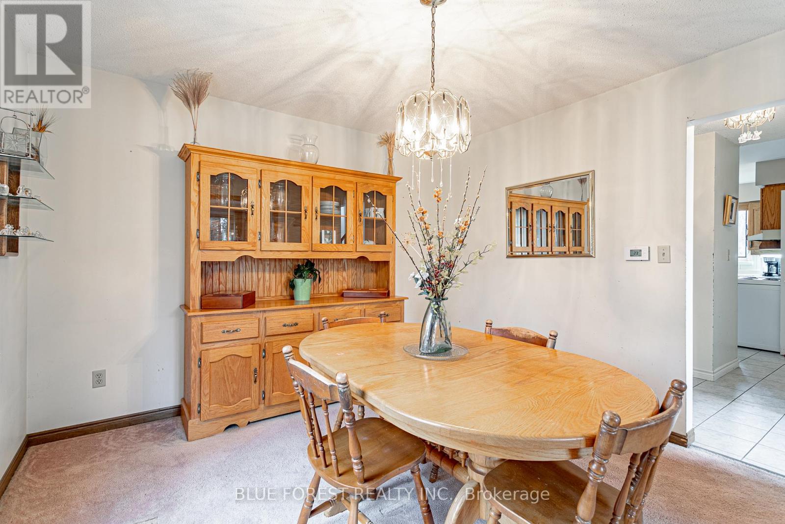 If you've been searching for a traditional family home and on a mature, quiet, treelined cul-de-sac - this may be the home for you! This house has been making memories for its current owners since 1988 and is centrally located in the town of Dorchester, just minutes to London and a short drive to Hwy 401. This all brick two storey home features a foyer and extra wide stairway, a formal living room, that could make a great in-home office space and a formal dining room as well as a two pc powder room. There is a combination mudroom and laundry on the main floor, with garage access. The kitchen flows into the eating area with patio doors leading to the deck and onground pool. Finally, a cozy sunken family room centered around the gas fireplace. On the second level are three good sized bedrooms on the second floor and a 4 pc bathroom. The primary bedroom is large , with patio doors overlooking the rear yard, an ensuite and a walk in closet. Need more living space? The basement level offers an additional 1000 sq ft and awaits your design ideas. It's currently used as storage and a large workshop. Update to your tastes and start making your own memories. (id:64974)