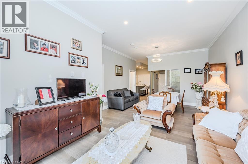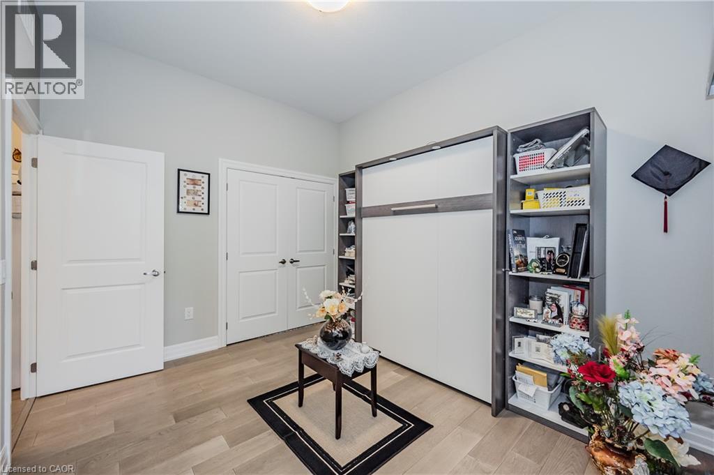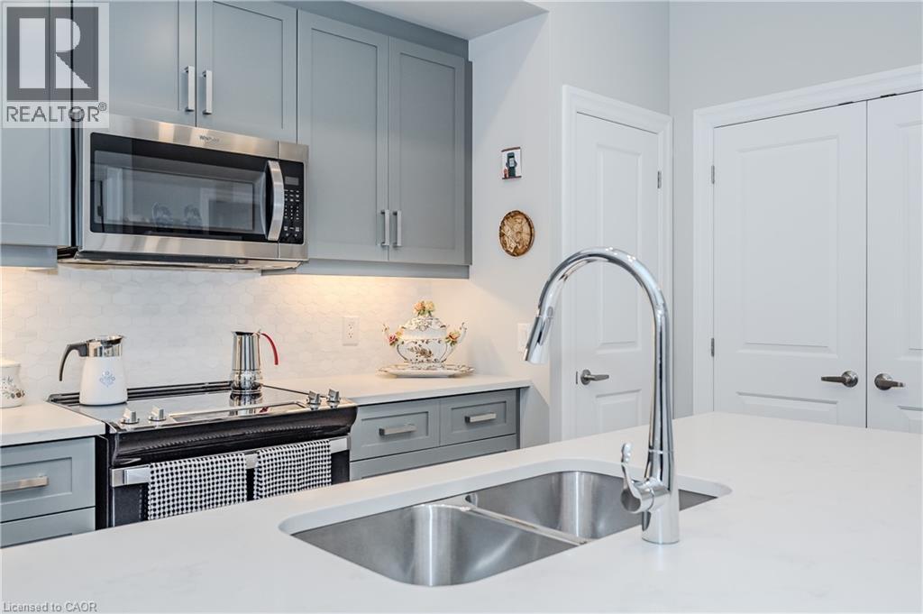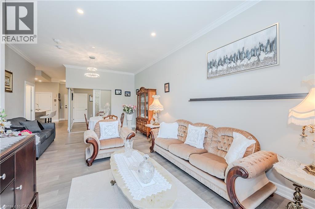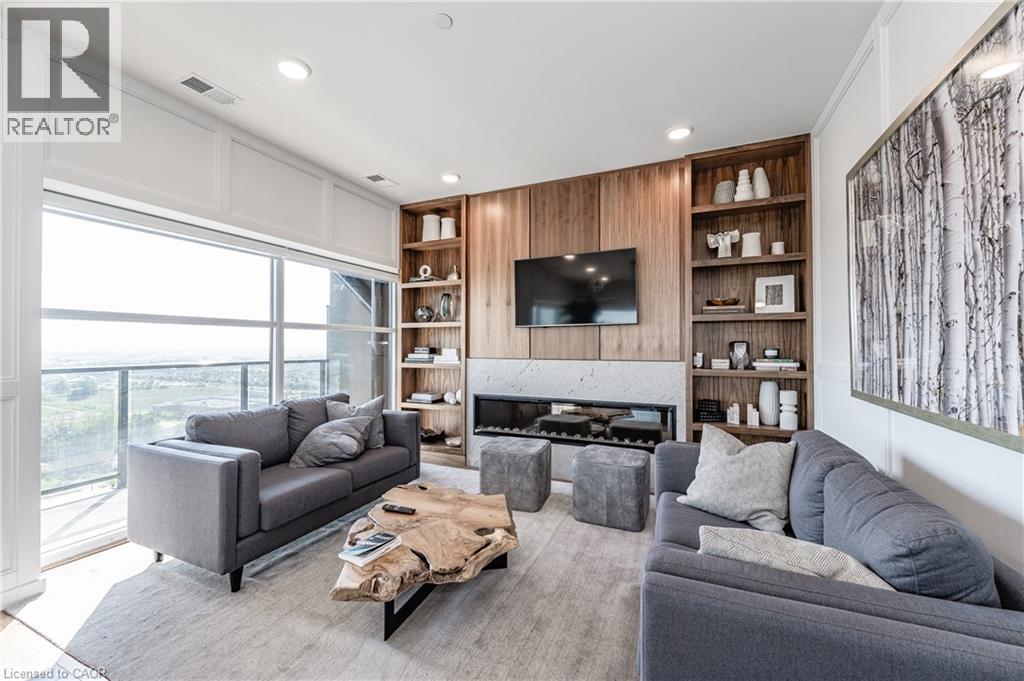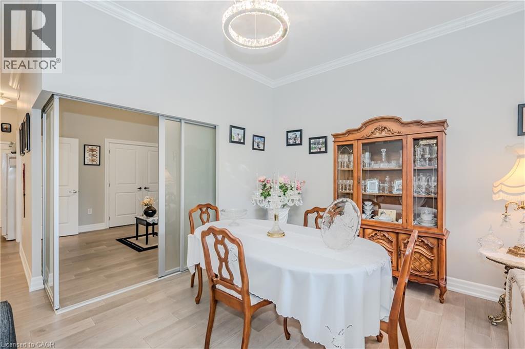 Make this gorgeous ground-floor condo located in the prestigious south end of Guelph yours. Professionally designed 2-bedroom, 2-bathroom suite with luxurious upgrades and TWO underground parking spaces. The 10' ceilings bring in more natural light and make the open-concept floor plan feel very spacious. With stunning finishes and a great layout, spending time at home will feel relaxing and joyful. The modern kitchen has plenty of cabinets, numerous drawers and a walk-in pantry for additional storage. Undermount lighting, built-in stainless steel appliances, a stylish backsplash, and a large island complete the kitchen. The broad dining area overlooks the living room. The charming living room with large sliding doors leads to a private balcony. Enjoy a morning coffee or afternoon tea in your secluded outdoor space. The large primary bedroom has a walk-in closet and a luxurious ensuite bathroom with a floor-to-ceiling glass shower and heated flooring. With glass sliding doors that open up to the living/dining room, you will be pleased with the functionality of a second bedroom. With a Murphy bed already installed, it can be used as an office and/or a bedroom. The main 4-piece bath with heated floors and in-suite laundry completes this suite. Quartz counters and hardwood flooring throughout, crown molding, and pot lights are a bonus. This building has so many amazing amenities to offer. With an HD golf simulator, a very well-equipped gym, a guest suite, bicycle storage, and a gorgeous 14th-floor resident lounge with a separate bar area, games room, and a balcony with panoramic views and a great scenery. If you are expecting more guests, you can also book the building's guest suite. Located in Guelph's desirable south end, this beautiful condo is just steps away from prime shopping, restaurants, banks, and cinema. Easy access to HWY 401 and on a bus route to UoG. (id:64974)
