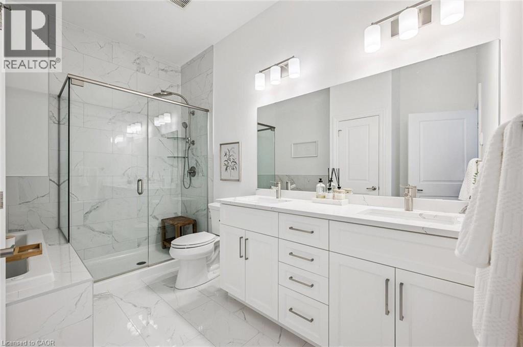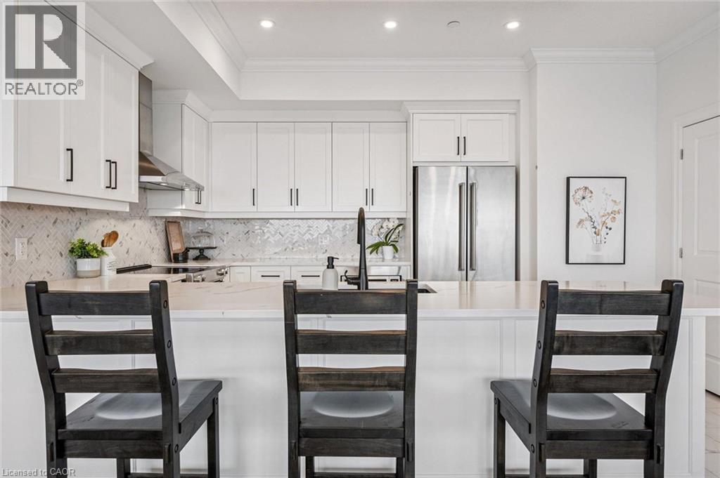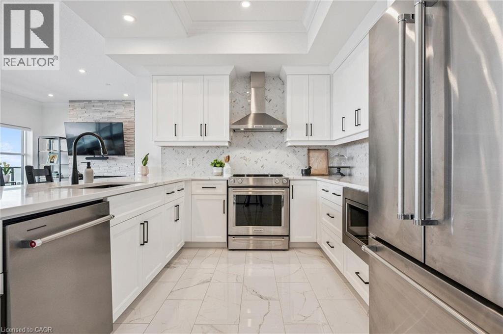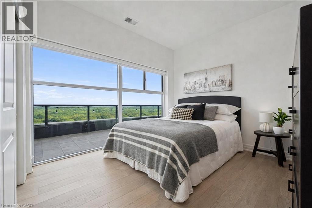 Spectacular 3-bdrm + den residence offering 2006sqft of refined living space in Guelph’s most sought-after south-end addresses! Nestled within esteemed prof. managed building W/resort-style amenities, this exceptional penthouse delivers perfect balance of luxury, comfort & convenience. Breathtaking wall of floor-to-ceiling windows span living & dining areas flooding the home W/natural light & framing treetop views. Open-concept layout feels expansive yet welcoming ideal for everyday living & entertaining. Dining area flows seamlessly into living room where fireplace adds warmth & architectural interest. Sliding doors lead to massive 1042sqft south-facing private terrace offering unobstructed views over lush greenspace, tranquil water & miles of trails. Designed for unforgettable gatherings or peaceful moments, this space accommodates multiple seating areas. Whether hosting under the stars or enjoying morning coffee, this terrace isn’t just an extension of living space, it’s your serene retreat from hustle & bustle of everyday life! Chef-inspired kitchen W/white cabinetry is complemented by elegant backsplash, quartz counters & island W/breakfast bar seating. High-end S/S appliances, range hood & B/I microwave complete a space that is functional & beautiful. Primary bdrm W/dramatic wall of windows & serene views, W/I closet & ensuite W/dbl quartz vanity, soaker tub & W/I glass shower. 2 add'l bdrms offer large windows & closet space. Glass French doors open to den perfectly suited for home office or reading room. 4pc main bath W/quartz counters & W/I glass shower. 2pc bath completes the layout. Enjoy access to impressive amenities: state-of-the-art fitness centre, lounge W/kitchen & billiards, outdoor terrace, golf simulation W/bar area & guest suites. Located in the vibrant south end you'll have access to 401, UofG, GO Transit, dining, shopping & more. Penthouse 1404 is a rare offering, 1 of only 4 penthouses combining exceptional space, views & elevated lifestyle! (id:64974)