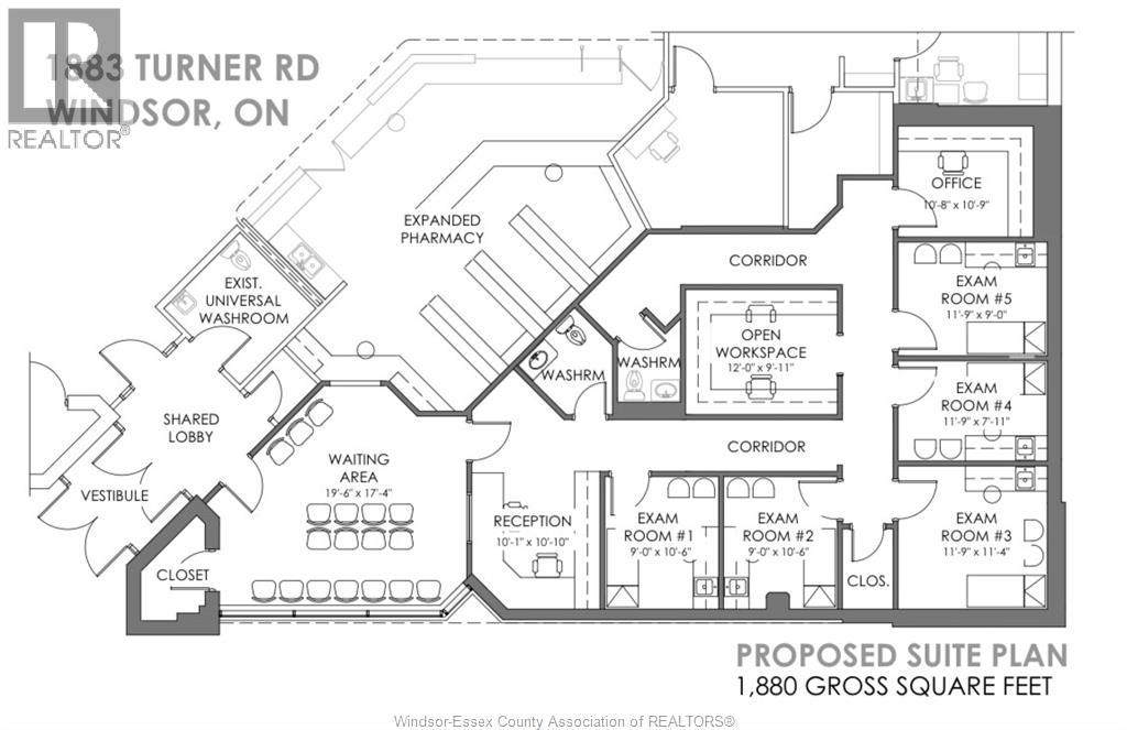 OPPORTUNITY FOR HEALTHCARE PROFESSIONALS LOOKING FOR A SPACE TO PRACTICE! 1800 sq. ft unit available in a medical building with a neighbouring full service pharmacy on site. This unit offers a perfect setup for clinic/medical office use. Landlord will perform additional renovations (architectural design within photos) and will offer a marketing plan to the tenant. Conveniently located just west of Walker Road and across from WRH Metropolitan Hospital. Lots of free parking and on a bus route. $2,500.00 base rent plus CAM of approx. $975.00 plus HST per month. Requires content insurance with minimum $5 million liability. Book now for a private tour! (id:64974)
