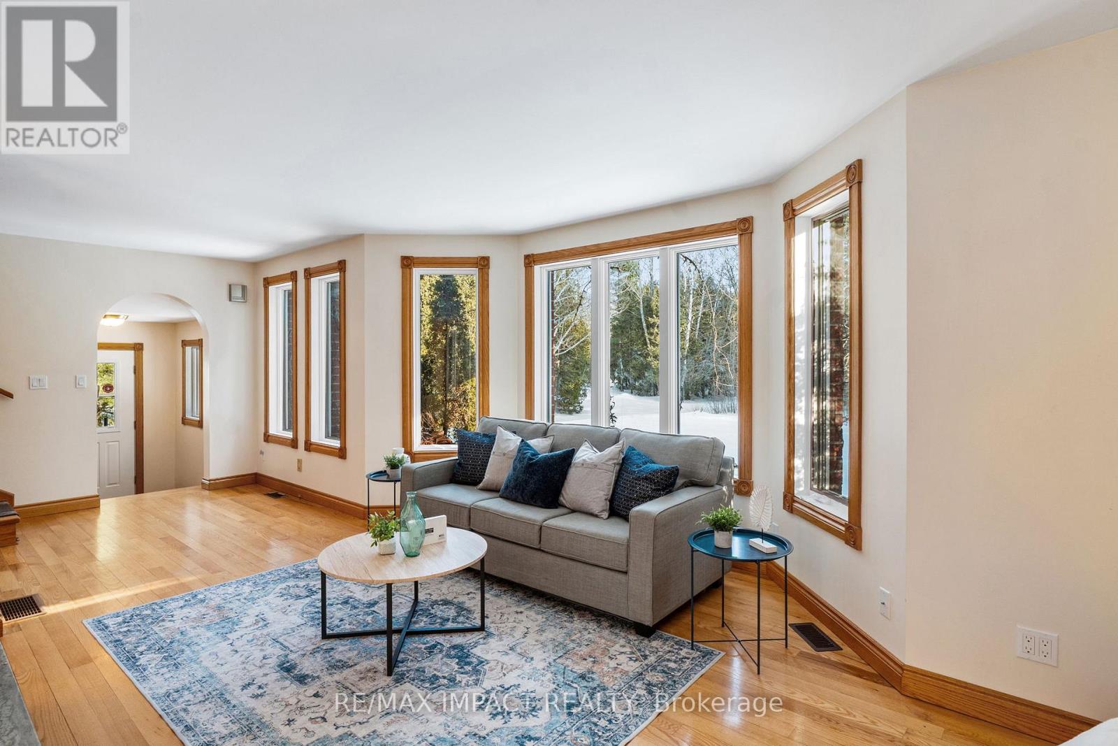 Discover this bright, open-concept detached home, thoughtfully designed for comfort and style situated in the lovely community of Grafton just over a one our drive from Toronto. Featuring 4 spacious bedrooms and 2 bathrooms, this residence is perfectly suited for family living and entertaining. Set on an impressive approx. 4.6-acre private lot, the home welcomes you with an open eat-in kitchen that flows seamlessly to the back porch and expansive backyard, where you can enjoy the sights and sounds of nature overlooking the pond. The primary suite serves as a serene retreat, complete with a 5-piece ensuite effect style bath, while the additional bedrooms are bright, well-proportioned, and perfect for family or guests. Relax in the spacious living room, featuring large windows that frame the very private front yard. The lower level offers a walk-out to additional rooms and an office, providing ideal space for a home office or small business. A large quonset building on the property adds even more versatility for storage, hobbies, or work. Experience peaceful country living with all the conveniences, just a short drive to the Cobourg waterfront and shops . This lovely home combines tranquility, space, and style and is truly a pleasure to view. (id:64974)