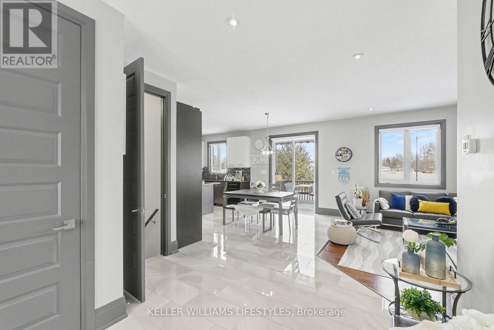 Welcome to this beautifully designed brick and stone bungalow offering exceptional space, style, and comfort. Featuring 3 spacious bedrooms on the main level plus 2 additional bedrooms in the fully finished basement (2022), this home is ideal for families or multi-generational living. The double attached garage and parking for 6 vehicles on the driveway provide rare convenience. Flooded with abundant natural light, the open-concept layout offers breathtaking sunrise and sunset views and seamlessly blends elegance with functionality. The inviting living room showcases a built-in electric fireplace with a recessed TV mount, creating a perfect focal point for relaxation and entertaining. The bright kitchen and bathrooms are finished with granite countertops, complemented by engineered hardwood flooring, gleaming porcelain tile, and high-quality finishes throughout. Enjoy 9-foot ceilings, 8-foot doors, a walk-in pantry, mudroom, and convenient main-floor laundry. The primary bedroom retreat features a walk-in closet and a 4-piece ensuite. Patio doors lead to a large deck, perfect for outdoor enjoyment while overlooking the park. The professionally finished basement includes two generous bedrooms and a luxurious 5-piece full bathroom, offering excellent endless living space. Located in the highly desirable Highland Estate subdivision, this home is steps from parks, walking paths, a recreation centre, shopping, library, and public school-combining peaceful surroundings with everyday convenience.A rare opportunity to own a thoughtfully designed home in an exceptional location. (id:64974)