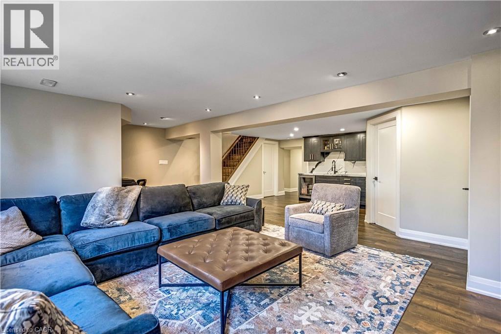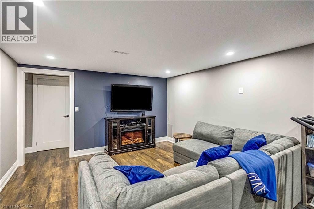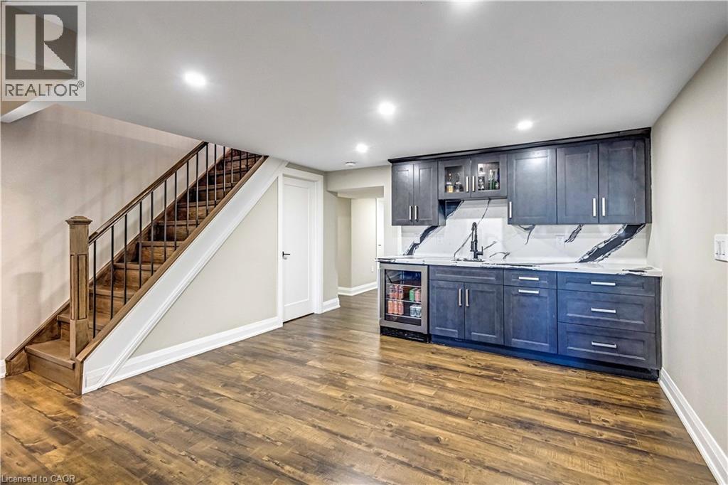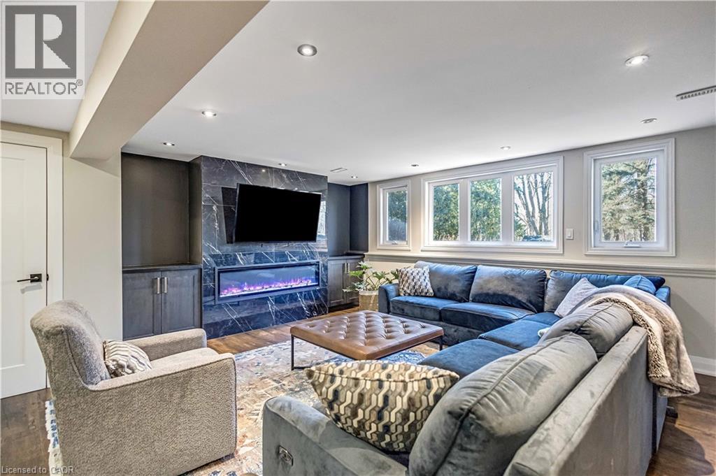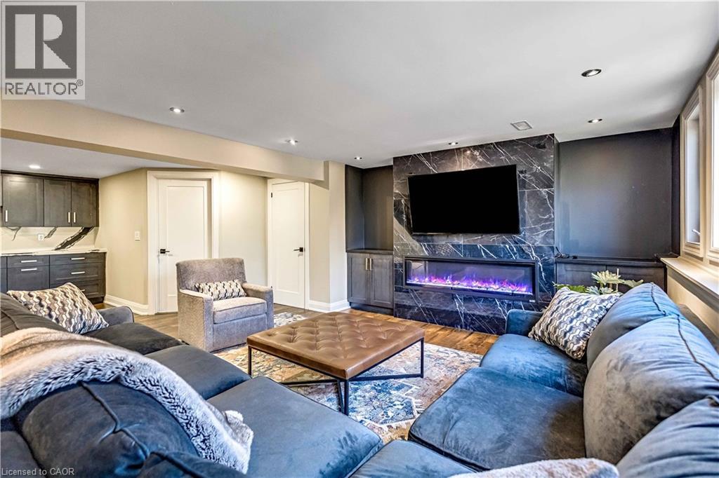 Enjoy this beautifully renovated Burlington bungalow, offering the perfect blend of nature and urban convenience. Set on an incredible 190-ft deep lot with no rear neighbours, this home delivers a rare, private setting surrounded by mature trees—bringing a true cottage feel to the city. With nearly 3,000 sq ft of finished living space, the home has been thoughtfully updated from top to bottom. The main level is filled with natural light from oversized windows that showcase the stunning backyard views. The custom-designed kitchen is ideal for family living, featuring a tile backsplash, custom cabinetry, breakfast bar, beverage fridge, and stainless steel appliances. The main floor also offers a recently renovated foyer with ample storage and modern tiled flooring, a spacious family room with gas fireplace, beautifully updated 4-piece ensuite in the primary bedroom, two additional bedrooms, and a convenient powder room. The fully finished lower level is designed for entertaining, featuring a large rec room with modern electric fireplace, wet bar, two additional bedrooms, and a full bathroom—perfect for guests, teens, or multi-generational living. Step outside to your private backyard retreat with a stone patio, hot tub, and breathtaking forest views. With no rear neighbours and a peaceful natural backdrop, this outdoor space is truly one-of-a-kind. Ideally located just steps to the Bruce Trail, and minutes from Smokey Hollow Waterfall, this home is perfect for nature lovers. Close to the Aldershot GO Station, major highways, and all amenities. Parking for up to 6 vehicles completes this exceptional offering. A rare opportunity to enjoy privacy, space, and nature—without leaving the city. (id:64974)