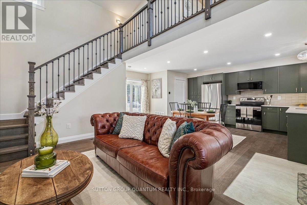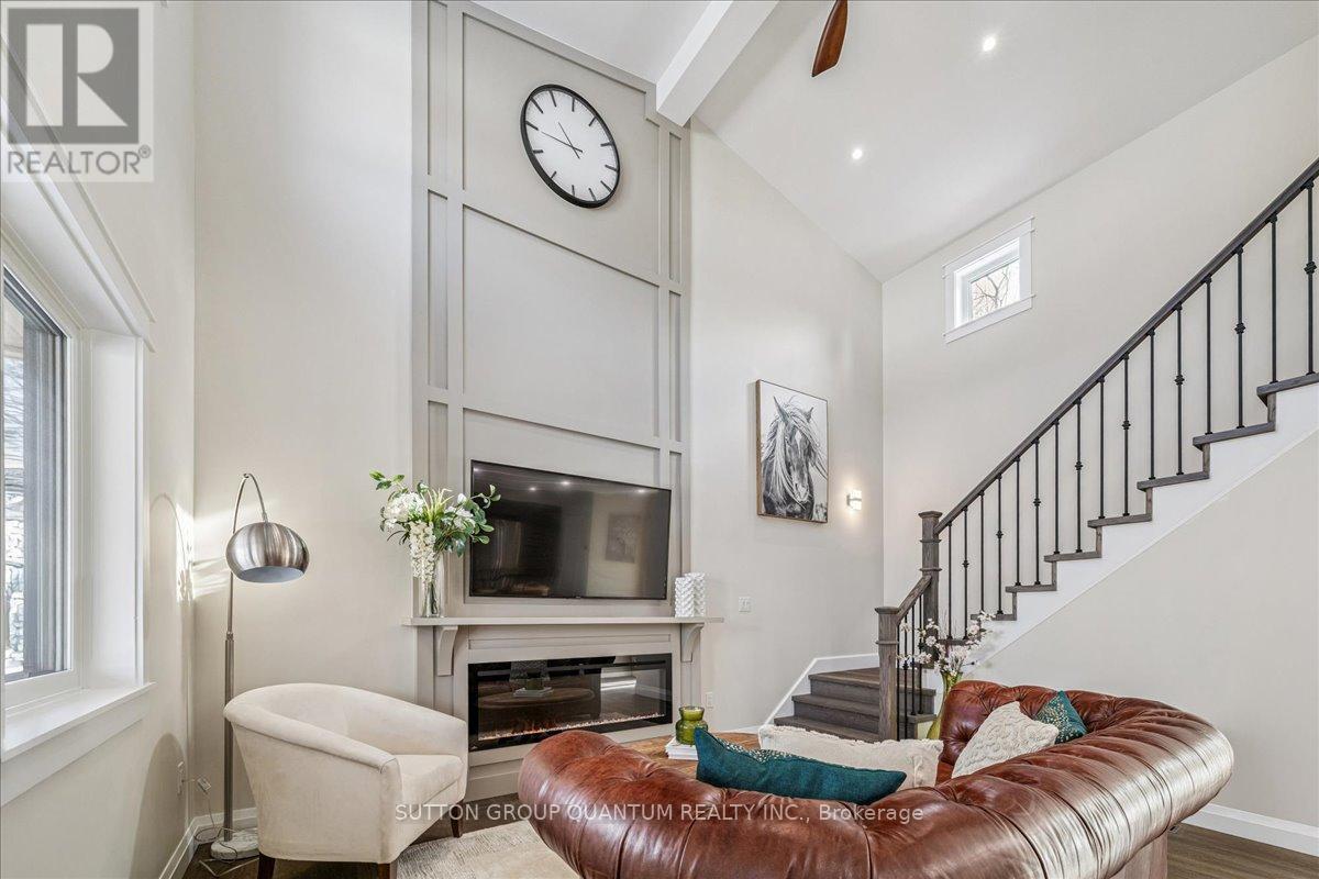 Welcome to Pleasant Valley, nestled in the charming town of Dundas! Known for its picturesque downtown, historic buildings, and unique shops, this area is truly a hidden gem. Surrounded by the stunning escarpment, scenic trails, and protected green spaces, Dundas offers abundant opportunities for outdoor recreation. With year-round festivals, art shows, and vibrant community events, Dundas is an inviting place for families of all ages to call home. This brand-new, detached, spacious two-bedroom, two-bathroom home for lease is an ideal choice for those seeking a peaceful neighbourhood with convenient access to amenities, top-rated schools, and outdoor recreation. This "tiny home" lives large, featuring a grand lofted ceiling, an open-concept floor plan, & an oversized front porch. Newly built with no detail overlooked, the home blends modern conveniences with a charming "cottage in the city" feel. Highlights include modern appliances, carpet-free flooring, statement lighting, and designer finishes throughout. The expansive kitchen offers space for a full-sized dining table and flows seamlessly into the living area, complete with a cozy fireplace and built-in TV. The soaring ceiling enhances the sense of openness, creating a bright and airy atmosphere.The upper level features a spacious primary bedroom with a beautifully designed ensuite bathroom and a large closet. The basement includes a second bedroom, a recreation room, a laundry room with sink, and ample storage for added convenience. Situated on the entire rear portion of the backyard, the home is accessed via a private walkway and features its own dedicated outdoor space, completely separate from the main house. The private backyard includes a large storage shed for personal use and will be fully enclosed with 6'6" privacy fencing, scheduled for completion in Spring 2026. Two parking spaces are included. Separate hydro meters, private entrances, & in-suite laundry, offers complete privacy with no shared sp (id:64974)