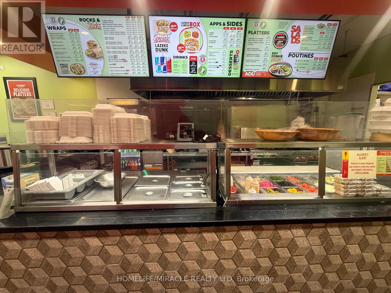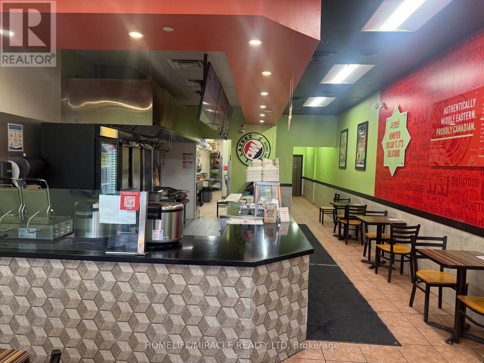 Lazeez Shawarma Business in Woodbridge, ON is For Sale. Located at the busy intersection of Rutherford Rd/Islington Ave. Surrounded by Fully Residential Neighbourhood, Close to Schools, Highway, Offices, Banks, Major Big Box Store and Much More. Business with so much opportunity to grow the business even more. Rent: $5087.30/m including TMI & HST, Lease Term: Existing + 5 years Option to renew, Royalty: 5%, Advertising: 2%. (id:64974)