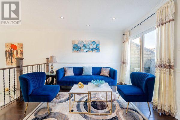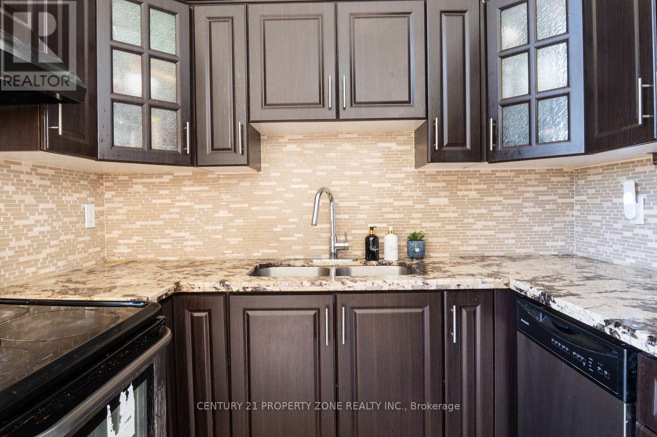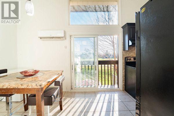 Well-maintained multi-level 4-bedroom, 3-washroom townhome located in a highly desirable family-friendly condo community offering a bright and functional layout with laminate flooring throughout, freshly painted interiors, and a hardwood staircase with elegant iron spindle railings.The kitchen and dining area feature impressive 12 ft ceilings creating an open and airy feel, while the living room offers a walk-out to a private deck/balcony overlooking the dining area, ideal for everyday living and entertaining. The Lower Level includes Family/Recreation room & Private room that has officially and legally converted into a 4th bedroom with a 3-piece ensuite and walk-out to aprivate patio, with all required permits available, providing flexible space suitable for in-laws, guests, or extended family. Located in a prime position within the complex backing onto a playground this home offers added privacy, greenery, and a peaceful setting. Excellent location close to Meadowvale GO Station, offering convenient transit access for commuters. Maintenance fees include exterior upkeep suchas roof, windows, balcony, landscaping, grass cutting, and snow removal, with certain utilities potentially included such as cable, water, and high-speed internet, which can significantly reduce overall monthly living costs (buyer to verify all inclusions with condo management).Conveniently situated close to parks, tennis courts, schools, Meadowvale Community Centre, Meadowvale Town Centre, and Highway 407, this property is ideal for families seeking comfort, convenience, and low-maintenance living in a well-managed community. (id:64974)