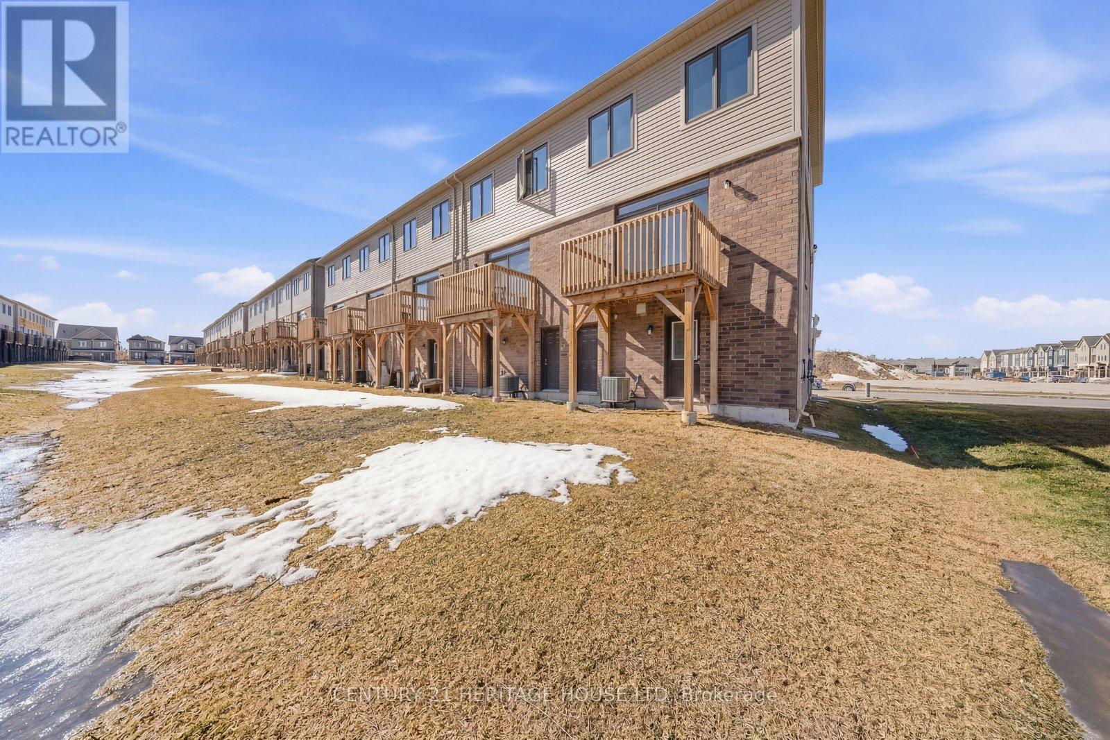 Welcome to 19 Baskett Street in Brantford. This move-in ready FREEHOLD end-unit townhome offers the perfect opportunity for buyers looking to step into the market with zero work required with. Located in the desirable West Brant community, this home features 3 bedrooms, 2.5 bathrooms, and parking for two vehicles. Step inside to a large and welcoming foyer, complete with convenient main floor laundry, access to the garage, and direct entry to the backyard. Upstairs, the open-concept main living area offers a bright and spacious layout, highlighted by a generous living room with an oversized sliding patio door that leads to your private rear balcony, a perfect spot to enjoy your morning coffee or unwind at the end of the day. Just down the hallway, you'll find a 2-piece powder room and a spacious kitchen featuring tile flooring, ample counter and cupboard space, and a large island with dual sink. The layout also allows for a full-sized dining table, comfortably seating six - ideal for hosting family and friends. The second level offers three generously sized bedrooms, including the primary bedroom complete with its own private balcony and 3-piece ensuite bathroom. An additional 4-piece bathroom serves the remaining bedrooms. Outside, the spacious backyard provides plenty of opportunity to create your own outdoor space. Located close to walking trails, restaurants, schools, and all major amenities, this home is perfectly positioned in one of Brantford's most popular neighbourhoods. Don't miss your opportunity to move into this beautiful, move-in ready home this spring. (id:64974)