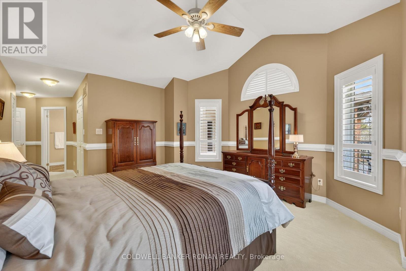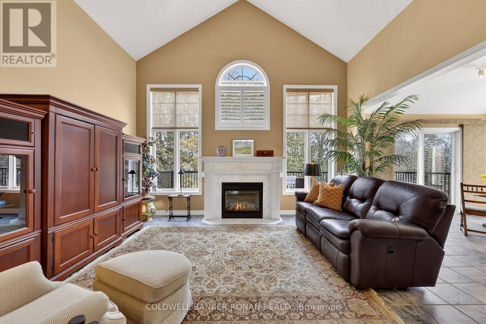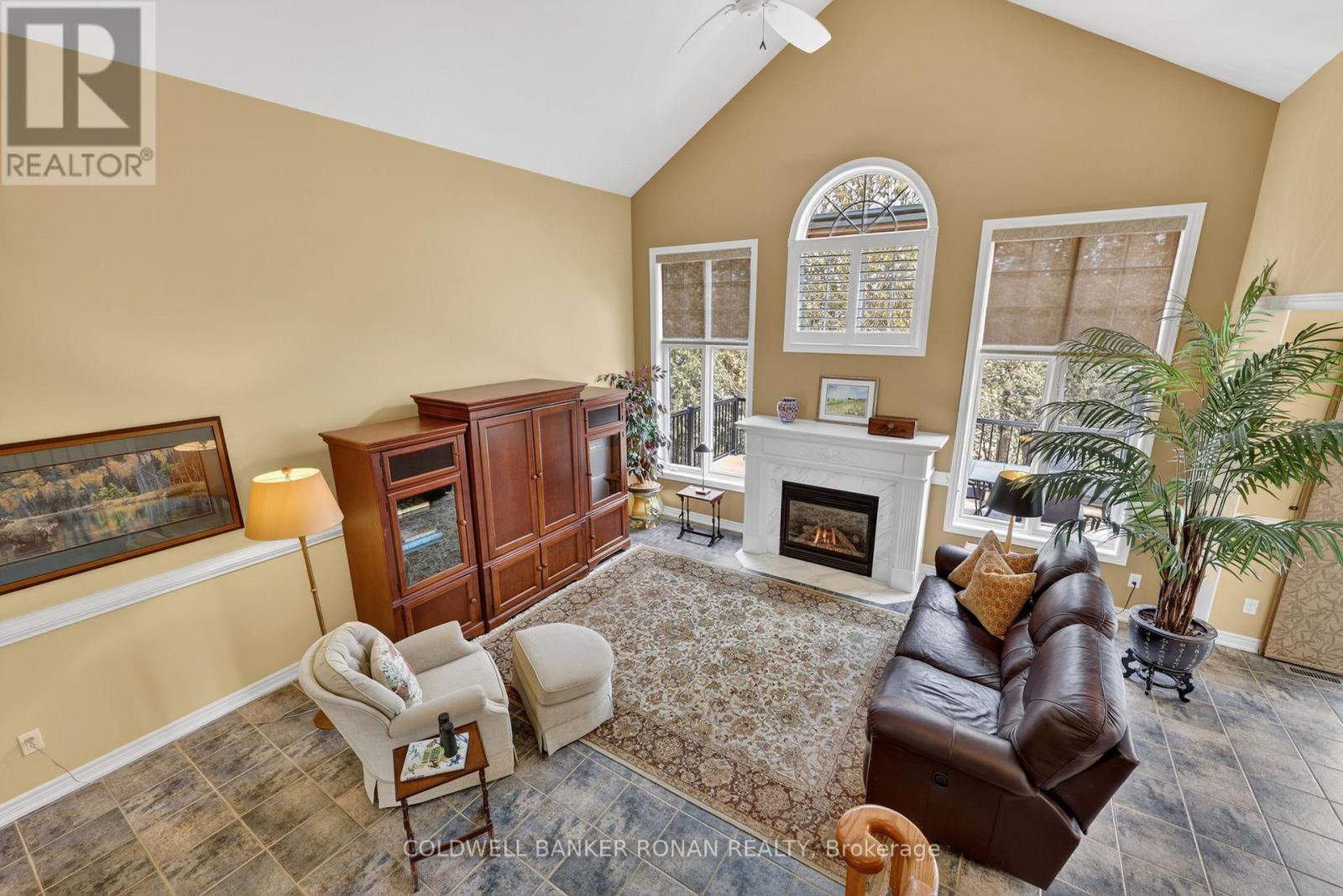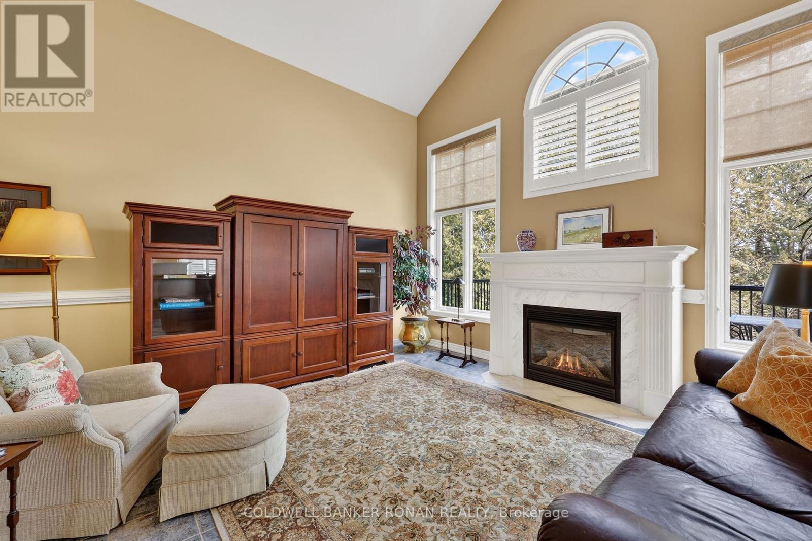 Welcome to 19 Bella Vista Trail, a highly sought-after Monet bungaloft offering 3,505 sq ft of finished living space, tucked away on a quiet dead-end street in Briar Hill. Backing onto the Nottawasaga Golf Course and River, this home delivers exceptional privacy and breathtaking, uninterrupted views - a rare offering in the community. An extra-long, re-laid driveway (2025) accommodates up to four vehicles with ease, in addition to the garage with convenient inside entry. Step inside to a welcoming foyer that opens into a stunning two-storey great room with cathedral ceilings, a gas fireplace, and expansive windows framing the picturesque backyard. A formal dining room provides the perfect setting for hosting. The main floor primary suite offers a private retreat with a walk-in closet and 4-piece ensuite featuring a soaker tub. The kitchen includes a bright eat-in area with walkout to a new oversized deck (2025), complete with two awnings, creating a comfortable outdoor space to take in the views. Upstairs, the loft overlooks the great room and is ideal for a home office or sitting area, alongside an additional bedroom and 3-piece bath. The finished walkout basement extends the living space with a recreation room, wet bar, additional bedroom, 3-piece bath, and ample storage - perfect for guests or multi-generational living. Notable upgrades include new furnace (2025), new washer and dryer (2025), and insulated garage door (2022). Additional features include three gas fireplaces and custom California shutters, blinds, and drapery throughout. Enjoy access to Briar Hill's vibrant adult lifestyle community, with walking trails, a community centre, and close proximity to golf, dining, and amenities. A rare combination of privacy, views, and lifestyle - this is one you won't want to miss. (id:64974)