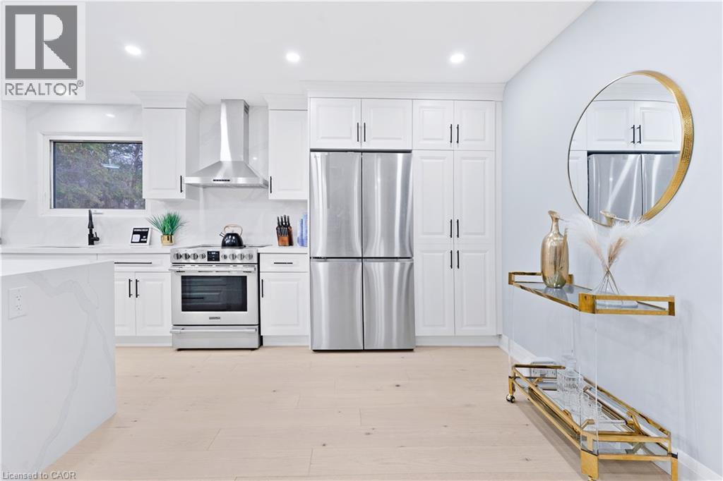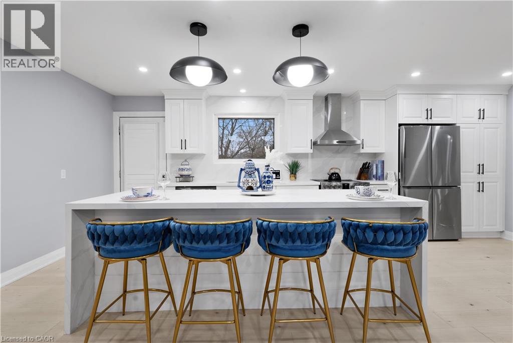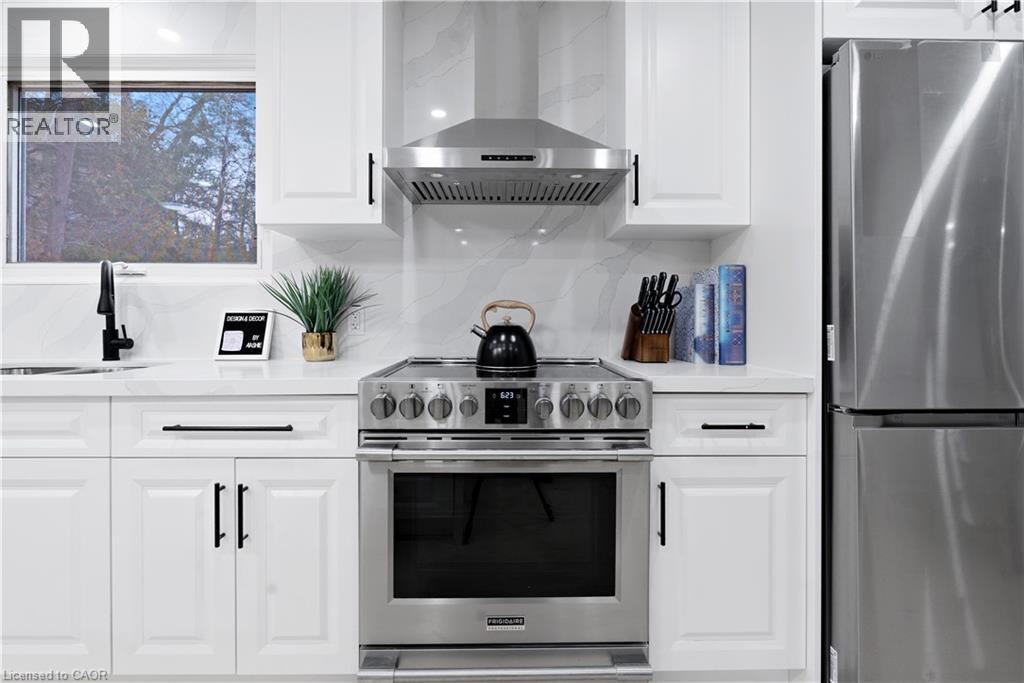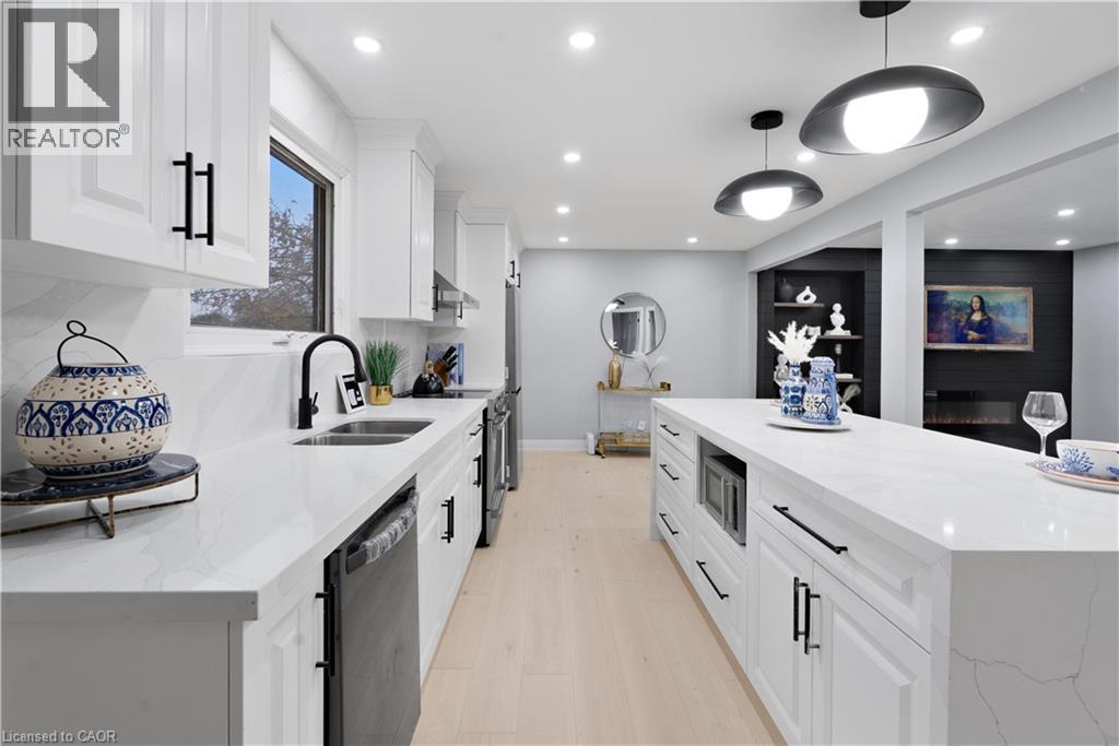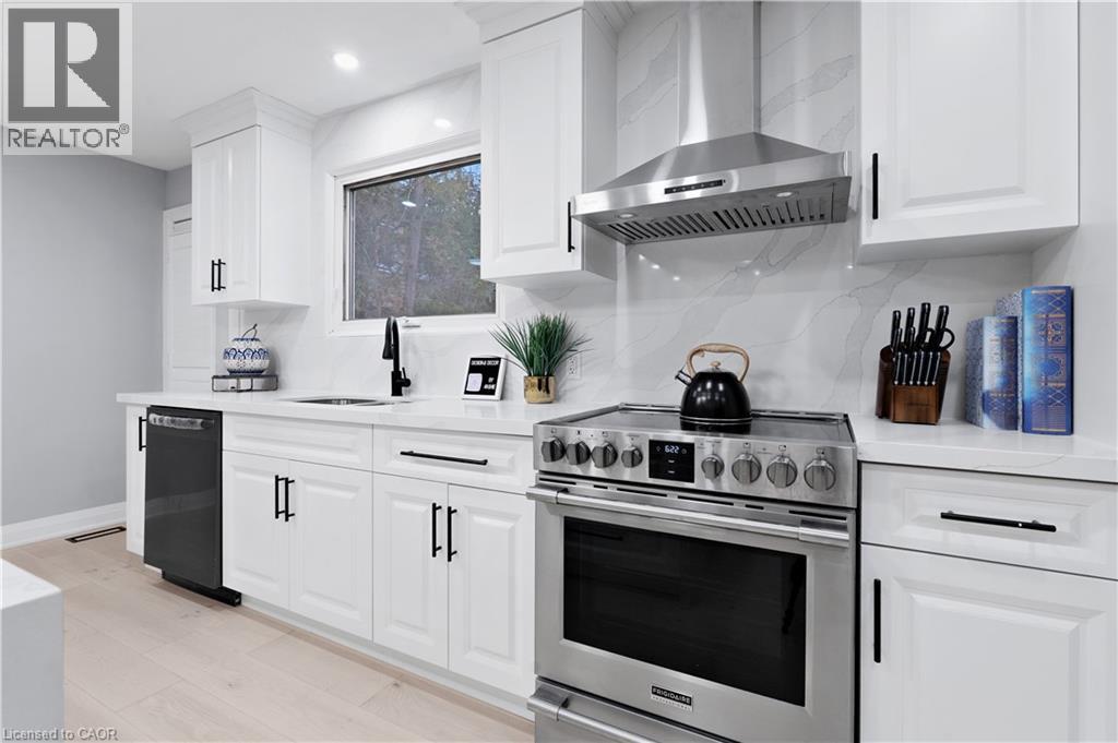 Welcome to 19 Broad Street, Brantford - a beautifully renovated raised bungalow with over $100,000 in upgrades. This turnkey home boasts brand-new siding, roof, driveway, patio, and furnace, along with stylish engineered hardwood flooring, modern pot lights, doors and completely newly built washrooms. The newly built kitchen features quartz countertops and brand-new stainless steel appliances. Offering 2 bedrooms and 1 full bathroom on the main floor, plus 2 additional bedrooms and another full bathroom in the fully finished basement, this home provides comfort and flexibility for any family. Enjoy peace of mind with a new 200 AMP electrical panel and the convenience of being close to Brantford General Hospital, parks, schools, shopping, and all major amenities, highways. Move-in ready and designed for modern living, this home perfectly combines quality, style, and convenience. (id:64974)