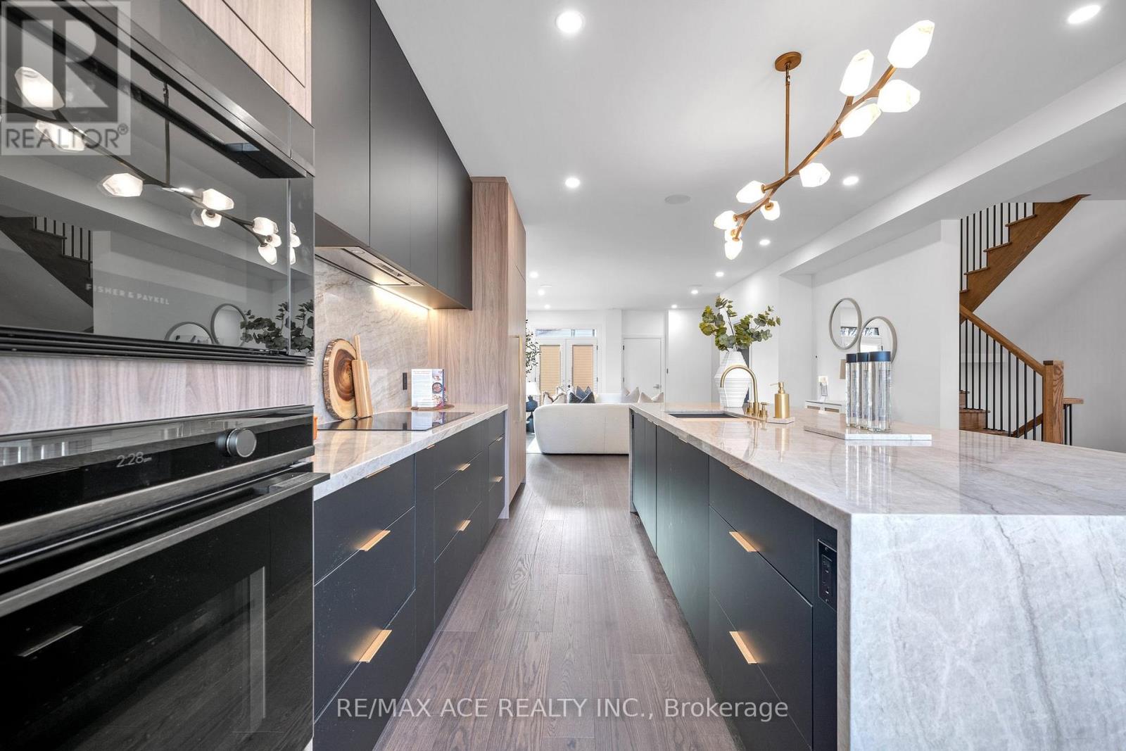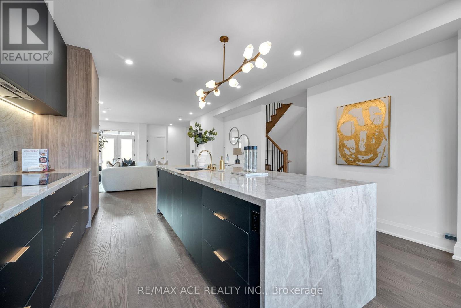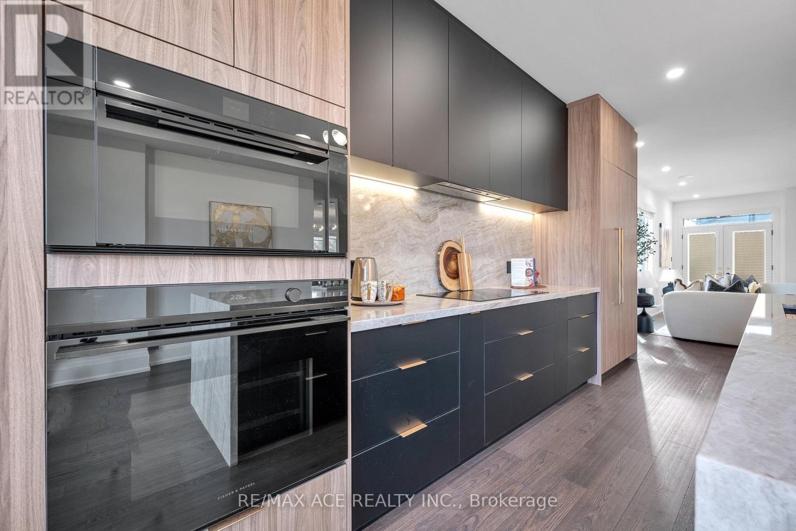 Stunning two-storey custom home in a family-friendly, walkable neighborhood with mature trees. Featuring 4 bedrooms, 3.5 bathrooms, and a Scandinavian-inspired kitchen with a large waterfall quartzite island, induction cooktop, and panel-ready appliances. The open-concept main floor boasts 9-ft ceilings, large windows, hardwood and porcelain flooring, two living areas, dining space, and plenty of custom storage. Upstairs, the primary suite offers a spa-like 6-piece ensuite, plus three additional bedrooms and two more bathrooms. Luxury touches include gold-accented fixtures, motorized curtains, electric fireplace, in-ceiling speakers, a mezzanine, and a garage with Tesla EV charging. Security is advanced with automated entry and multiple cameras. The unfinished basement has a separate entrance, and the large front and backyards are perfect for relaxing. Close to schools, shopping, highways, Ajax GO station, and the waterfront. Modern comfort, style, and convenience-all in one home! (id:64974)