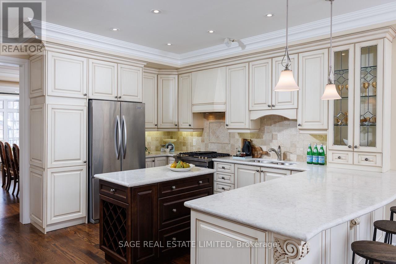 This stunning custom built home is situated on a prime street in the heart of the Bedford Park area. Steps from Avenue Road's premier shops, restaurants and amenities, this home offers unparalleled convenience in one of Toronto's most desirable neighbourhoods. Inside you are welcomed with large principal rooms, custom millwork, hardwood floors, wainscoting, soaring ceilings and leaded glass windows that add a traditional elegance. A gourmet kitchen with top of the line appliances and a centre island flow seamlessly into the breakfast room which allows double french door access to the rear deck and serenely private yard. The family room offers custom cabinetry, a built in gas fireplace and a large window overlooking professionally landscaped gardens. Upstairs a skylight greets you with a bright open hallway, hardwood floors, a spacious prime suite with walk in and double closets, a four-piece marble ensuite with jet tub, separate shower and adjacent vanity under a skylight. Two additional bedrooms share a five-piece semi-ensuite and a 2nd floor laundry is an added convenience. The lower level features a large finished recreation room with a comfortable relaxation and entertaining area, four-piece bath and direct access to the garage and separate entrance. Ideally located close to top schools, parks and transit, this home is perfect for midtown family living. (id:64974)