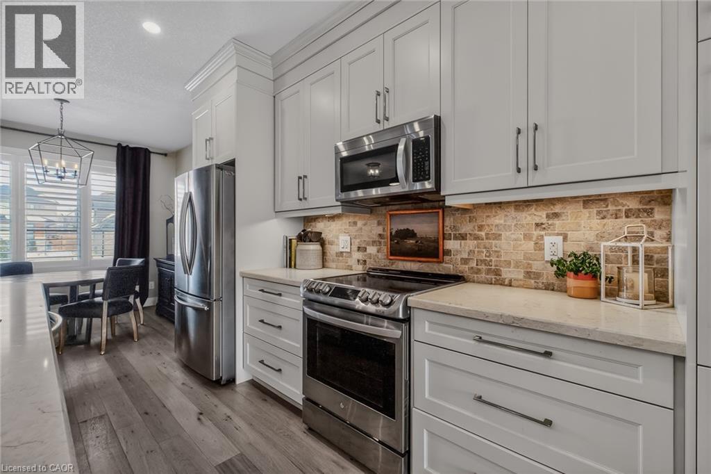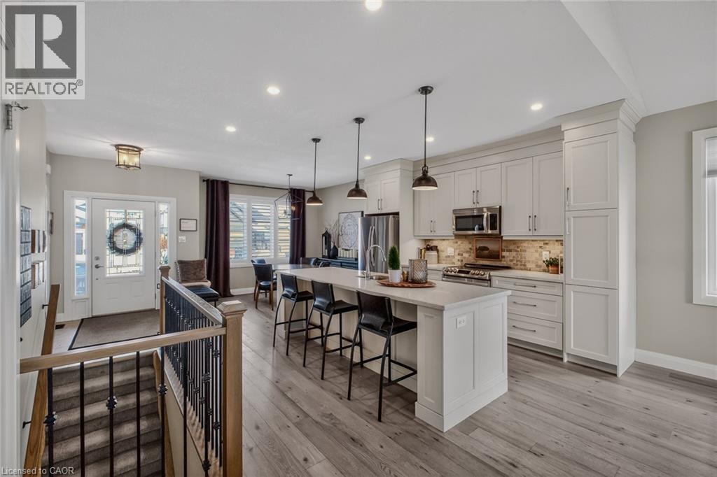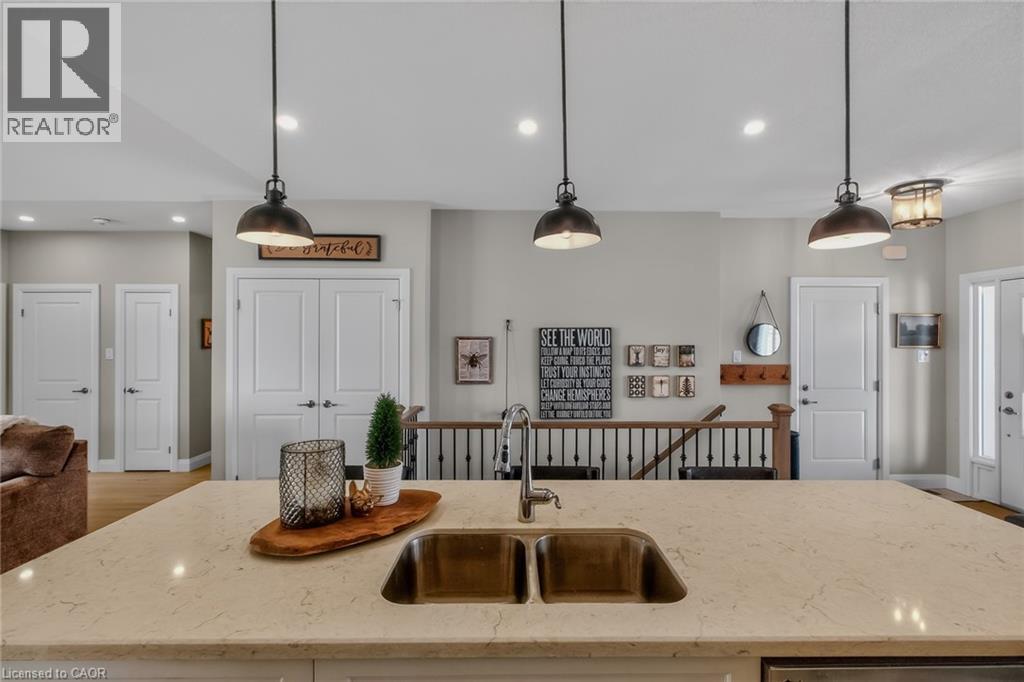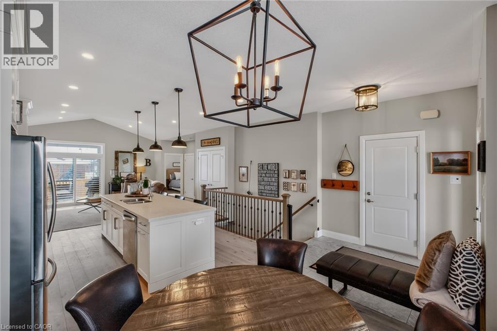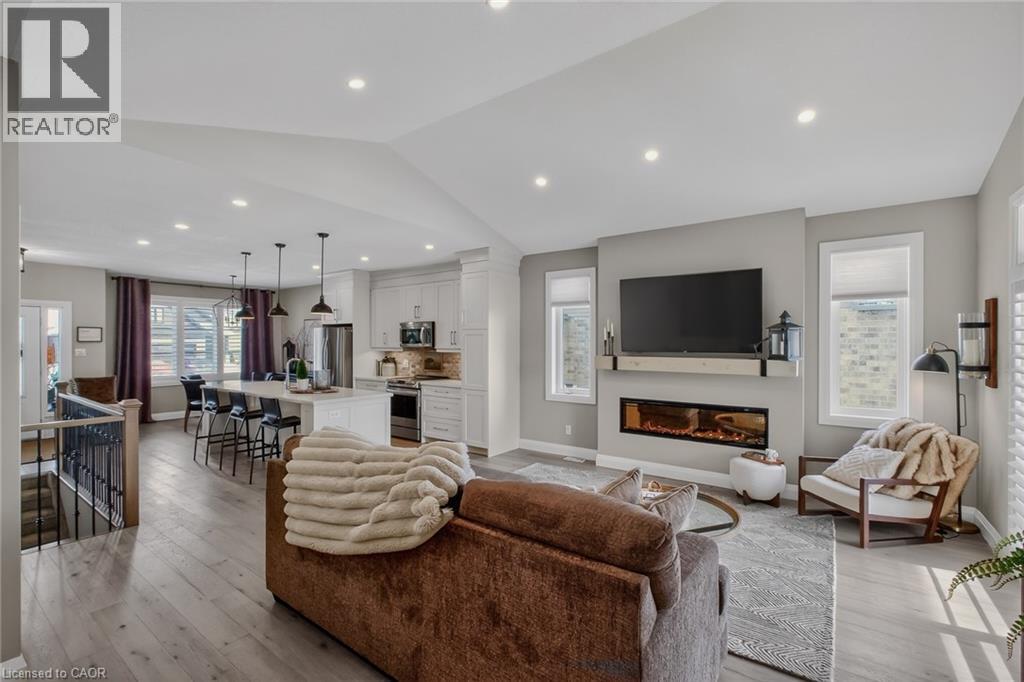 Welcome to this stunning custom-built, all-brick Dubecki Home located in Paris Ontario, surrounded by walking trails and just minutes to the Brant Sports Complex. Conveniently close to everyday shopping, walk-in clinics, local pubs, and only a short drive to historic downtown Paris, this location offers both lifestyle and convenience. Thoughtfully designed with quality craftsmanship and upscale finishes throughout, this home offers exceptional comfort, style, and functionality. The bright and inviting main floor features a vaulted ceiling with pot lights, engineered hardwood flooring, and a cozy fireplace that anchors the living space. The chef-inspired kitchen is a true showstopper, complete with quartz countertops, soft-close cabinetry, stainless steel appliances, and an oversized quartz island offering storage, a sink, dishwasher, and seating—perfect for entertaining. This home offers four spacious bedrooms, two located on the main floor, including a beautiful primary suite featuring a walk-in closet and a private ensuite bathroom. In total, there are three full bathrooms—two on the main level and one in the basement—all finished with elegant quartz countertops. The fully finished basement is warm and welcoming with 9-foot ceilings, plush carpet for added coziness, a gas fireplace with a stone surround, and large egress windows that flood the space with natural light. This level also includes two additional bedrooms, a full bathroom, a beautifully designed laundry room, and a large utility area providing excellent storage space. Additional highlights include sliding patio doors with California-style shutters, a covered back deck, covered front porch, direct entry from the foyer to the garage, and abundant storage throughout. With high-end finishes at every turn, this home is truly move-in ready. An exceptional opportunity to own a custom home in one of Paris’s most sought-after communities—this property must be seen to be fully appreciated. (id:64974)
