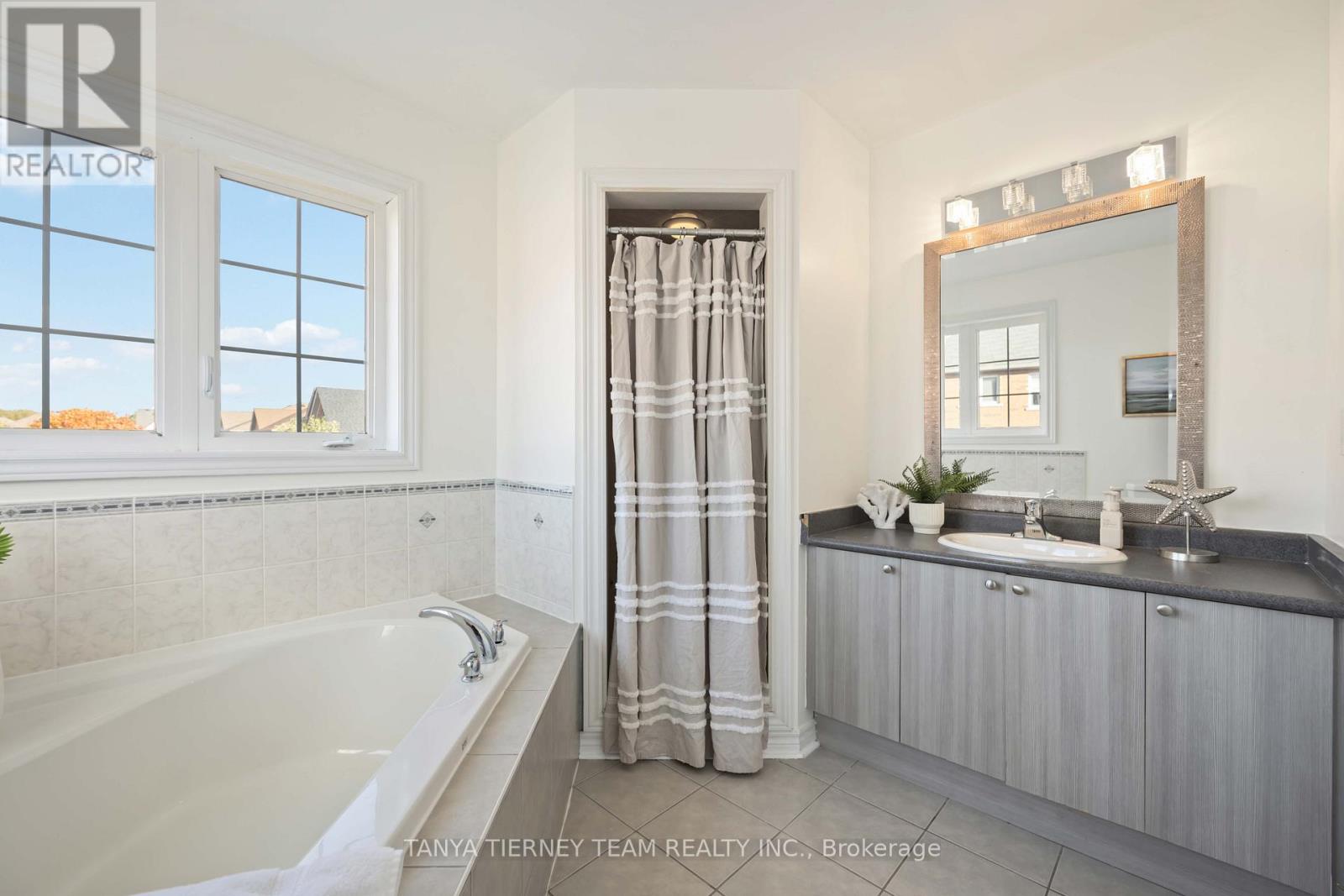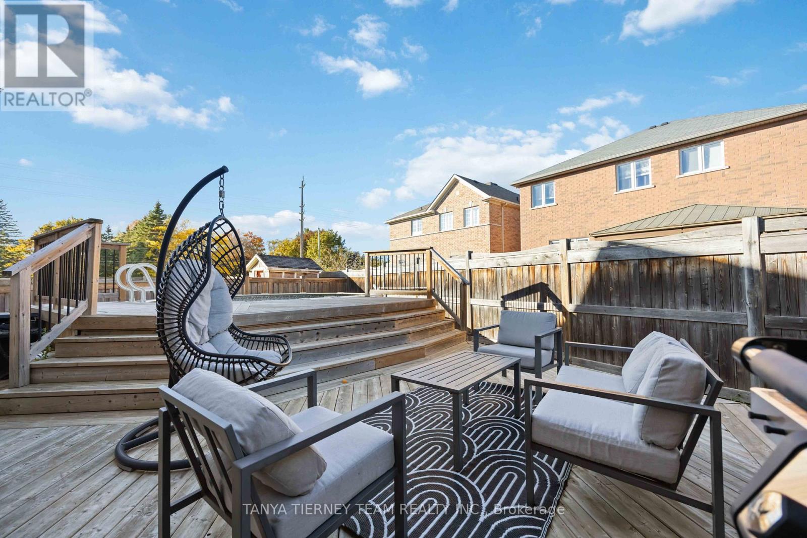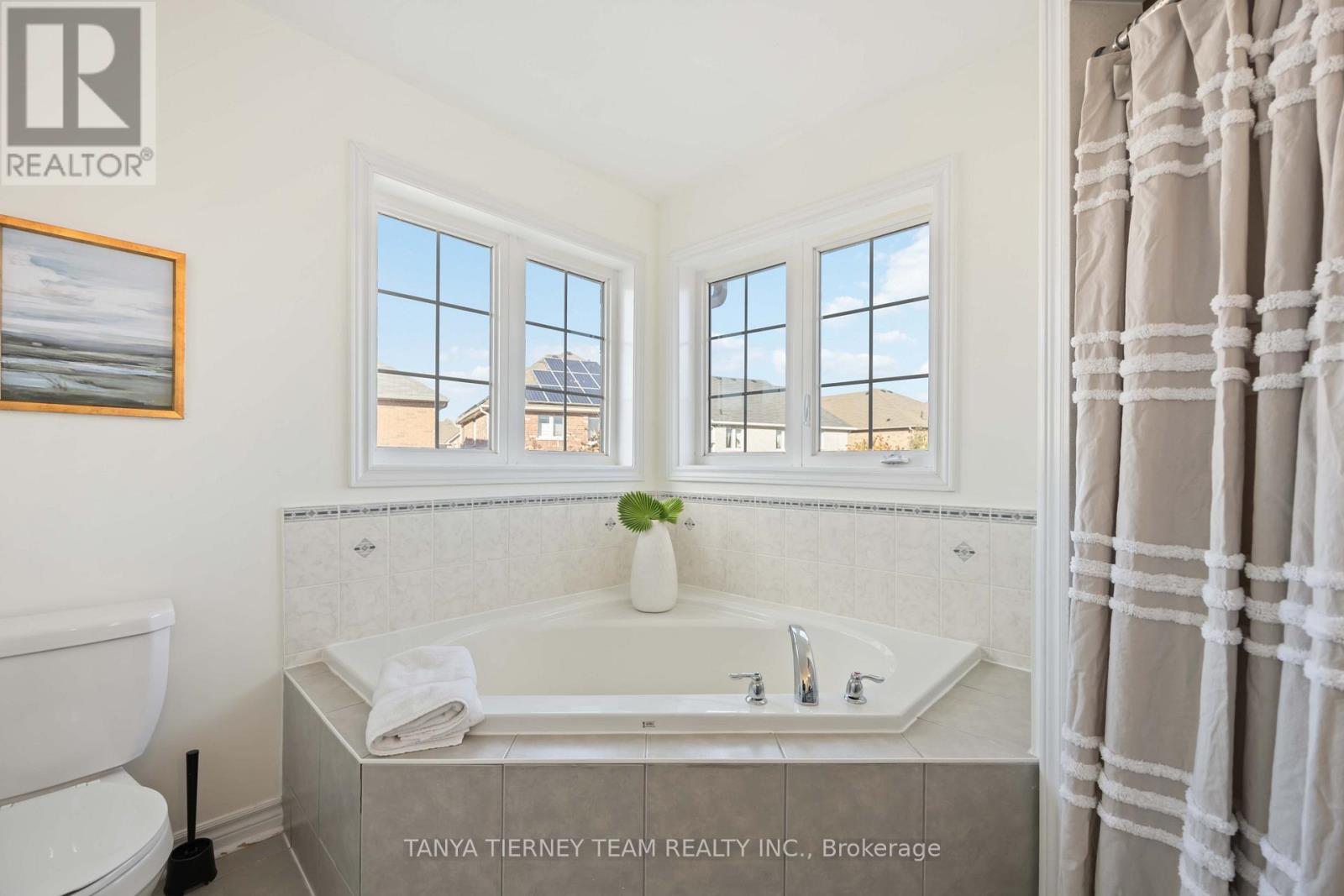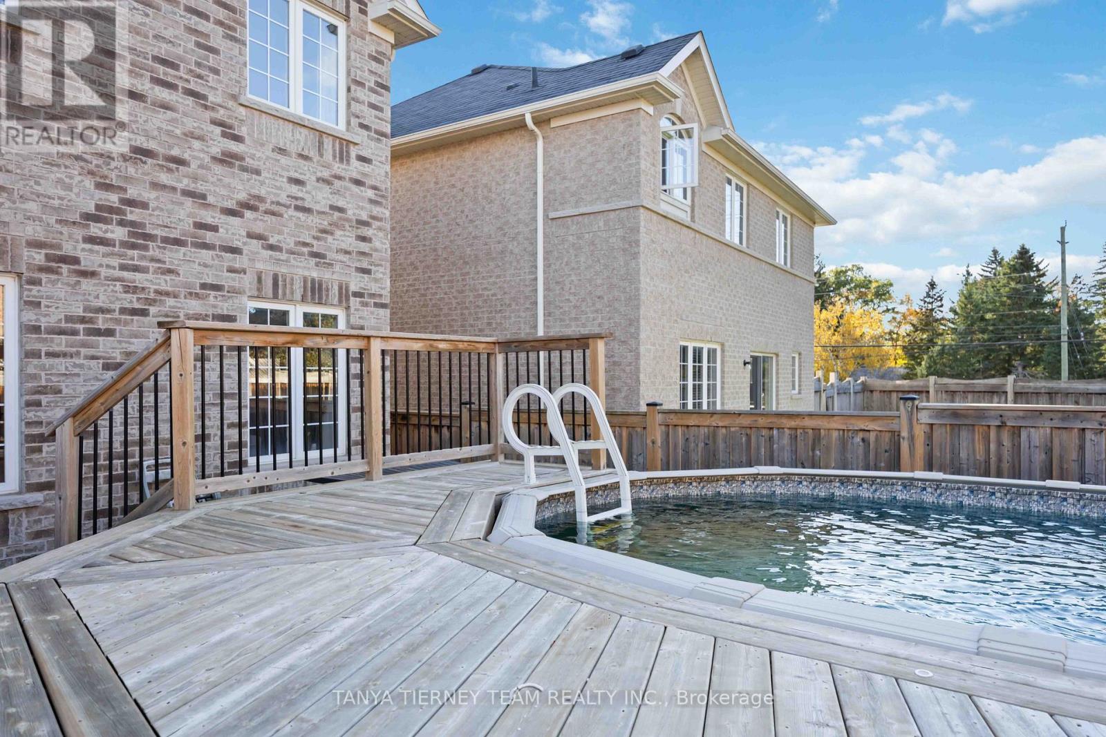 Welcome to this exceptional 5-bedroom, 4-bathroom family home nestled on a quiet court in sought-after North Whitby. Offering space, style, and functionality, this beautifully maintained property is perfect for growing families.The open-concept main floor features 9-ft ceilings, gleaming hardwood floors, pot lights, remote-operated blinds, and a custom feature wall in the elegant formal living room. A separate formal dining room is ideal for hosting, while the spacious great room provides comfortable everyday living.The modern kitchen boasts stainless steel appliances, a breakfast bar, contemporary backsplash, and a bright breakfast area with walk-out to a large entertainer's deck. Enjoy summer living in the fully fenced backyard complete with an above-ground pool. Upstairs offers five generously sized bedrooms, each with ensuite access. The primary retreat features a walk-in closet and a spa-like 4-piece ensuite with a corner soaker tub. Additional bedrooms share convenient Jack & Jill bathrooms, ideal for family living.The fully finished basement extends the living space with pot lights throughout - perfect for a media room, home gym, or play area - plus ample storage.Located close to top-rated schools, parks, shopping, and all amenities, this stunning home combines comfort and convenience in one of Whitby's most desirable neighbourhoods. A rare opportunity you won't want to miss! (id:64974)