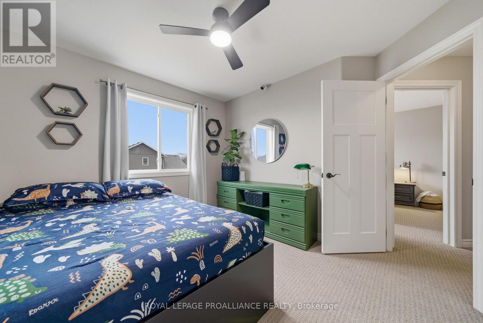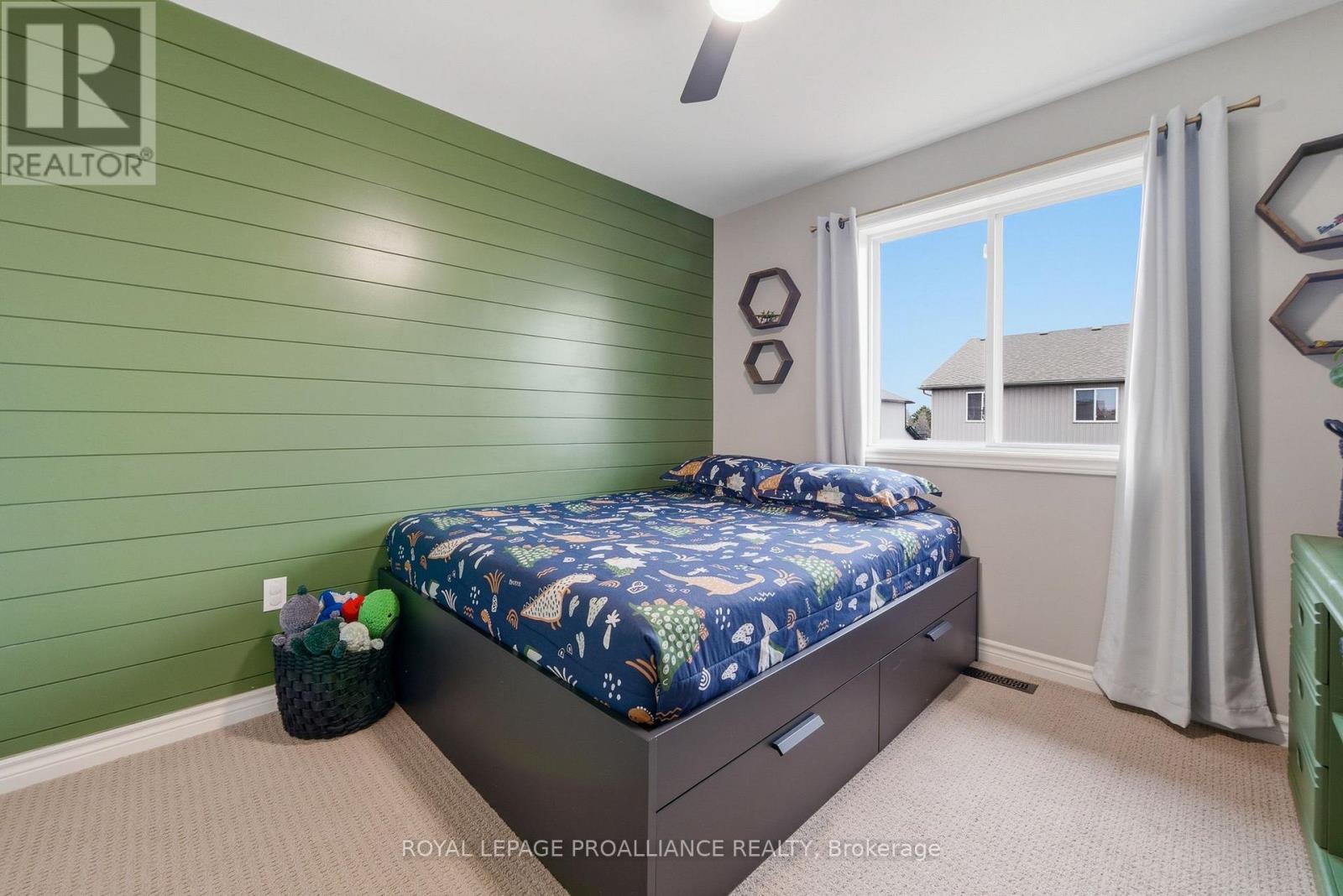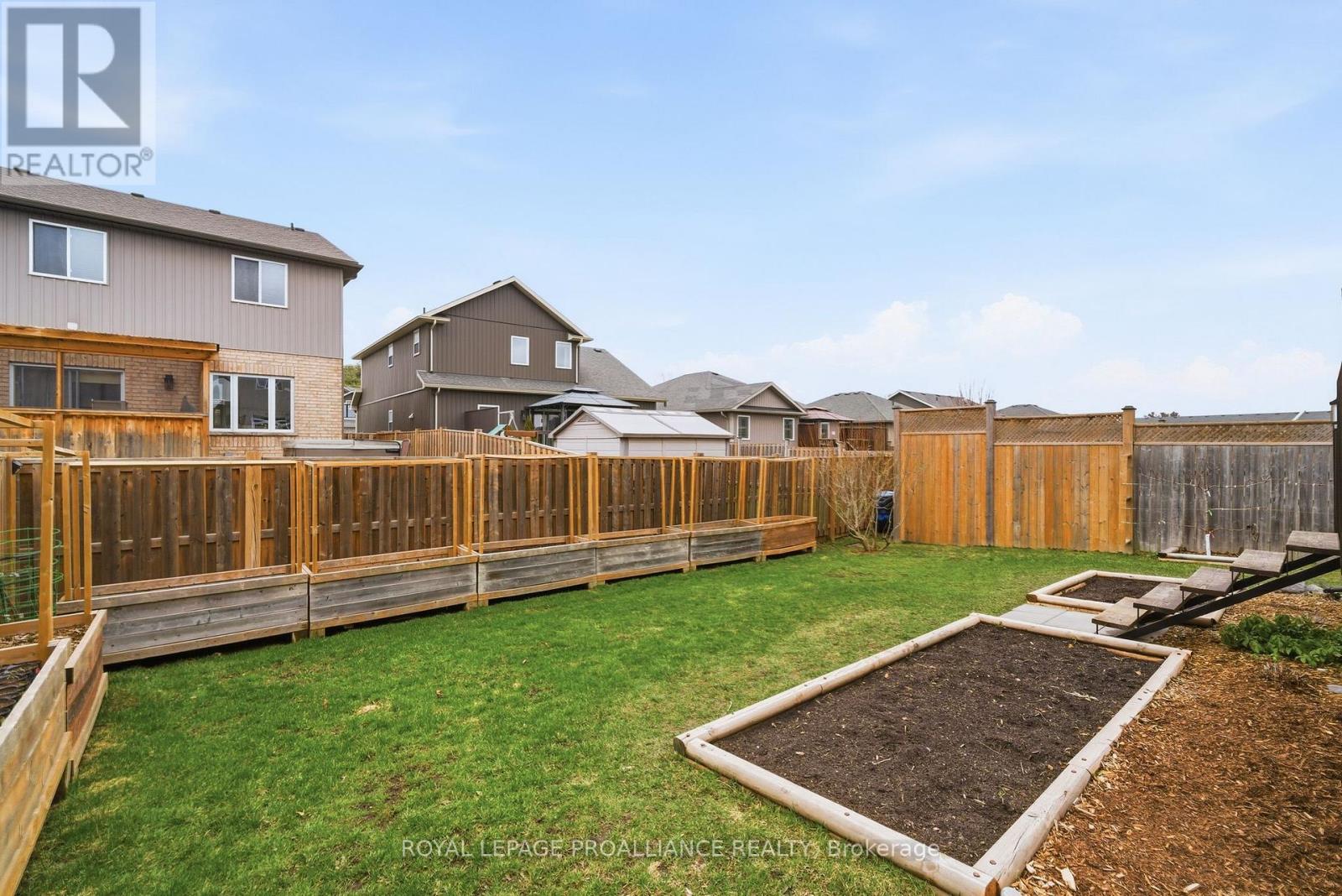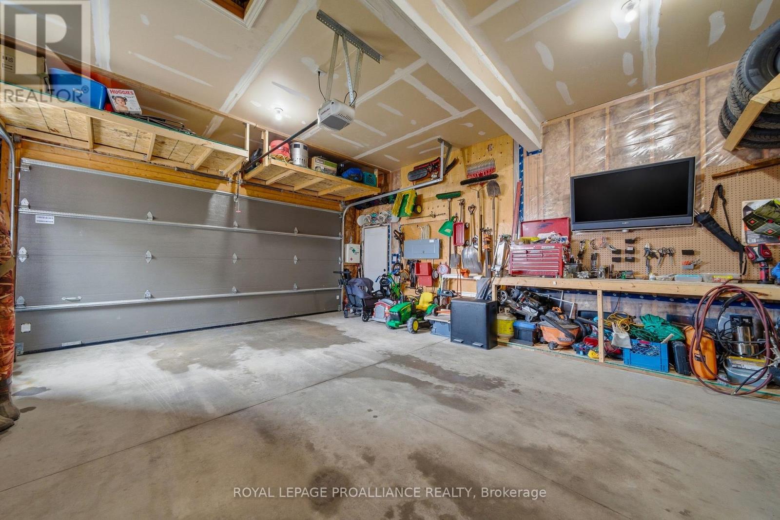 Built in 2015 & feels like new. 19 Granite Drive is ideally situated on an interior street, just two blocks from the park offering pickle ball & tennis court, children's play area + open fields to run. This spotless home, with over 2,000 sq feet of finished living space provides everything a family needs & more. Spacious foyer connects from the double garage as well, providing 2 closets & convenient 2 piece powder room. The main living area, quietly tucked to the rear grants 9' ceilings throughout this comfortable space. The impressive kitchen promotes ample cabinet storage & classy staggered upper cupboards upgrade with complimenting backsplash, reverse osmosis drinking water & detached island overlooking the living & dining area. The transom window features allows natural sunlight to filter in & up the stairs via the strategic custom wall opening. Upper level provides 3 great sized bedrooms, the primary with a massive walk-in closet & 3 piece ensuite offering a step in shower with bench seating. The function continues with a large 4 piece bath and dedicated laundry room complete with widow & laundry sink. The perks extend into the basement with freshly finished recreation & bonus room, currently enjoyed as a gym with two windows offering many future use options to suit your own needs. Enclosed rough-in bath area provides a 4th bathroom option and fabulous storage in the utility room, under stairs area + custom garage shelving. Amazing exterior grants a large deck with gas BBQ line & privacy feature overlooking the fenced in yard, surrounded by raised garden beds & convenient side gate access on each side. Enjoy the fun children's play structure & the fruit offerings from the honeycrisp apple, bartlett & bosc pear trees. Potter's Creek is a family friendly neighbourhood within great proximity to paved walking, biking & roller blading trails, popular schools, shopping, CFB Trenton & the beautiful Bay of Quinte. Open House:Sunday April 19, 11am-12:30pm (id:64974)
