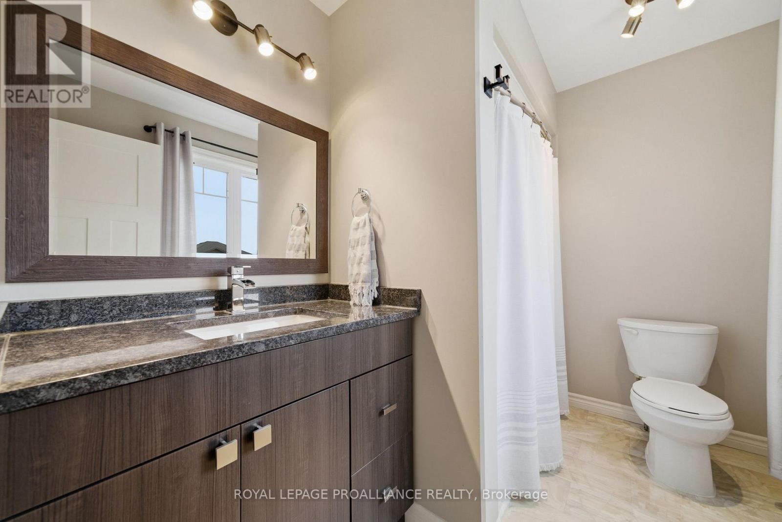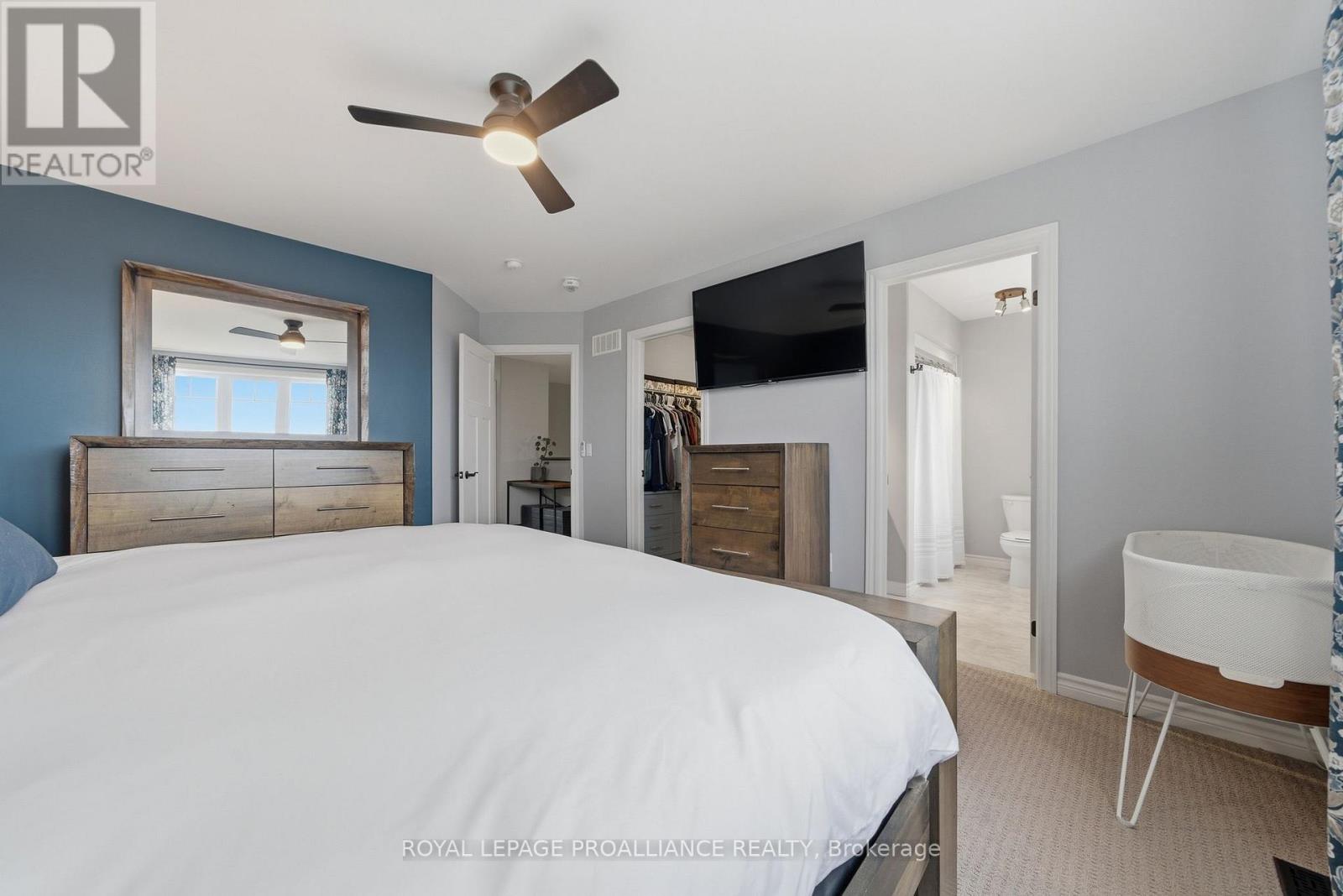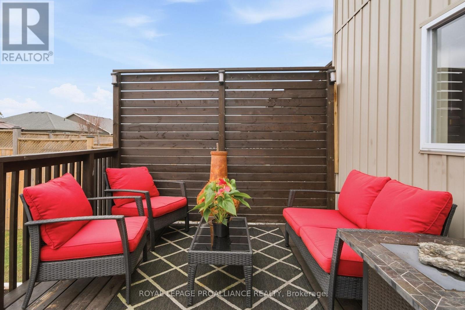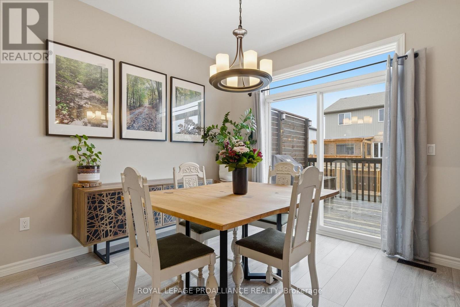 Built in 2015 & feels like new. 19 Granite Drive is ideally situated on an interior street, just two blocks from the park offering pickle ball & tennis court, children's play area + open fields to run. This spotless home, with over 2,000 sq feet of finished living space provides everything a family needs & more. Spacious foyer connects from the double garage as well, providing 2 closets & convenient 2 piece powder room. The main living area, quietly tucked to the rear grants 9' ceilings throughout this comfortable space. The impressive kitchen promotes ample cabinet storage & classy staggered upper cupboards upgrade with complimenting backsplash, reverse osmosis drinking water & detached island overlooking the living & dining area. The transom window features allows natural sunlight to filter in & up the stairs via the strategic custom wall opening. Upper level provides 3 great sized bedrooms, the primary with a massive walk-in closet & 3 piece ensuite offering a step in shower with bench seating. The function continues with a large 4 piece bath and dedicated laundry room complete with widow & laundry sink. The perks extend into the basement with freshly finished recreation & bonus room, currently enjoyed as a gym with two windows offering many future use options to suit your own needs. Enclosed rough-in bath area provides a 4th bathroom option and fabulous storage in the utility room, under stairs area + custom garage shelving. Amazing exterior grants a large deck with gas BBQ line & privacy feature overlooking the fenced in yard, surrounded by raised garden beds & convenient side gate access on each side. Enjoy the fun children's play structure & the fruit offerings from the honeycrisp apple, bartlett & bosc pear trees. Potter's Creek is a family friendly neighbourhood within great proximity to paved walking, biking & roller blading trails, popular schools, shopping, CFB Trenton & the beautiful Bay of Quinte. Open House:Sunday April 19, 11am-12:30pm (id:64974)