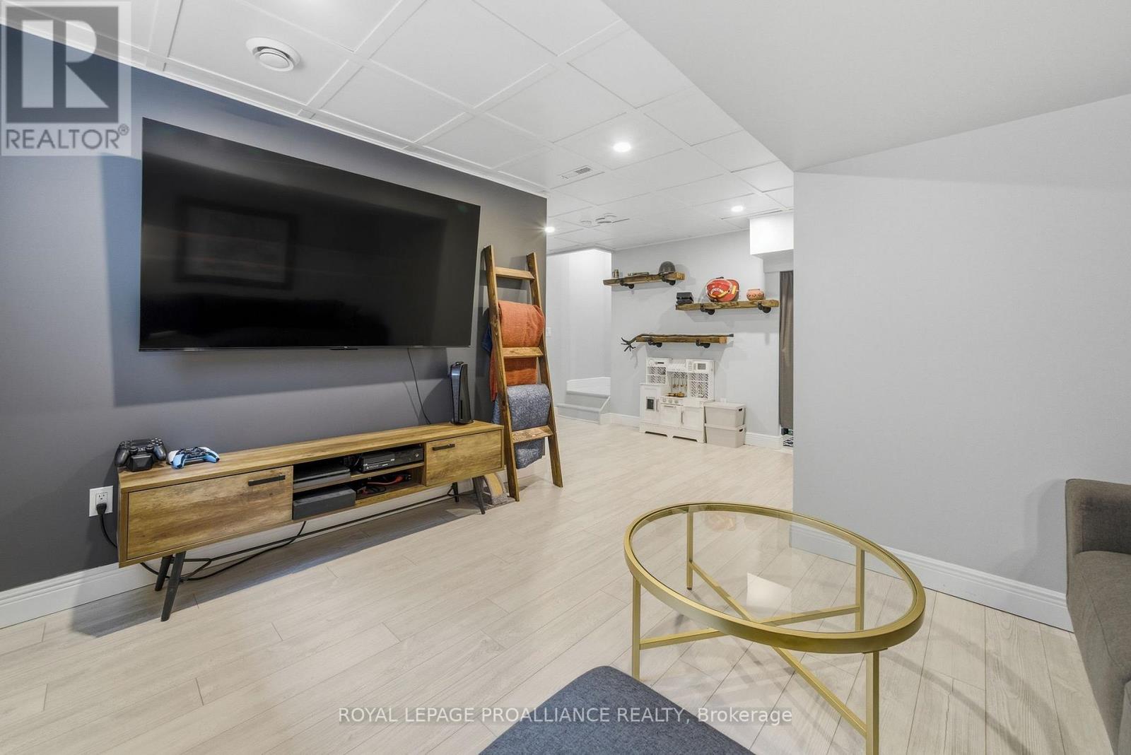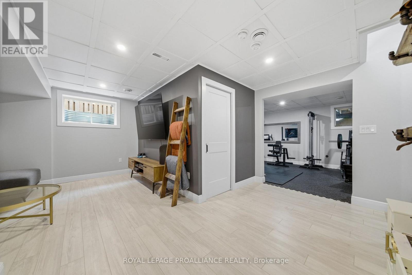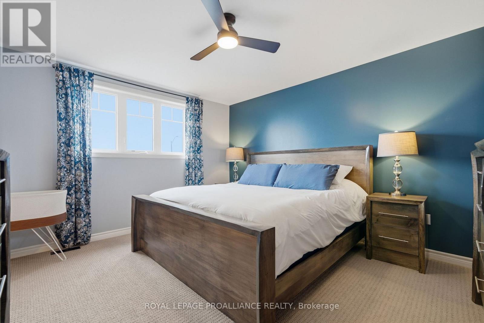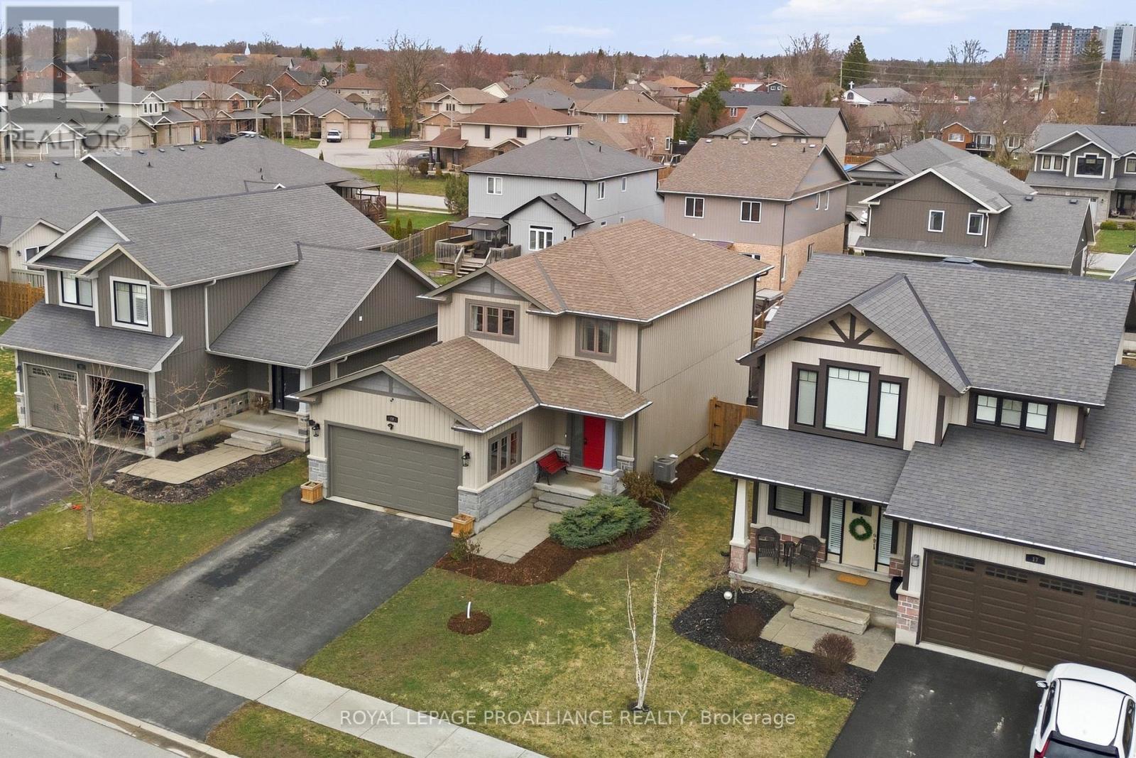 Built in 2015 & feels like new. 19 Granite Drive is ideally situated on an interior street, just two blocks from the park offering pickle ball & tennis court, children's play area + open fields to run. This spotless home, with over 2,000 sq feet of finished living space provides everything a family needs & more. Spacious foyer connects from the double garage as well, providing 2 closets & convenient 2 piece powder room. The main living area, quietly tucked to the rear grants 9' ceilings throughout this comfortable space. The impressive kitchen promotes ample cabinet storage & classy staggered upper cupboards upgrade with complimenting backsplash, reverse osmosis drinking water & detached island overlooking the living & dining area. The transom window features allows natural sunlight to filter in & up the stairs via the strategic custom wall opening. Upper level provides 3 great sized bedrooms, the primary with a massive walk-in closet & 3 piece ensuite offering a step in shower with bench seating. The function continues with a large 4 piece bath and dedicated laundry room complete with widow & laundry sink. The perks extend into the basement with freshly finished recreation & bonus room, currently enjoyed as a gym with two windows offering many future use options to suit your own needs. Enclosed rough-in bath area provides a 4th bathroom option and fabulous storage in the utility room, under stairs area + custom garage shelving. Amazing exterior grants a large deck with gas BBQ line & privacy feature overlooking the fenced in yard, surrounded by raised garden beds & convenient side gate access on each side. Enjoy the fun children's play structure & the fruit offerings from the honeycrisp apple, bartlett & bosc pear trees. Potter's Creek is a family friendly neighbourhood within great proximity to paved walking, biking & roller blading trails, popular schools, shopping, CFB Trenton & the beautiful Bay of Quinte. Open House:Sunday April 19, 11am-12:30pm (id:64974)