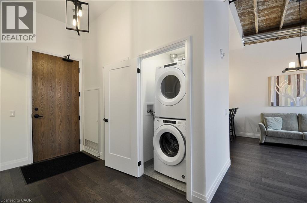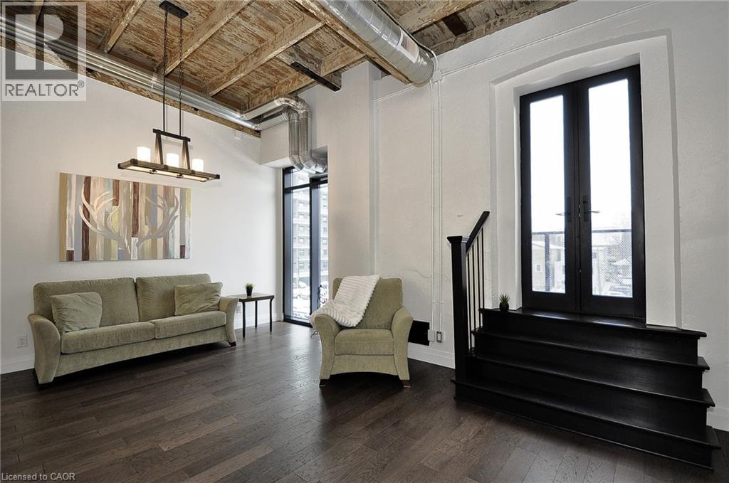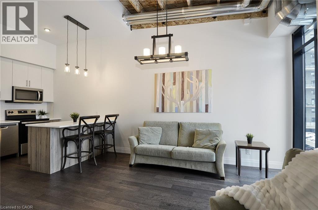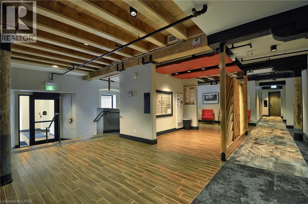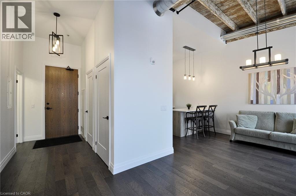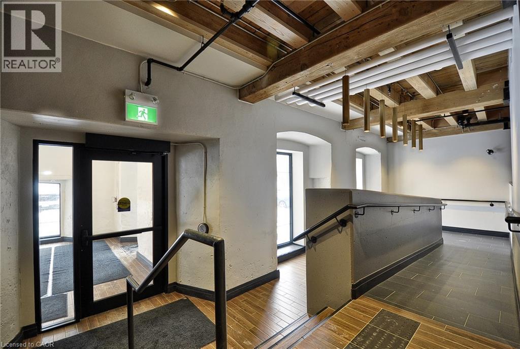 Experience boutique living at Riverbank Lofts, a landmark conversion in the heart of historic downtown Hespeler. This iconic riverside building blends heritage charm with modern sophistication along the banks of the Speed River. This bright one-bedroom condo features soaring ceilings, oversized windows, and exposed wood beams that highlight the building’s character. The open-concept living space flows into a contemporary kitchen with quartz countertops and a breakfast bar, perfect for entertaining. Step out onto your private balcony to unwind. The spacious bedroom includes a large walk-in closet, in-suite laundry, and high ceilings throughout. Includes one parking space and access to premium amenities such as three resident lounges, a fitness centre, bike storage, and a dog wash station. Just steps to cafés, shops, parks, and scenic river trails, this is boutique urban living at its finest. (id:64974)