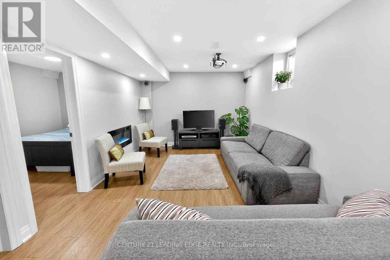 Welcome to this beautifully upgraded 4-bedroom detached home, backing onto a private ravine lot in one of Stouffville's most desirable neighbourhoods. Offering exceptional privacy and serene views, this move-in-ready home blends modern upgrades with functional living. Just steps to schools, library, community centre, and a beautifully maintained park featuring an exceptional playground, splash pad, basketball court, and scenic walking trails. The main level features hardwood flooring, an open-concept living and dining area with pot lights, and a fully renovated kitchen with porcelain tile flooring, quartz countertops, stainless steel LG appliances, a spacious pantry closet, and a walkout to a spacious, landscaped backyard haven-perfect for relaxing or entertaining. An oak staircase leads to four generous bedrooms, including a primary suite with a large closet and an upgraded 3-piece ensuite. The professionally finished basement (2024) includes a high-end in-law suite with a living area, kitchenette, bedroom, den, 3-piece bath, gym space, electric fireplace, egress window, ample storage, and wiring for surround sound and projector-ideal for extended family or additional living space. Extensive upgrades include an owned furnace and A/C (2025), owned hot water tank, new roof, upgraded flooring, bathrooms, lighting, pot lights, new washer/dryer, water softener, electrical receptacles, exhaust fans, and full interior painting. (id:64974)