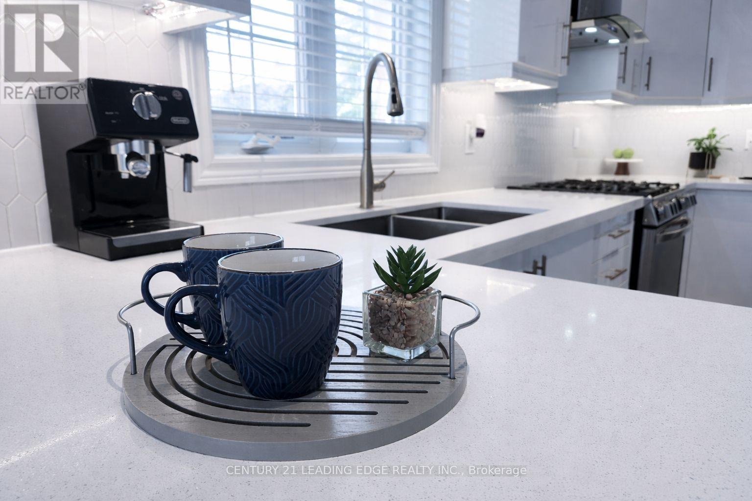 A rare ravine-lot home offering privacy, space, and an unbeatable family-friendly location. Sitting on a premium corner ravine lot, this upgraded 4+1 bedroom detached home is just steps to school, library, community centre, and a beautifully maintained park with a splash pad, playground, basketball court and scenic walking trails,-everything families are looking for in Stouffville. The main level features hardwood flooring, pot lights, and an open-concept living and dining space designed for everyday living and entertaining. The fully renovated kitchen showcases quartz countertops, porcelain tile flooring, stainless steel LG appliances, a spacious pantry, and a walkout to a beautifully landscaped backyard retreat with peaceful ravine views. Upstairs features four bedrooms, including a bright, oversized primary suite with an upgraded 3-piece ensuite, currently configured as three bedrooms, which can easily be converted back to four. The professionally finished basement (2024) offers a high-quality in-law suite complete with a living area, kitchenette, bedroom, den,3-piece bath, gym space, electric fireplace, and egress window-ideal for extended family or flexible living. Recent upgrades include an owned furnace and A/C (2025), an owned hot water tank, a new roof, updated flooring and bathrooms, modern lighting and pot lights, a new washer/dryer, a water softener, and fresh interior paint. This is a rare opportunity to own a move-in-ready ravine property that combines privacy, thoughtful upgrades, and exceptional everyday convenience in one of Stouffville's most sought-after neighbourhoods. (id:64974)
