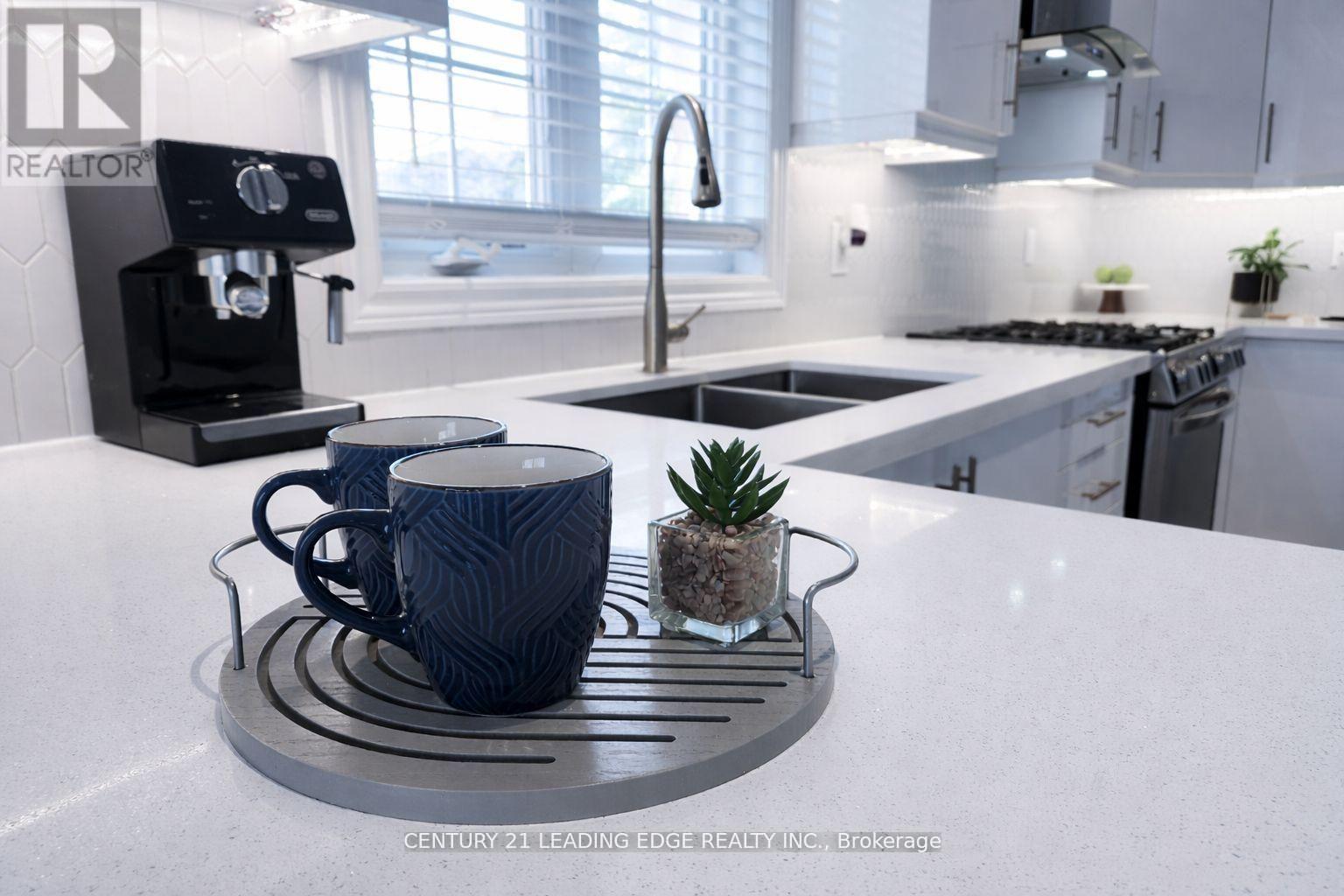This beautiful, well-maintained, ready to move in 4+1 bedroom detached home with thoughtful upgrades sits on a premium corner lot, offering privacy, space, and a setting that's hard to find. Located in a family-friendly neighborhood, just steps to schools, parks, splashpad, trails, library, and community centre. The bright main floor features hardwood floors, pot lights, and a warm, inviting living room, dining room, and a spacious family room-ideal for both cozy nights and effortless entertaining. The fully renovated kitchen is equipped with stainless steel appliances, quartz countertops, a pantry, a spacious eating area, and a walkout to a landscaped backyard with peaceful ravine views- all surrounded by lush conservation trees- your own private retreat. Upstairs offers four bedrooms and two 3-piece bathrooms with plenty of upgrades and storage space. Also, it includes an upstairs laundry room with a new washer and dryer. The professionally finished basement (2024) offers a bonus bedroom, a living area, a kitchenette, a den/office/pantry space, a 3-piece bath, a gym space, an electric fireplace, and an egress window. Wired for home theatre surround sound speakers and a projector, it's perfectly suited for an extended family or entertainment. Major updates include owned furnace & A/C (2025), owned hot water tank, new roof, updated flooring and bathrooms, modern lighting, water softener, and fresh paint. A perfect blend of comfort, charm, and convenience. Don't miss your opportunity to make this special home yours. (id:64974)