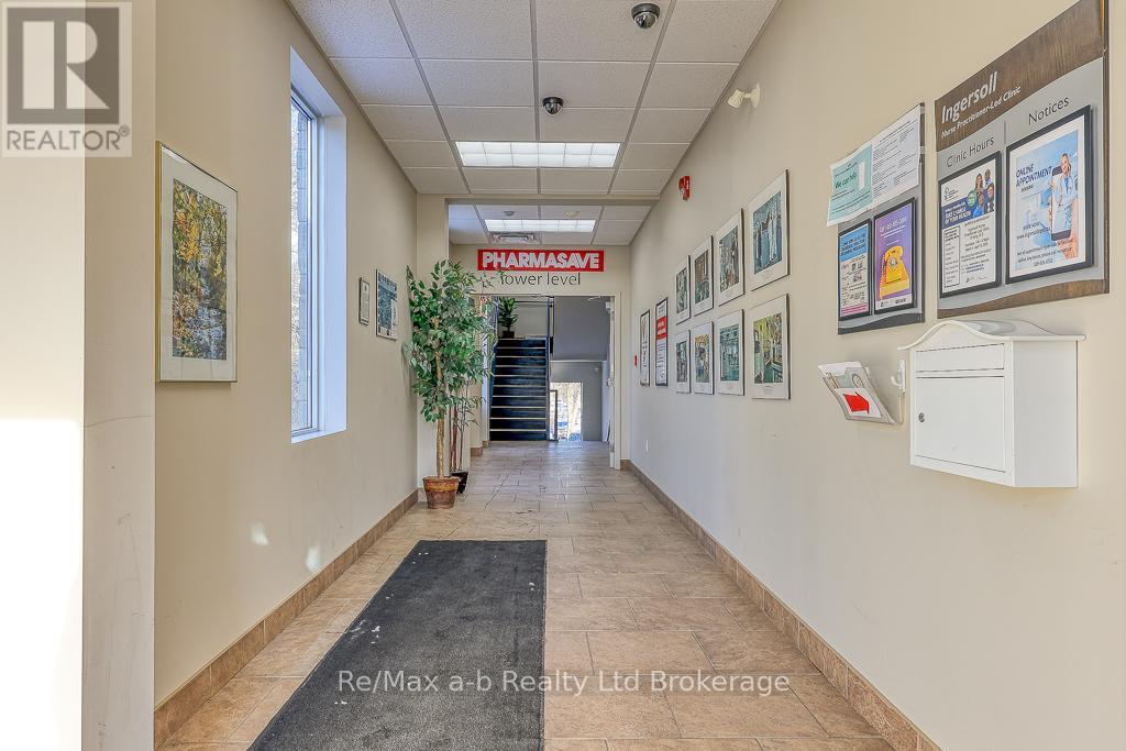 Boost your business's profile and image within this highly visible and professional building located in downtown Ingersoll. This high-profile Health & Wellness Centre has 1476 sq feet of bright open space available for your business. Currently in this space there are three offices, two washrooms and a huge open room with large windows. This space is turnkey for professional offices, retail or service space such as a boutique shop, spa or retail outlet. The building is well laid out and extremely well maintained, it is wheelchair accessible and equipped with automatic door pads both front and rear entrances for easy access. As well as a spacious elevator. Plenty of onsite parking for clients, plus the King Street parking and the building is adjacent to a municipal parking lot. WE HAVE THE SPACE -BRING YOUR DREAM IDEAS! **EXTRAS** TMI $10.00, utilities included in TMI. (id:64974)