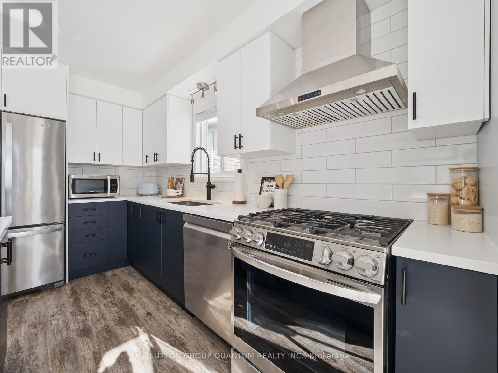 Welcome to 19 Leslie Ave - a beautifully upgraded brick home offering style, comfort, and functionality in a prime, amenity-rich location. This move-in ready 2+1 bedroom, 2 bathroom home has been thoughtfully updated for modern living with over 2,100 sqft of living space.The 2025 kitchen renovation showcases new two-tone cabinetry, quartz countertops, soft-close drawers, tile backsplash, , a dedicated coffee station, and stainless steel appliances (2022) including a gas stove. New vinyl flooring (2025), updated lighting, a new living room window (2022), and fresh paint create a bright, cohesive feel throughout.Both bathrooms were fully renovated in 2025 with stylish, modern finishes. The finished basement features a spacious rec room with gas fireplace, third bedroom, and convenient kitchen - ideal for guests or extended family. A side-door entry through the garage provides direct access to the foyer or basement for added flexibility.Enjoy a resurfaced deck with gas BBQ hookup, interlock patio, and landscaped yard. Major updates include furnace and A/C (2018), shingles (2017), attic insulation (2016), and insulated garage door (2022). Walking distance to some of the area's most incredible trails, including Ardagh Bluffs Trails approx. 15-20 min walk & Sunnidale Park Trails approx. 35-40 min walk.A turnkey home close to schools, shopping, transit, and highways - just move in and enjoy! (id:64974)