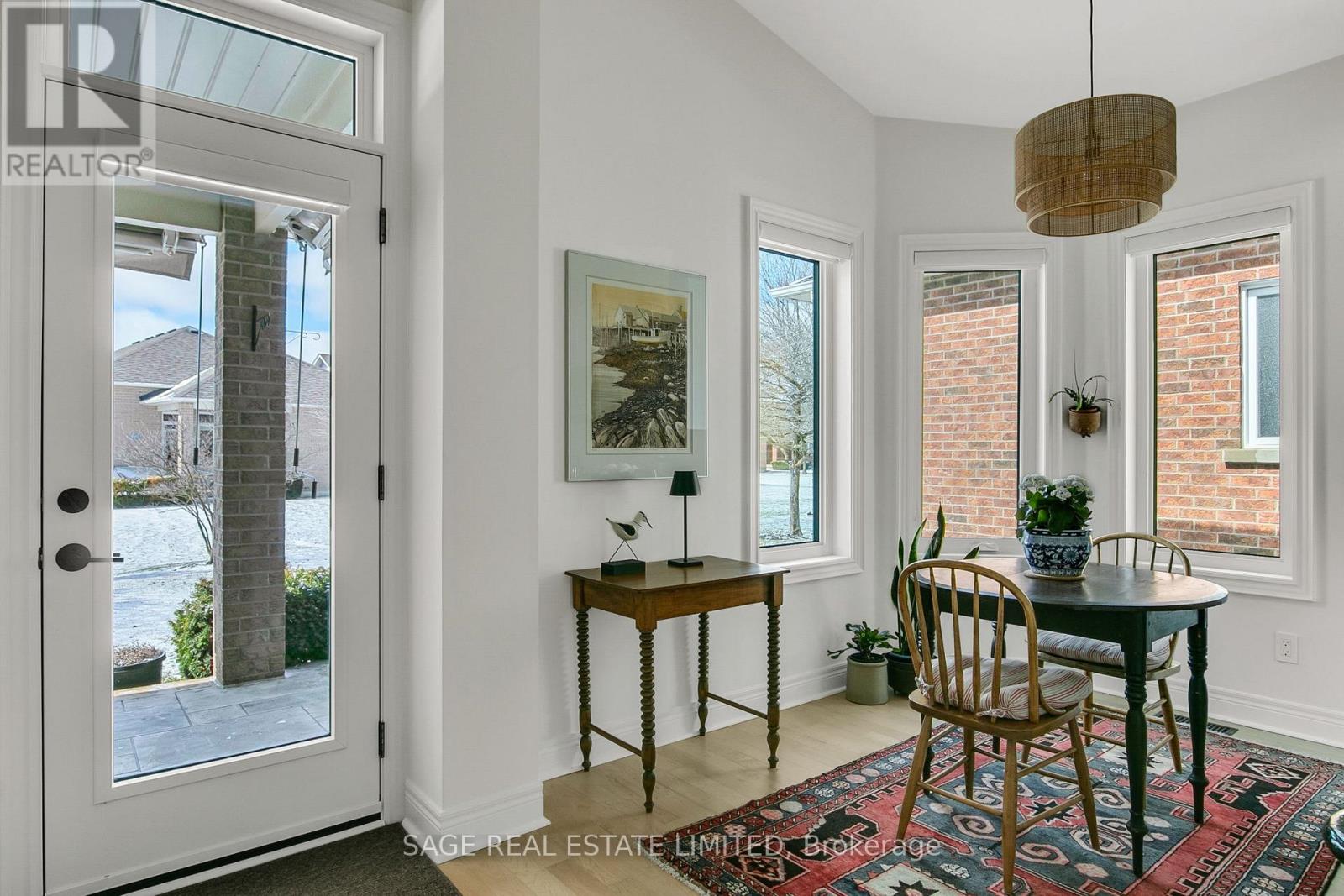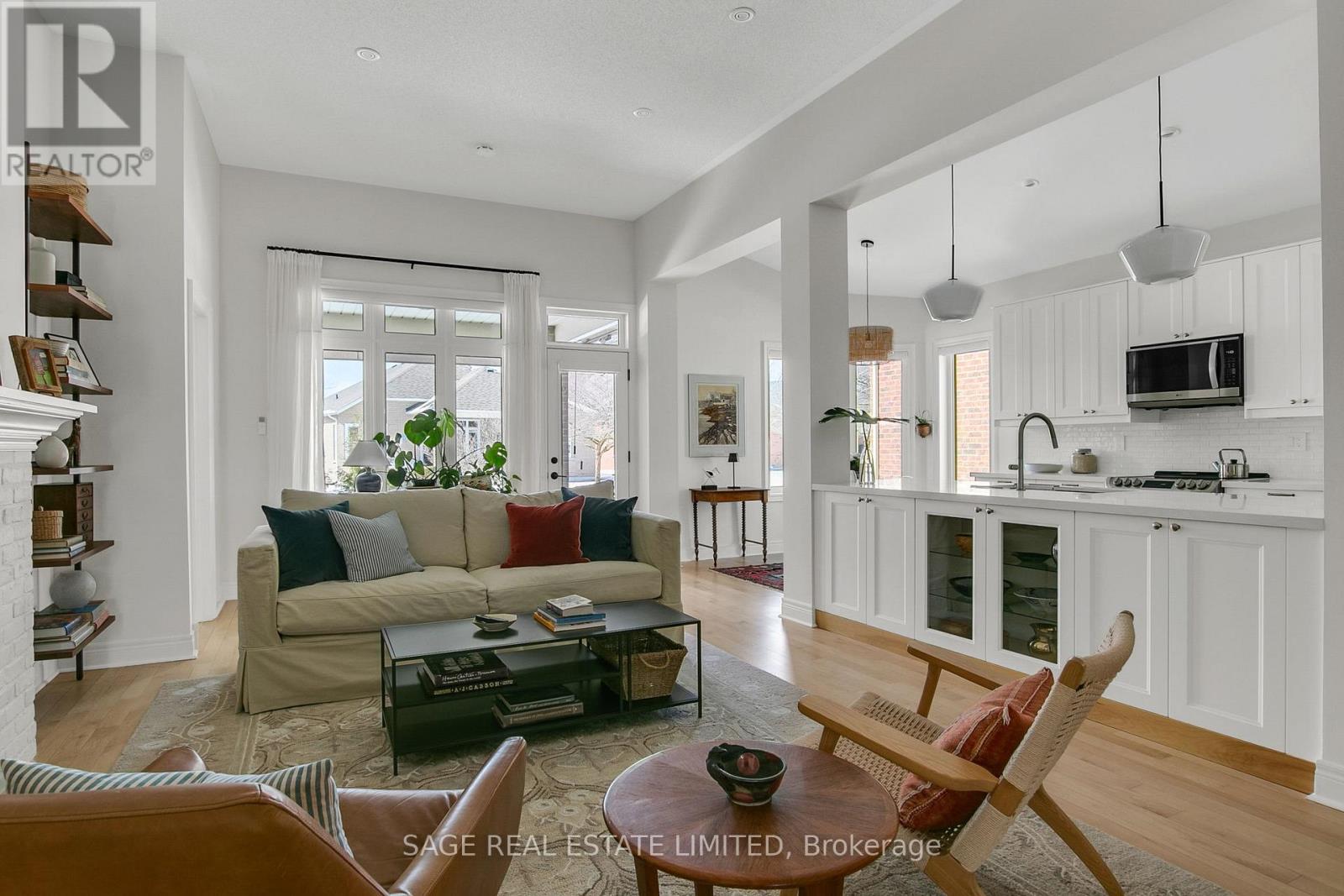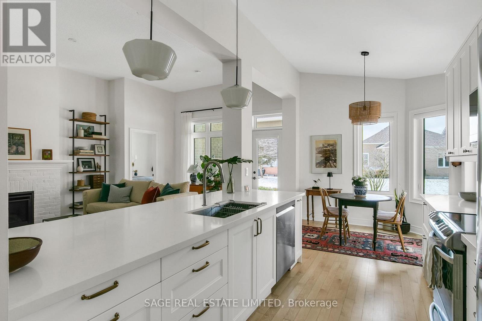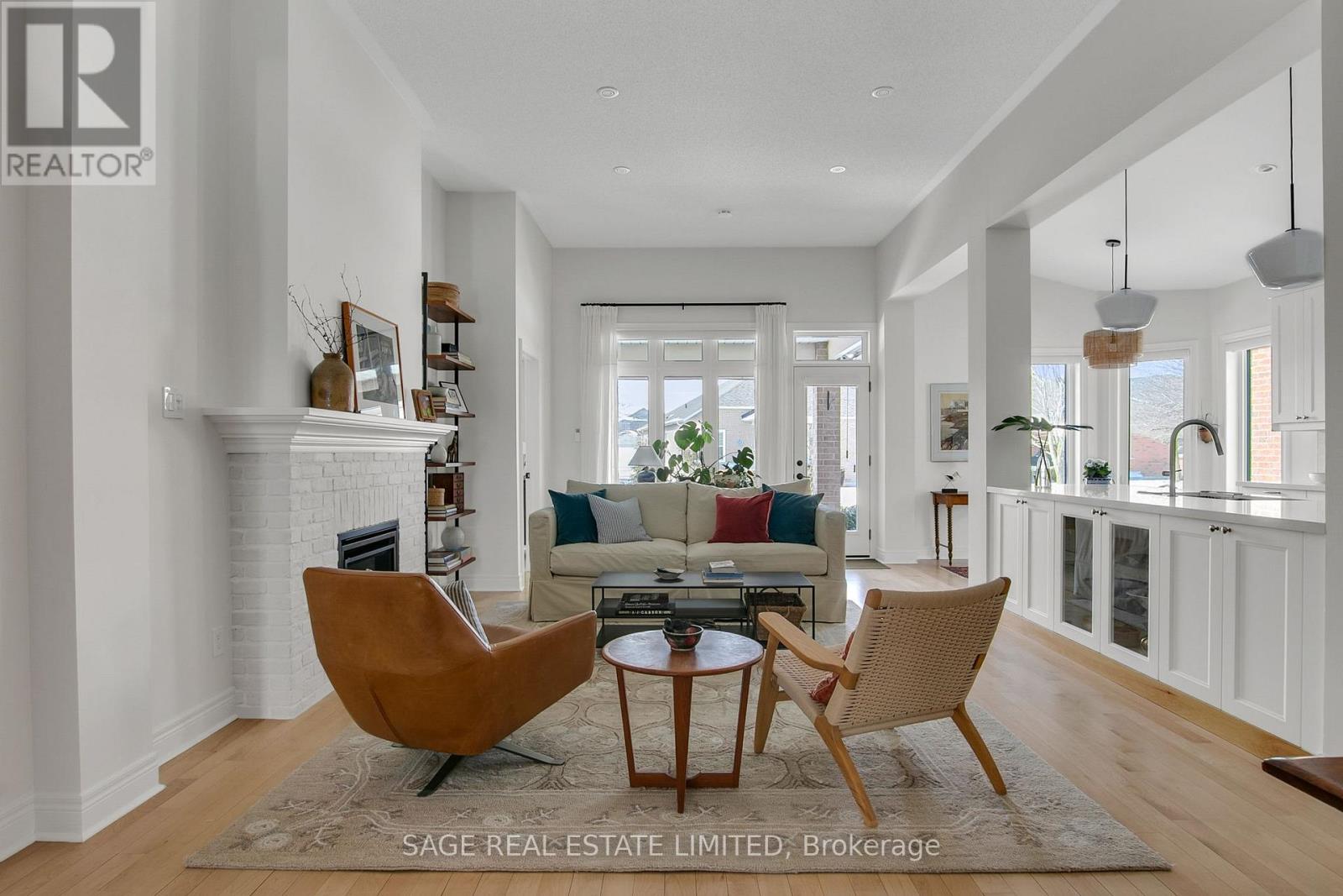 19 Long Stan - A fantastic opportunity to own a beautifully upgraded home in the gated community of the Ballantrae Golf Course. The desirable Innisbrook model offers over 1,700 sq. ft. of thoughtfully designed living space, highlighted by impressive 11-foot coffered ceilings and a more open-concept layout. Tastefully updated with over $100,000 in upgrades, this home showcases a fully renovated kitchen complete with LG appliances, all new cabinetry, and quartz countertops overlooking the living and dining areas. The living room is anchored by a Valour gas fireplace with custom brick surround, creating a warm and inviting focal point. Natural light pours through all-new triple-glazed windows, enhancing the home's airy feel and light hardwood floors, integrating modern sophistication with timeless charm. Further upgrades include custom closets (2024), automatic linen blinds (2024), AC (2024), furnace (2022), roof (2022), and stone-form surfacing of front and rear patio. The home features two generously sized bedrooms, including the primary bedroom retreat at the rear of the home with double closets and spacious ensuite bath. A versatile den offers the flexibility of an easy third bedroom conversion or home office, while currently serving as an ideal TV lounge. Step outside onto the large, covered patio to enjoy the summer months bbq'ing and entertaining at the back of the home. Mature trees create privacy and a lushness, a premium in the community. Beyond the home, the community stands out for its pride of association and outstanding amenities - welcoming neighbours on all sides, an active rec centre with indoor saltwater pool, sauna, hot tub, gym, tennis courts, billiards room, and events venue with a full calendar of clubs and activities. Golf course access available with resident discounts! Club restaurant is open to all residents throughout the golfing season. And not to be missed - the magnificent 2,600-hectare York Region Forest also sits on your doorstep! (id:64974)