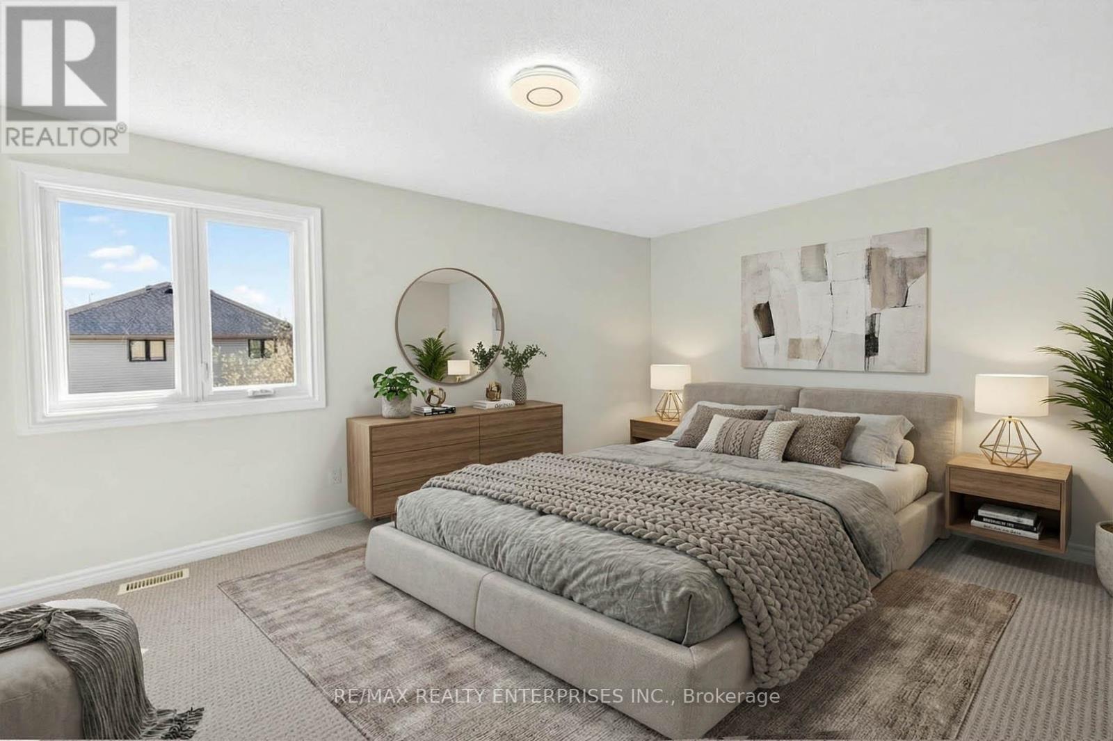Beautifully fully renovated 4-bedroom, 4-bathroom family home in the highly desirable community of Mount Hope, offering nearly 3,000 sq. ft. of finished living space. This exceptional residence features a modern shaker-style kitchen with quartz countertops, new flooring throughout, and a bright open-concept main floor that seamlessly connects the living and dining areas, ideal for modern family living and entertaining, while the fully finished basement with a 3-piece bathroom provides versatile additional space perfect for recreation, guests, or extended family. Showcasing outstanding curb appeal, the exterior combines stone and brick with a professionally landscaped front yard and refined aggregate concrete detailing along the driveway, walkway, front steps, and backyard patio, creating a cohesive, high-end finish, complemented by a private south-facing backyard. Additional highlights include upgraded bathroom vanities in all bathrooms, updated windows (2022, excluding basement windows) with transferable lifetime warranty, updated patio doors, a new washer and dryer (2023), a new dishwasher (2024), and a new furnace and air conditioning system (2024), along with fresh paint throughout, main floor laundry, two garage parking spaces, and a functional family-friendly layout, all ideally located with convenient access to major highways, schools, parks, and everyday amenities in a sought-after neighbourhood. (id:64974)