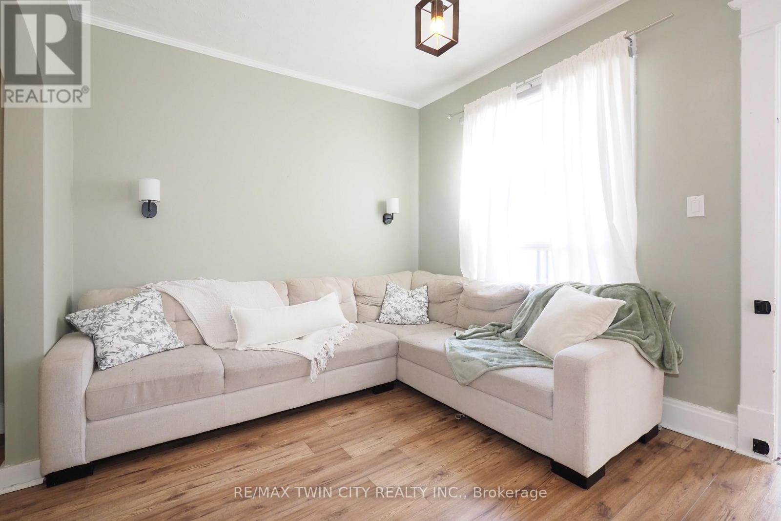 Welcome to 19 Paisley Heights in Cambridge, a charming 2-bedroom, 1-bathroom detached bungalow located on a quiet cul-de-sac. This home features an open-concept kitchen and living area with stainless steel appliances, updated flooring, a primary bedroom with walk-in closet, and a spacious bathroom with glass shower and soaker tub. The unfinished basement offers room to grow, while the large yard with a new gazebo provides great outdoor space. Situated on a 50 ft lot with parking for 3+ vehicles, the home also includes many updates such as kitchen (2019), bathroom (2020), electrical panel (2019), reverse osmosis and water softener (2021), newer appliances, shingles, and smart Wi-Fi light switches. Conveniently located about 30 minutes from Kitchener, Hamilton, Brantford, and Guelph, making it ideal for first-time buyers or downsizers. (id:64974)