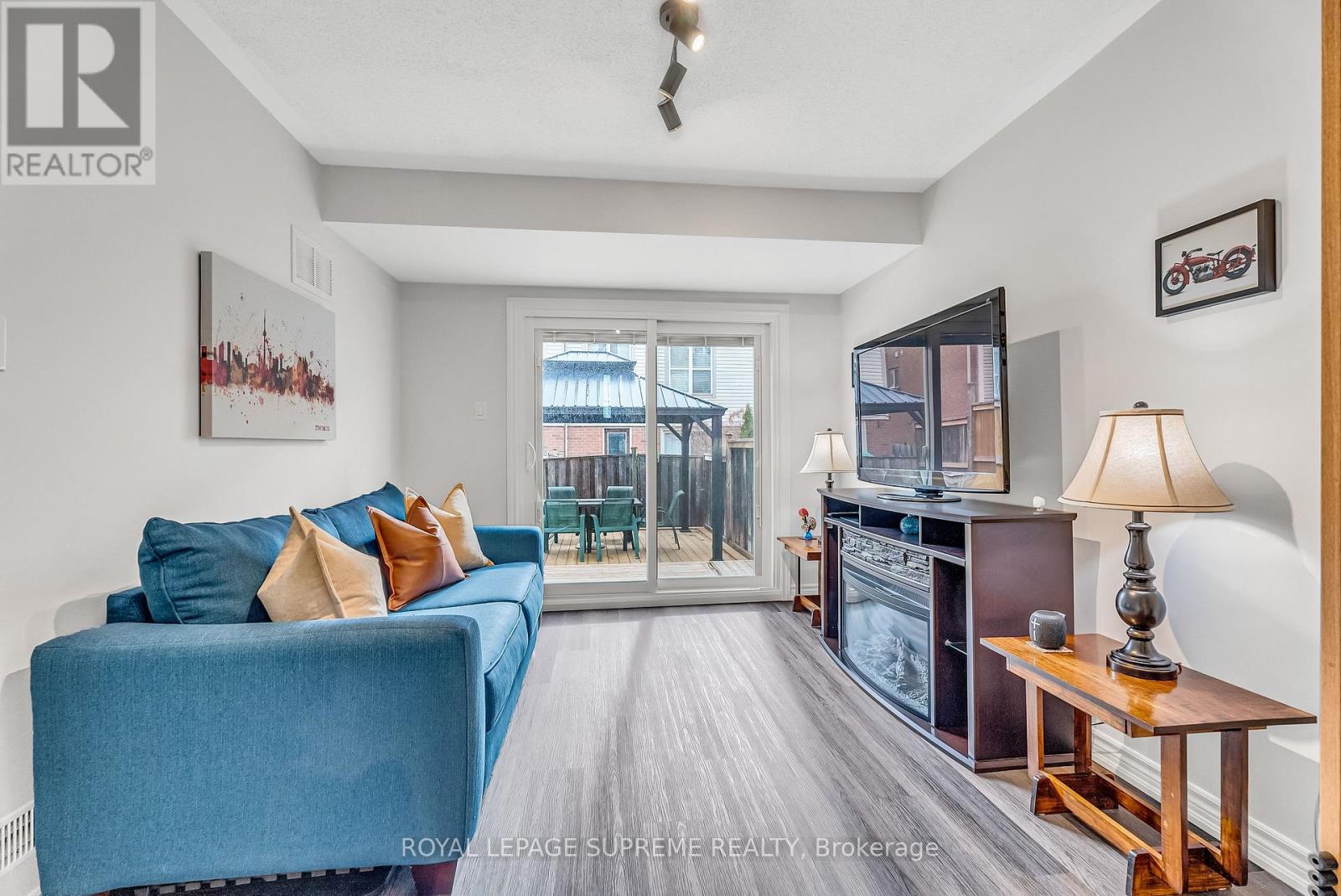 Charming and move-in ready, this beautifully maintained 3-bedroom, 3-bathroom freehold town home in the heart of Georgetown is perfectly suited for your next chapter. Bright and welcoming, the main floor features a spacious combined living and dining area with a breakfast space, along with a well-appointed kitchen complete with stainless steel appliances. Upstairs, the primary bedroom offers a walk-in closet and a private en-suite, while two additional bedrooms provide comfortable living space and overlook the backyard. The finished basement adds valuable living space and features a walkout to a fully fenced, landscaped backyard-perfect for relaxing or entertaining. This home has been thoughtfully upgraded throughout, including EcoChoice triple-pane casement windows, an insulated garage door with opener, water softener, oven/stove, microwave, and range hood, as well as a backyard deck with gazebo. The home has also been freshly painted throughout, including the ceilings.Additional improvements include luxury vinyl plank flooring in the basement, professionally installed electrical outlets, switches, and covers, whole-home LED lighting and fixtures, blinds, shades and curtains, updated fire and carbon monoxide alarms with fire extinguishers, a furnace with humidifier and Ecobee thermostat, and a sliding backyard door with built-in blinds.Low-maintenance living is made easy with low POTL fees and a convenient garage with interior access to the home. Ideally located in a quiet, family-friendly community just minutes from the Georgetown GO Station, schools, shops, and parks. Please refer to the detailed list of upgrades. A true pleasure to show. (id:64974)