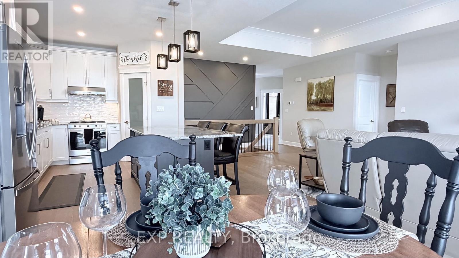 Designed to impress at every turn! Sitting on a generous 130 ft lot, 19 Statham Street in South Grove Meadows is an elegant Dwyer-built all-brick home featuring 4 generously sized bedrooms, including a primary suite with ensuite & 2 more well-appointed 4 piece baths. Inside, you'll find a bright, airy main floor with added windows for natural light, a cozy living room fireplace, and a gourmet kitchen featuring granite countertops, stainless steel appliances, a large island, walk-in corner pantry, and sleek black sink. The primary suite offers a walk-in closet and private ensuite, while the second main-floor bedroom is ideal for guests or a home office. The fully finished lower level includes 2 additional bedrooms (one with walk-in closet), a full bathroom with heated floors, a spacious family room with a gas fireplace, and soundproofing upgrades for ultimate comfort. Outside, enjoy a 7ft fenced backyard, stamped poured concrete patio 29ft by 12ft, extended covered porch 26ft by 12ft, perfect for entertaining or relaxing in your private retreat. Additional storage in a beautiful 9ft x 12ft shed with loft. The homes exterior is designed for low maintenance with aluminum-wrapped posts, stone skirt. Upgrades, timeless finishes, and a warm open-concept design continue into the 20ft x 24ft two car garage with built in shelving for all of your extra storage items. Brick accents, and upgraded black garage doors. Additional features include: Double car garage, central vac, CAT-6 wiring in every room, window coverings (Levolor blinds upstairs, blackout blinds downstairs), Quartz countertops in all upstairs baths, Noise insulation upgrades between levels. On demand tankless water heater. This move-in ready home is just minutes from Caradoc Sands Golf Club, Walmart, Canadian Tire and many more amenities. Schools, parks, shopping, dining, golf and recreational facilities making it an exceptional choice for modern comfortable living in Strathroy. (id:64974)