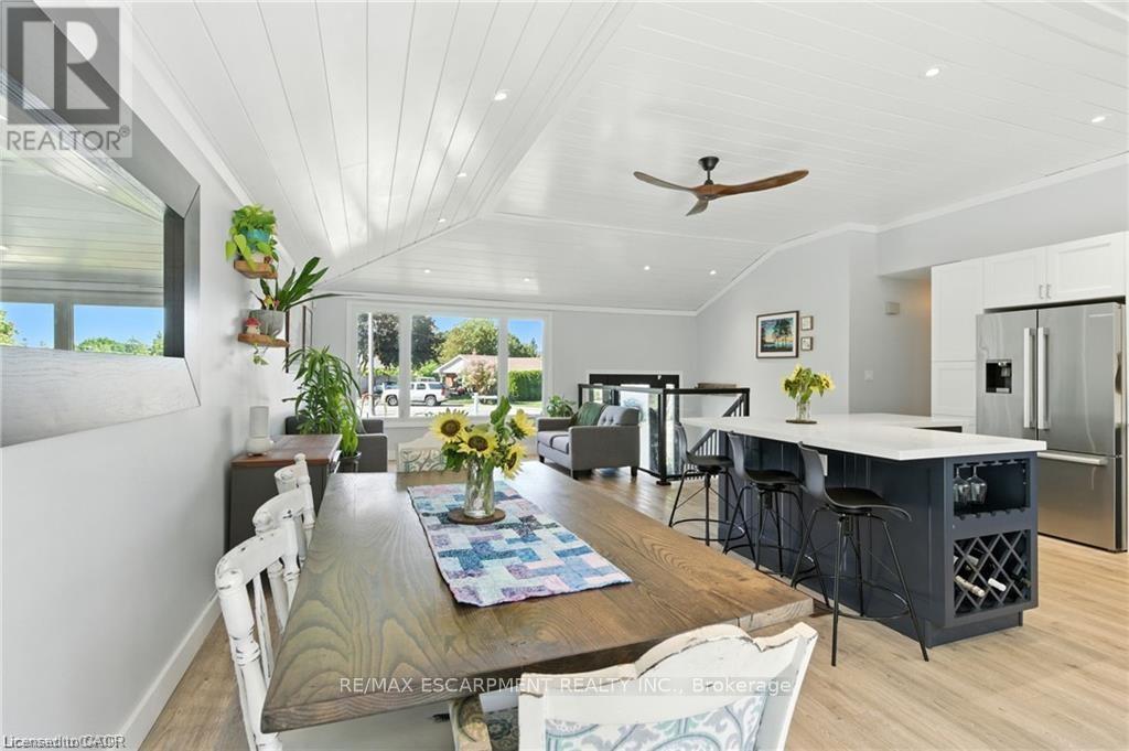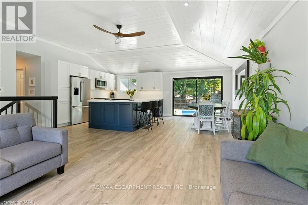 Welcome to 19 Wallace Place, this 3+1 bedroom home sits on a quiet court and has been extensively renovated to combine style, comfort, and functionality. The interior features bright, open-concept living with vaulted ceilings, updated vinyl flooring, and a custom kitchen with 2022 appliances. Large patio doors lead to a fully fenced and private backyard with a saltwater inground pool. The lower level includes a spacious recreation room, fourth bedroom, bathroom, and mudroom/laundry area with a separate entrance and a garage door featuring a built-in pedestrian door, offering potential for an in-law suite. Additional structures on the property include a bunkie and a shed, which could be converted for additional use. The property features strong curb appeal, ample parking, and a convenient location close to parks, schools, shopping, and the Grand River. (id:64974)