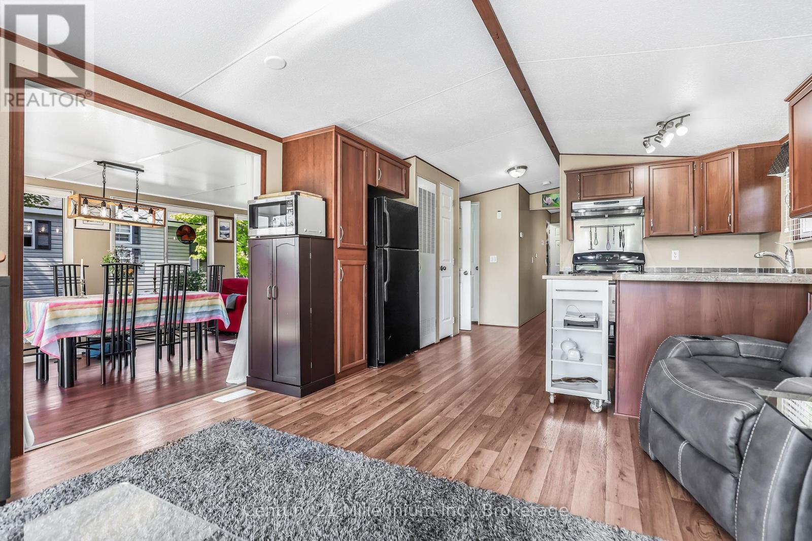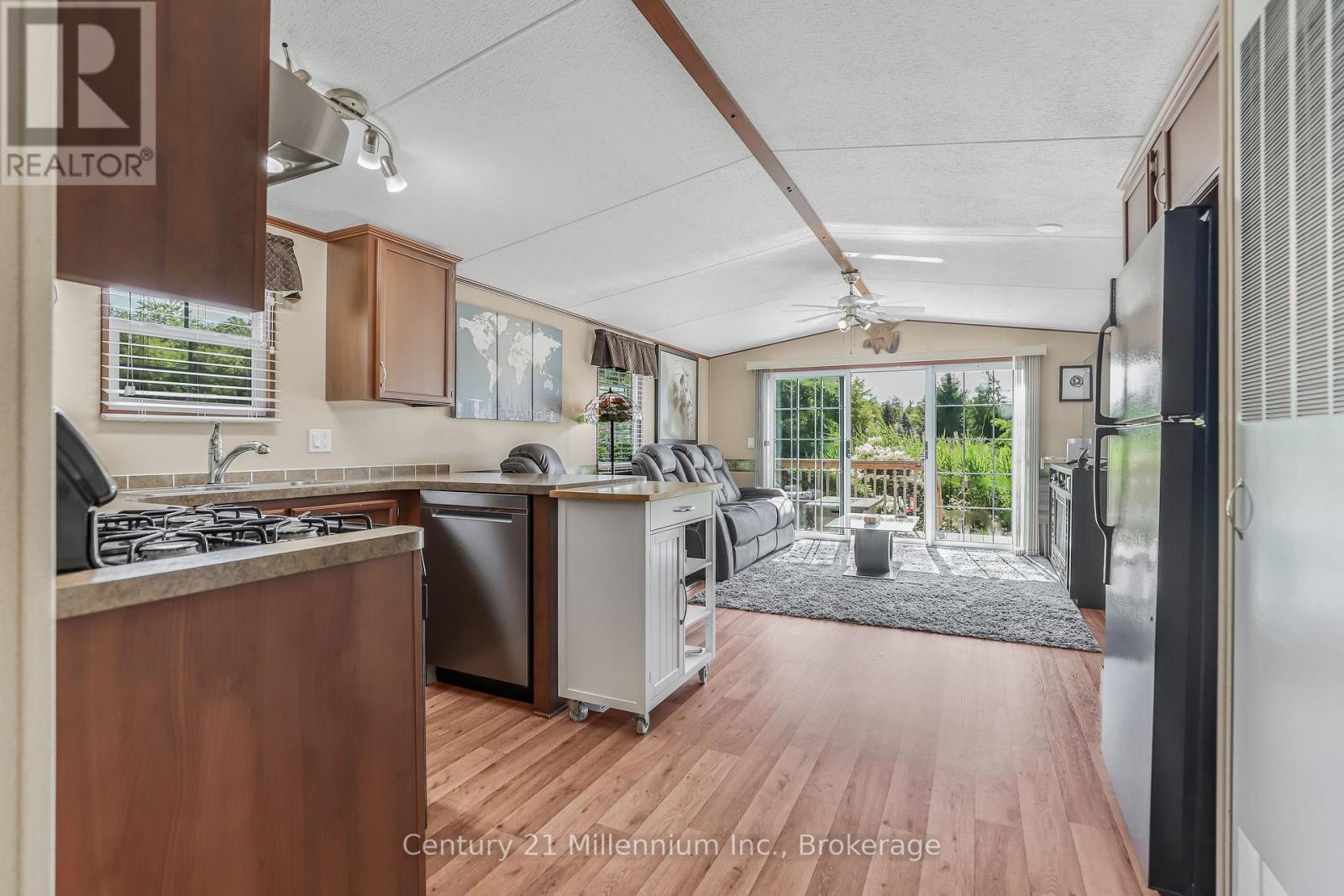 Welcome to your perfect seasonal getaway in the highly sought-after Countrylife Resort! This partially-furnished, charming 2-bedroom, 1-bathroom retreat offers everything you need for relaxing escapes or family fun by the beach. Upon arrival you are greeted by a large front deck with a cozy sitting area. Step inside and enjoy the spacious 19' x 9' sunroom, ideal for morning coffee or evening gatherings. Step outside to a spacious deck, offering picturesque water views. Relax and enjoy the view of the pond or take a brief walk to the beach on Georgian Bay. Enjoy modern comforts with central A/C, natural gas heat, and municipal water and sewer. The oversized yard provides plenty of space for entertaining around the fire pit, and endless manicured gardens. The 2 dedicated parking spaces add convenience for you and your guests. Countrylife Resort is known for its incredible amenities, including: 5 pools for endless swimming, Pickleball & tennis courts for active living, Kids play areas, splash pad & mini golf to keep the little ones entertained, Clubhouse & social activities for the whole family and a secure, gated community for peace of mind. All this, just minutes from Wasaga Beach's shops, restaurants, library, and the new twin arenas. Whether you're looking for family fun or quiet relaxation, this seasonal retreat offers the best of both worlds in a resort-style setting. Don't miss this opportunity to own your own piece of Wasaga Beach paradise! Due to the lot size, this is designated a premium large lot and as such the anticipated seasonal site fees for 2026 will be approximately $9,250 plus HST. Don't miss this opportunity to own a carefree getaway. (id:64974)