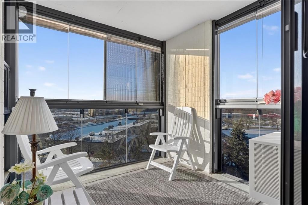 Super bright, 1380 sq ft CORNER unit in sought after complex of Riverside Park area in Guelph. HEAT, HYDRO, WATER included in condo fees! Excellent layout with floor to ceiling windows, sunroom/balcony with great sunset views. Large open concept design featuring formal Living, Dining rooms and spacious eat-in Kitchen offering ample cabinets and counter space. 3 good sized Bedrooms, one is used as a Den/Office with built-in wall unit, 3pc main bath and the Primary with 2pc ensuite. Tons of storage, in-suite laundry and one assigned parking space in covered garage. Very clean and airy home. Well maintained building with many amenities including: tennis courts, outdoor pool, sauna, games room, gym, guest suite, community rooms, library, workshop and more. Located in walking distance to Riverside Park, shopping, restaurants, trails, public transit and easy access to major routes. (id:64974)