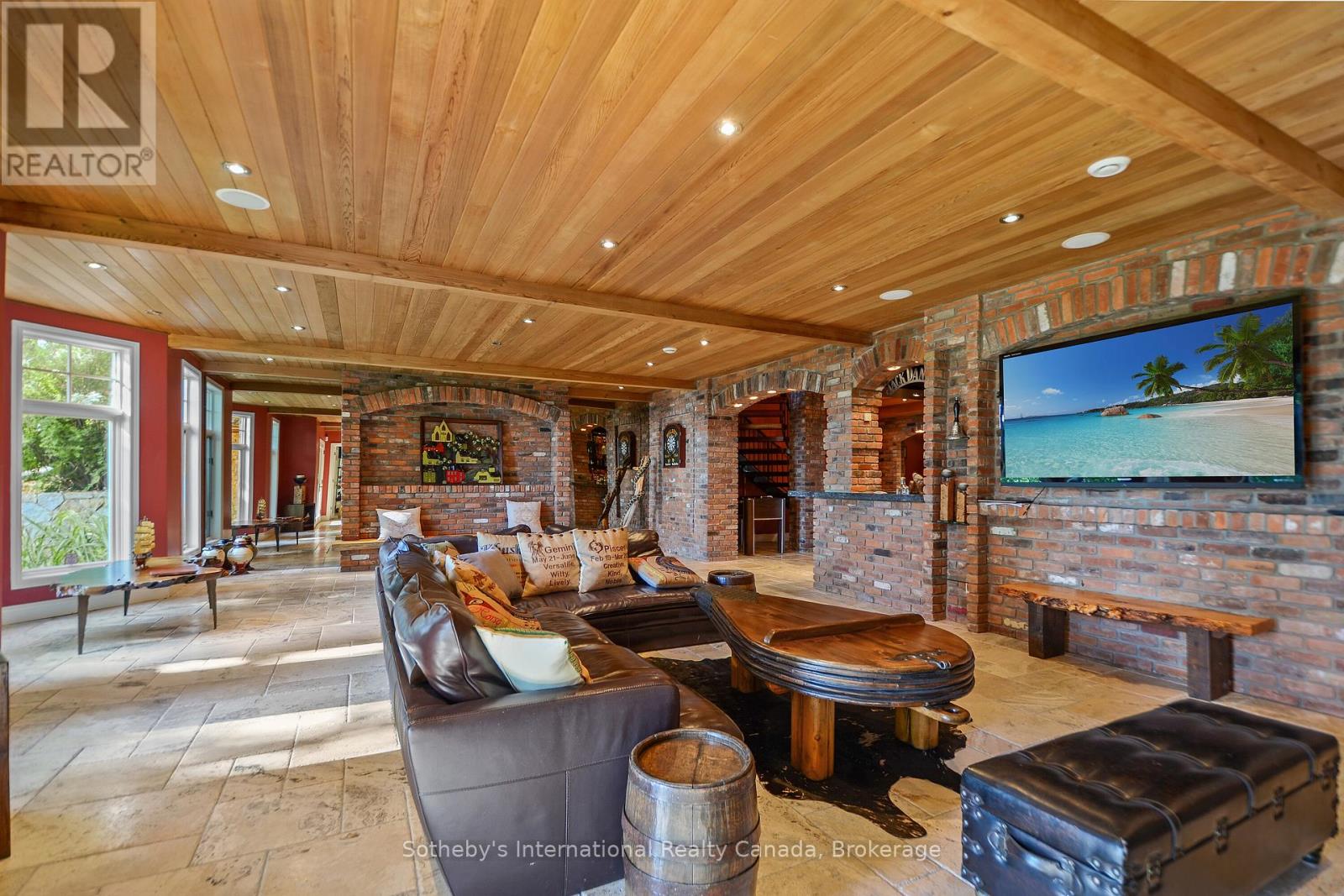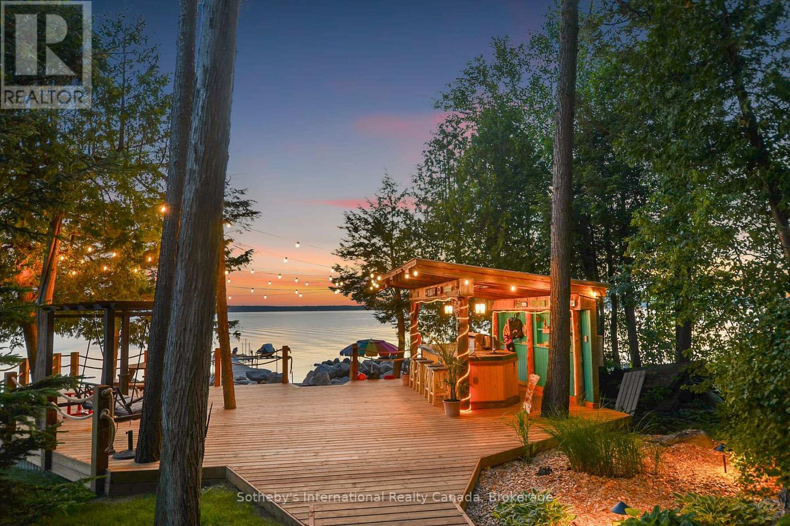 Welcome to 190 Melissa Lane, a charming custom built French Inspired waterfront retreat nestled in the prestigious community of Cedar Ridge, Tiny, Ontario. This high end home is approx between 5000 -6000sqft - 6 Bdrms + 5 Bthrms (2 Bdrms + 1 Bthrm + Kitchenette in the Coach House above the heated 2 car garage). The home is situated on 153ft of west facing beach on a 2 acre lot, surrounded by majestic trees with recently renovated landscaping and outdoor lighting for added privacy and ambiance. You will fall in love with views from every room of the deep turquoise water of Georgian Bay. This home offers plenty of living space for added quests or extended family. The fully finished basement includes travertine floors, antique brick themed walls, custom bar, wine cellar, gym, sauna, bathroom/change room, large wood burning fireplace, family room and full floor to Ceiling walkouts to the lake. Radiant floor heat through out keeps this home warm and cozy during the winter months. Additional heat pumps/ac's located in the coach house and basement gym and upstairs bedrooms for added guest comfort. Embrace the lakeside Tiki Hut with 3 different grilling BBQ's, 100amp power for future hot tub and added shore power, bar sink, bar fridge, fire pit and multiple sitting areas to soak in the incredible Georgian Bay sunsets. This property offers the perfect blend of rural tranquility and modern conveniences. Explore nearby hiking trails or discover quaint shops and restaurants in Lafontaine, Penetang or Midland. Boating enthusiasts have easy access to some of the best boating/anchorages in Southern Ontario. This picturesque property, offers an unparalleled opportunity to embrace the beauty of waterfront living on Southern Georgian Bay. (id:64974)