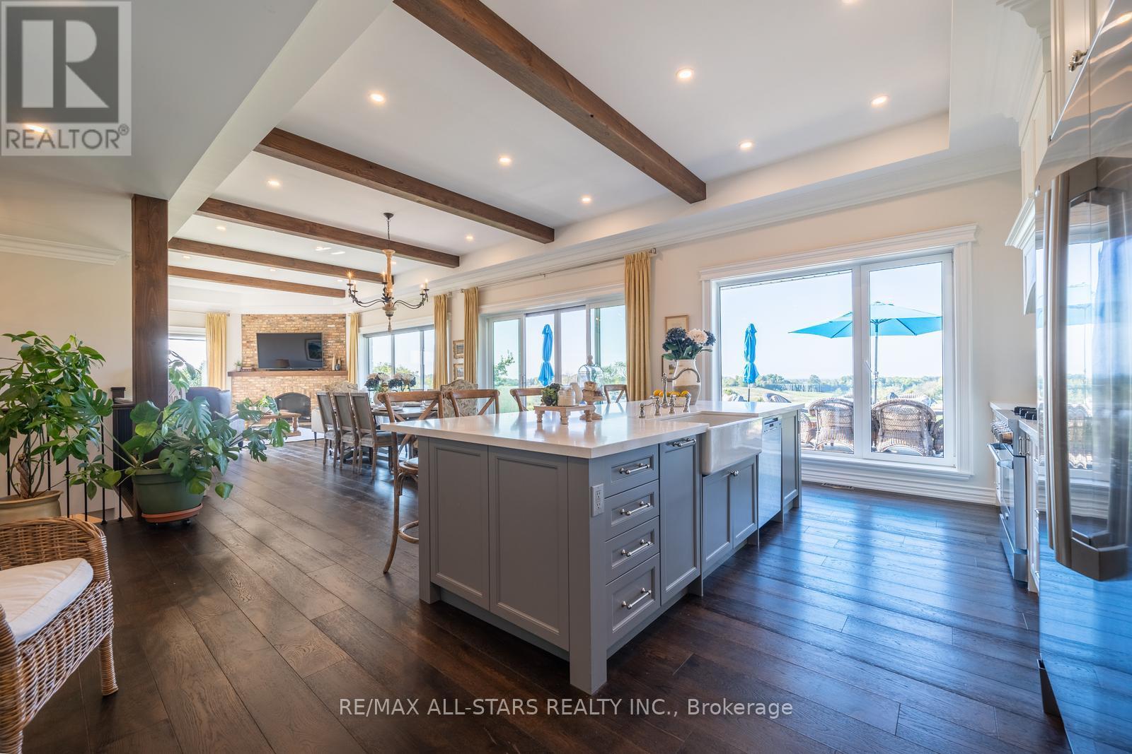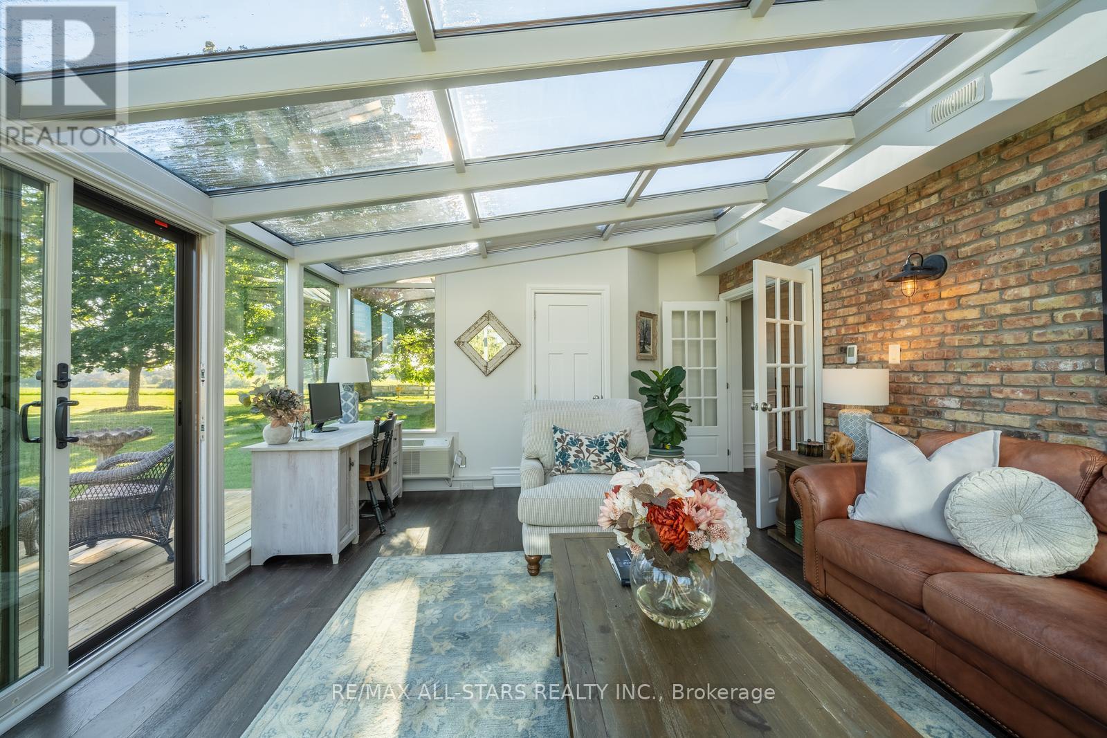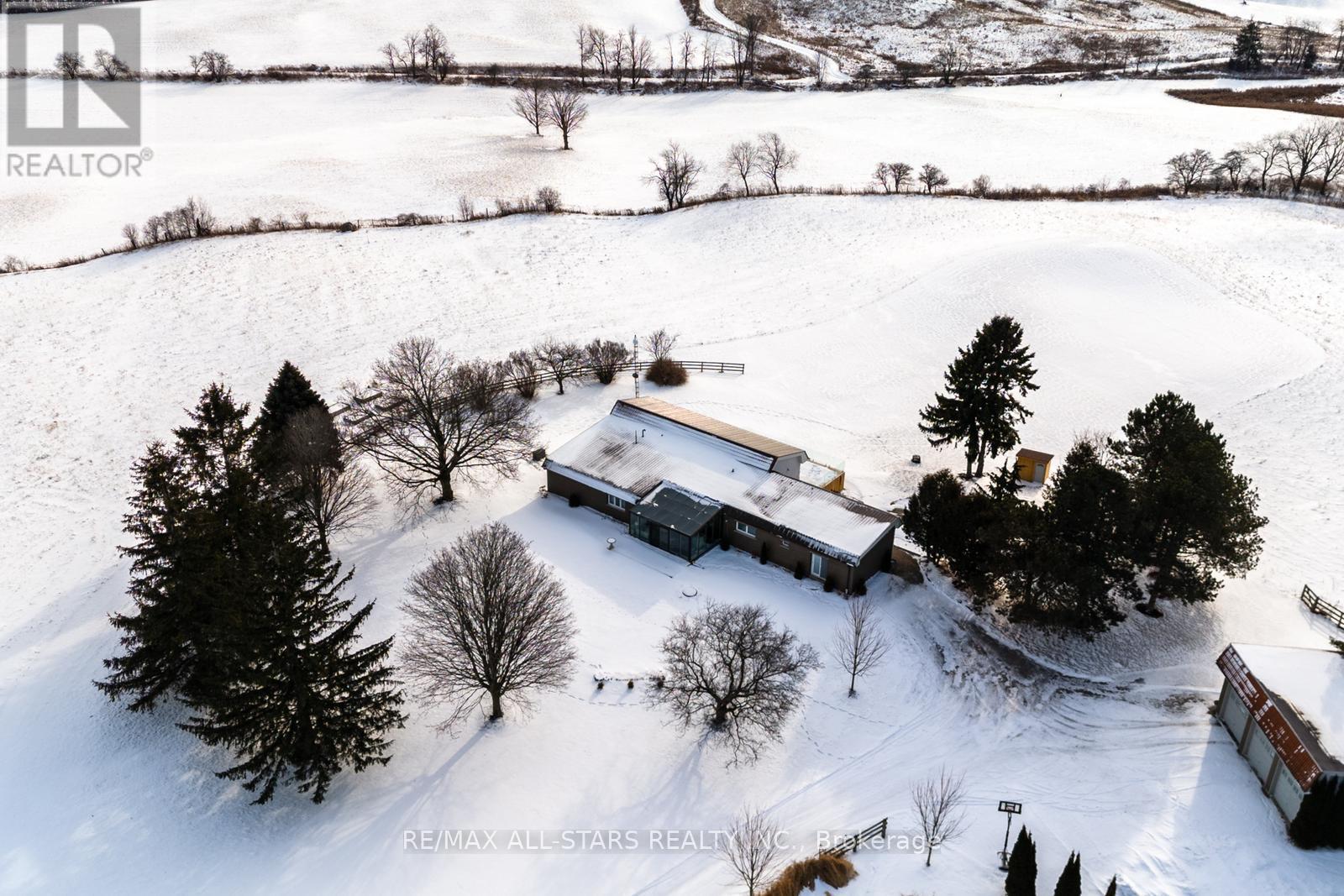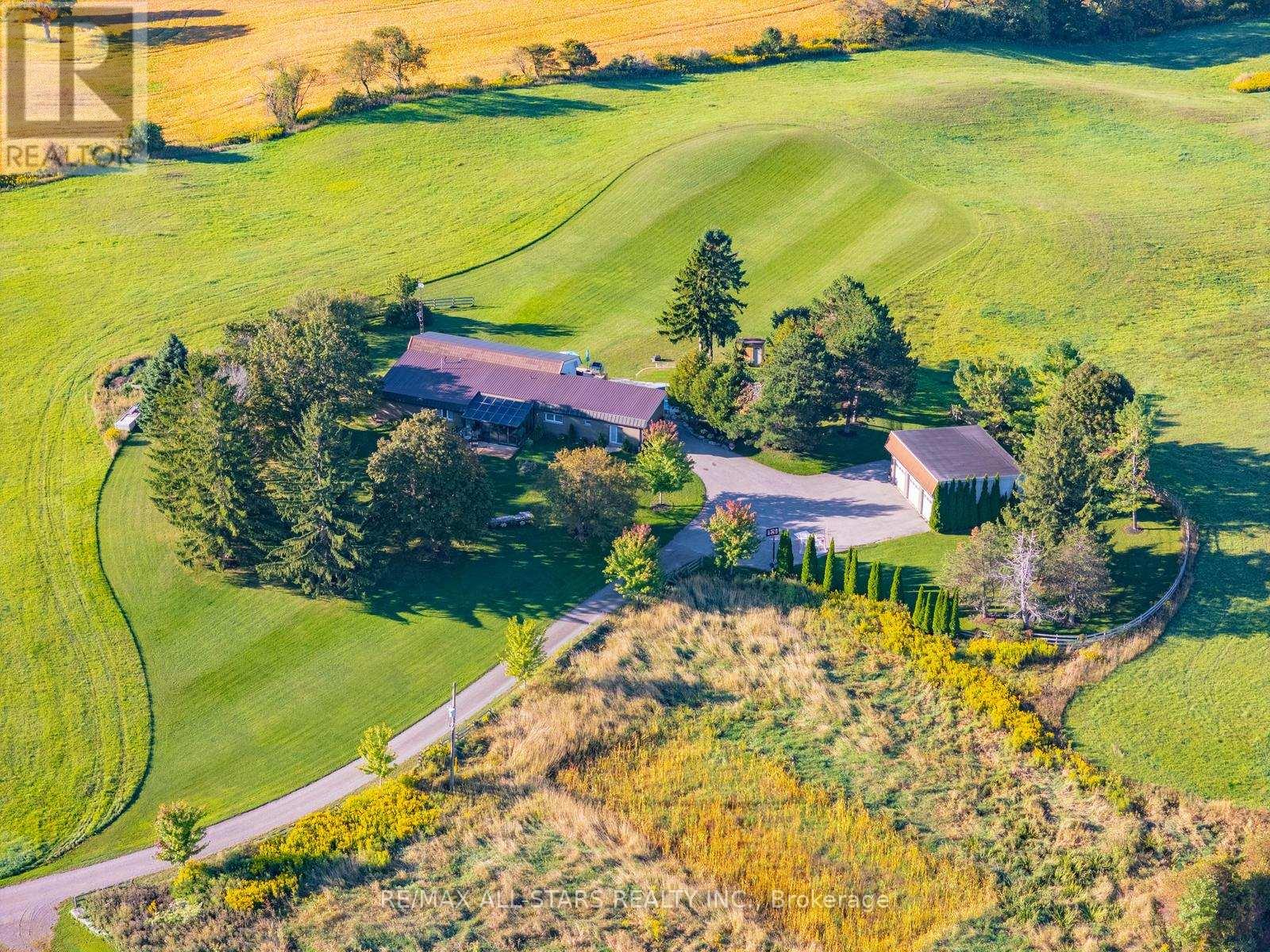 A Truly Exceptional 50-Acre Luxury Estate. Set atop rolling hills with sweeping countryside views, this remarkable estate offers a rare blend of privacy and tranquility-ideally located at the borders of Stouffville, Uxbridge, and Pickering. A long, winding driveway creates an impressive sense of arrival, guiding you through picturesque landscapes to the home. Inside, the light-filled main living area features 12-foot ceilings, exposed beams, and an antique-style brick fireplace. Expansive windows frame breathtaking west-facing views, bringing the outdoors in. The chef-inspired kitchen offers high-end appliances, European-style finishes, and a large island ideal for everyday living and entertaining. An expansive deck with glass railings extends the living space outdoors, showcasing panoramic views of rolling hills and, in the distance, the Toronto skyline. The primary suite is a private retreat with a walk-in closet, built-in wardrobe, 5-piece ensuite, and walkout to the east lawn. Three additional bedrooms and a beautifully updated 5-piece bath provide ample space for family and guests.The walkout lower level includes a spacious recreation area, two home offices, a full bath, and a large bedroom, all with stunning west-facing views. Outdoors, enjoy approx. 6 acres of maple bush, a seasonal pond, and a charming barn with original paddocks and vintage nameplates. An oversized garage accommodates three large trucks with hydro and roughed-in heated floors. Additional features include a heated in ground pool, hot tub, landscaped gardens, geothermal heating, in-floor heating, and extensive updates throughout. A truly special property that must be experienced to be appreciated. You won't want to miss this one! (id:64974)