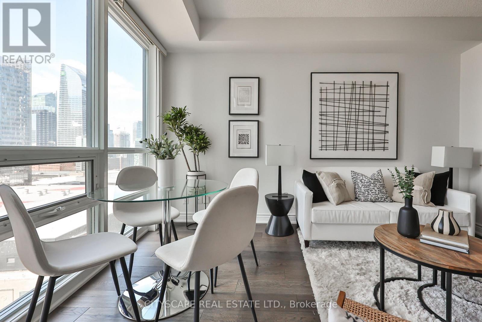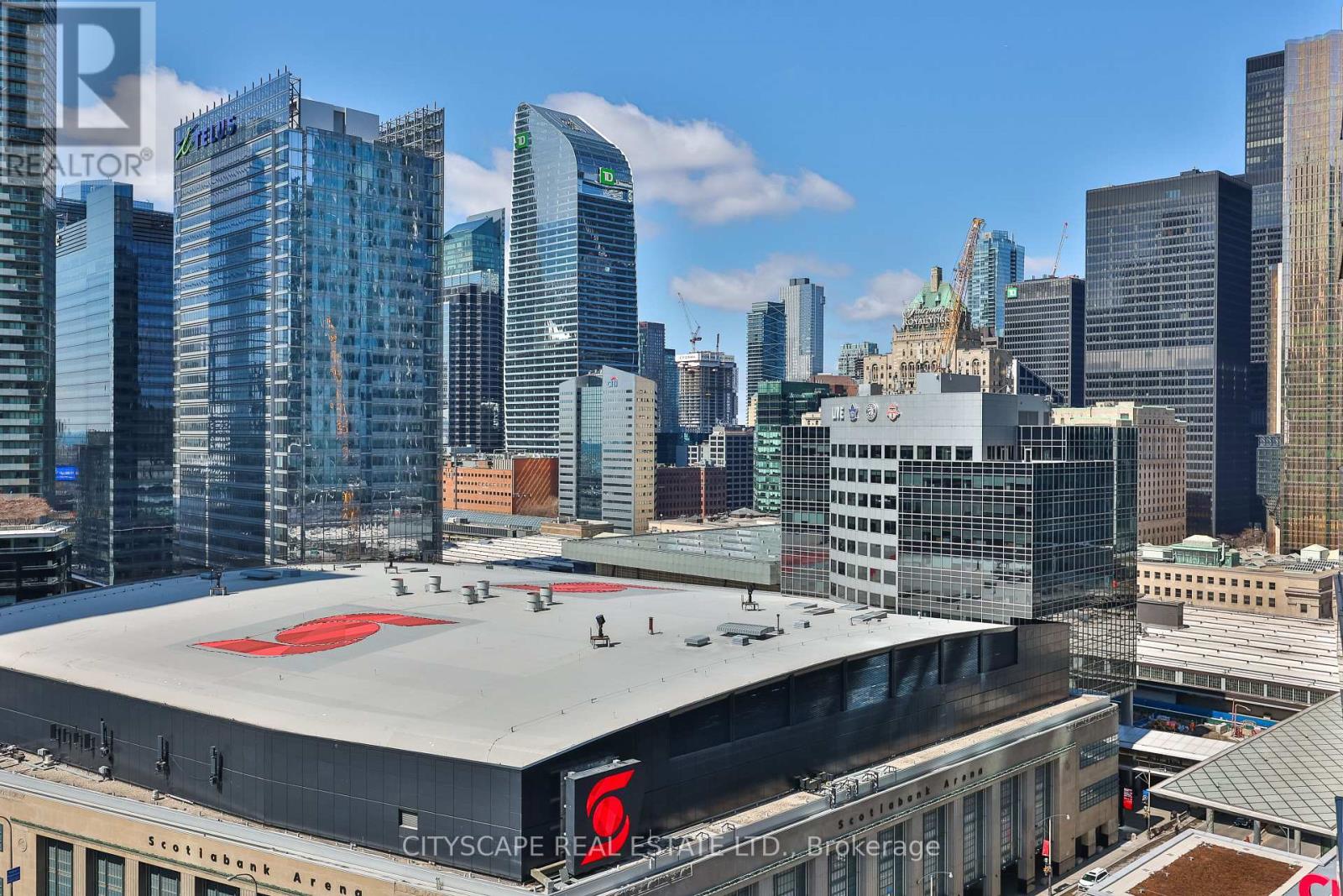 Welcome To The Success Tower At The Prestigious Pinnacle Centre. Perched Above Toronto's Waterfront, This Stunning 2-Bedroom Suite Delivers Sweeping West-Facing City Views With Breathtaking Sunsets That Can Be Seen From Every Room - A Dramatic Backdrop You'll Never Tire Of. The Warm Kitchen Impresses With Sleek Stainless Steel Appliances, Granite Countertops, An Undermount Sink, Under-Cabinet Lighting, And A Breakfast Bar - Ideal For Both Everyday Living And Entertaining. The Open-Concept Living Space Boasts Natural Light Enhanced By 9-Foot Floor-To-Ceiling Windows, Premium Hardwood Flooring Throughout And A Balcony Offering Partial Lake Views. Retreat To The Oasis Of The Primary Bedroom, Complete With A 3-Piece Ensuite And A Spacious Walk-In Closet. Enjoy The Comfort And Convenience Of A Well-Managed Building With Top-Tier Amenities (Featuring An Indoor Pool, 2 Hot Tubs, Sauna, Steam Room, 2 Gyms, Tennis Court, Squash Court, Party Room And More) All In An Unbeatable Central Location With Easy Access To Major Highways And Only Steps To Toronto's Harbourfront, Union Station, The Underground P.A.T.H., Financial District, Scotiabank Arena, C.N. Tower, Rogers Centre, Ripley's Aquarium, And More. Enjoy The Multi-Use Martin Goodman Walking, Running And Cycling Trail Across The Street With Parks, Restaurants, Cafes, Lounges And More. This Home Is Perfect For Professionals, Couples Or Small Families Seeking The Best Toronto Has To Offer At Their Doorstep. (id:64974)