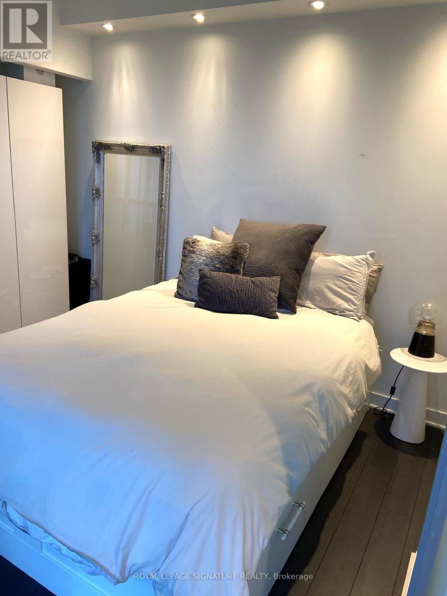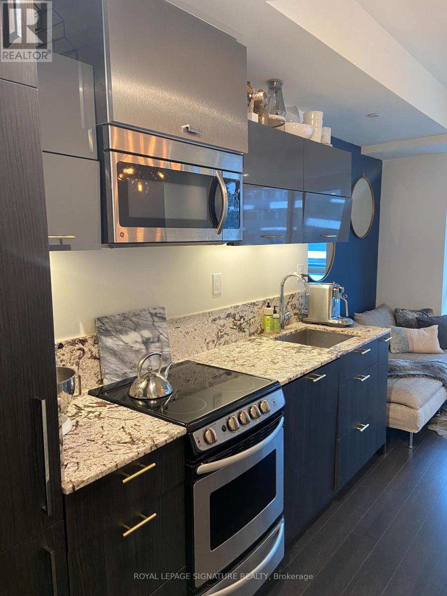 Luxurious, Modern Condo in Prime Downtown! Bright & Cozy, this Suite impresses from the moment you enter. This Gem boasts a thoughtfully designed Kitchen with Integrated Appliances & A Breakfast Nook. Experience $75k worth of sophisticated upgrades including Bespoke Pot lights & Custom Light Fixtures creating a warm Ambiance. You will Love the Spacious Renovated European Bathroom & Bedroom. The Bedroom even has a Study Area--A Real Bonus. A Rare Extra Spacious 160 sq. ft. west-facing terrace overlooking the City is perfect for catching the Sunset, Entertaining & Hosting your Summer Soirees. The unit offers ample storage, especially with the included locker. The 24-hour concierge, and world-class amenities, Nine-foot ceilings and floor-to-ceiling windows make this a stunning condo in a unique & well-managed building, "The Bond Condos." Tucked away from the hustle & bustle, this location is near the centre of one of the most desired downtown areas. Enjoy resort-style amenities including a rare outdoor pool, hot tub, rooftop terrace with dining/lounge areas, BBQ court, exercise/gym and yoga studio, steam rooms in the change rooms, golf simulator, & pool table. Boasting a 100 Walk & Transit Score, this residence offers unparalleled access to the City's finest Dining, Shopping & Entertainment Options. Easy access to the QEW/DVP. Great For First Time Home Buyers or Investors (Great Cap Rate, 6%). Don't Miss This One-of-A-Kind Special Condo! (id:64974)